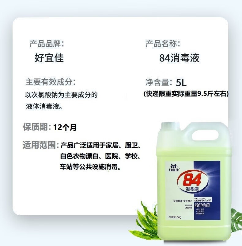 好宜佳84消毒液大桶装家用消毒水衣物漂白洁厕含氯除菌 10斤大桶(净重9.5斤左右)