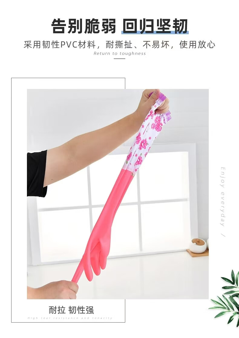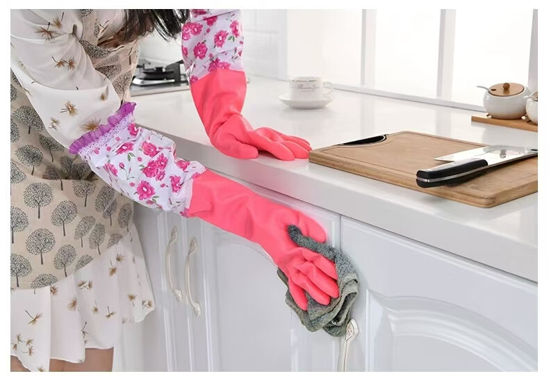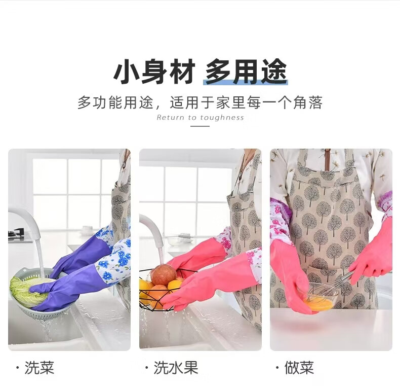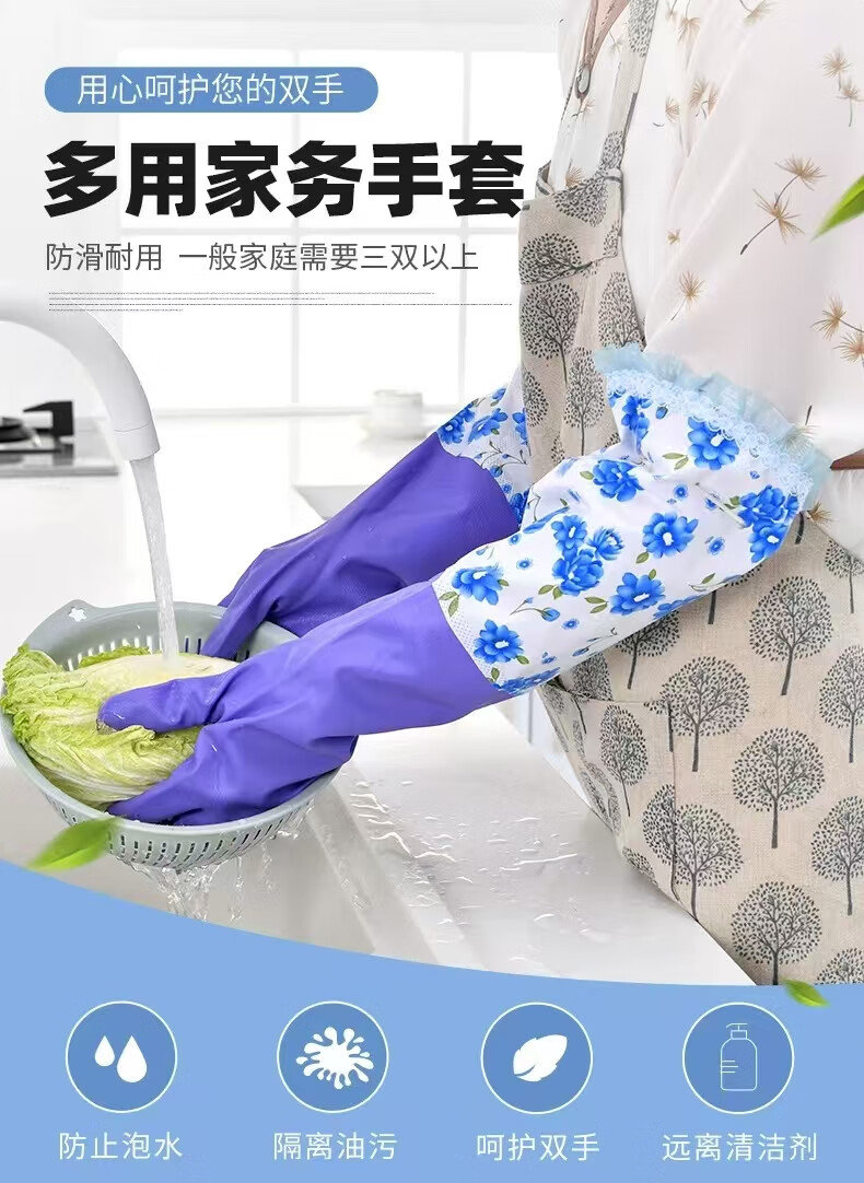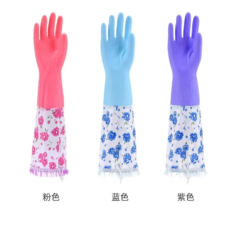 洋臣家庭清洁家务手套厚洗碗手套防水加绒橡胶洗衣服家务劳保手套 2双【均码 加绒束口款颜色随机】