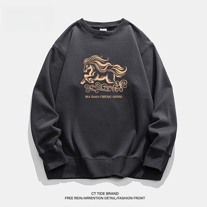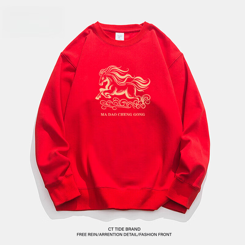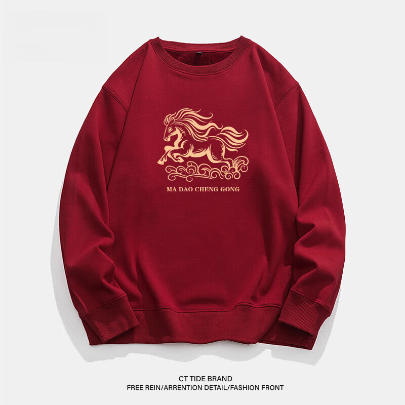 hteec香港潮牌酒红色卫衣男2026马年秋冬款宽松加绒加厚男士本命年衣服 红色 加绒 L 【130-150斤】