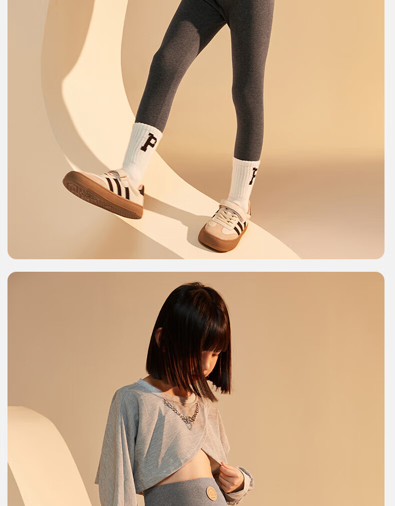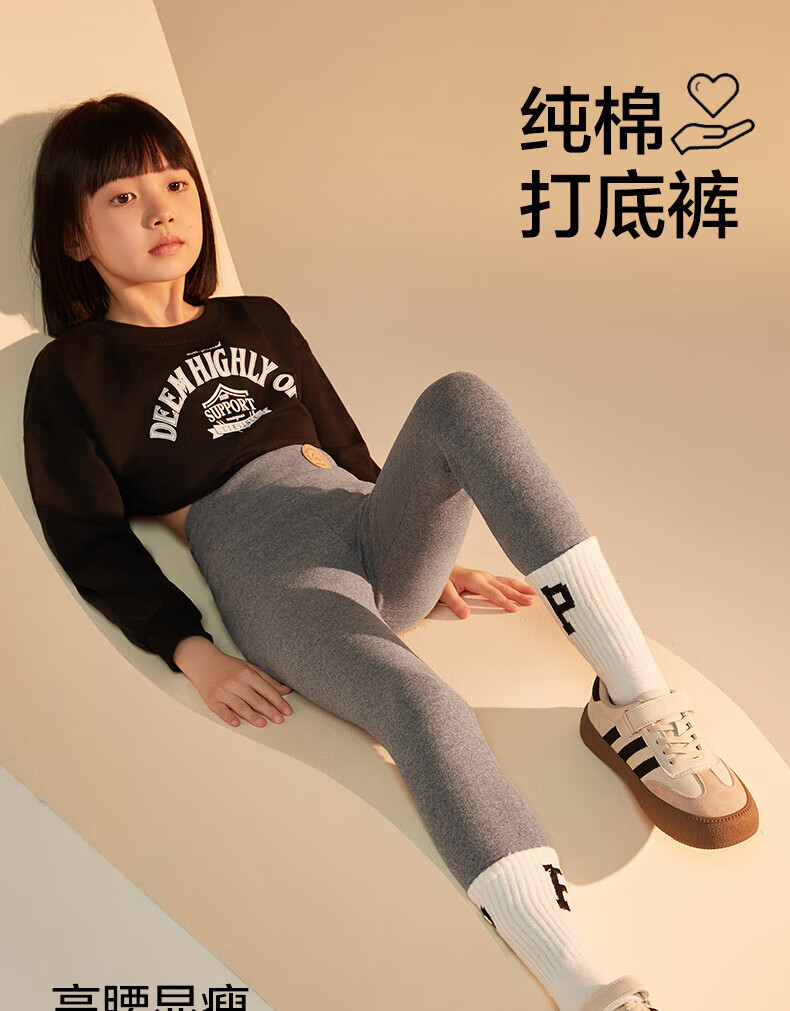 小猪班纳(PEPCO)女童打底裤春秋裤外穿95棉2024新款儿童中大童高腰洋气芭比裤薄款 深灰 150 建议身高(145-155CM)
