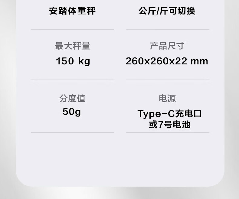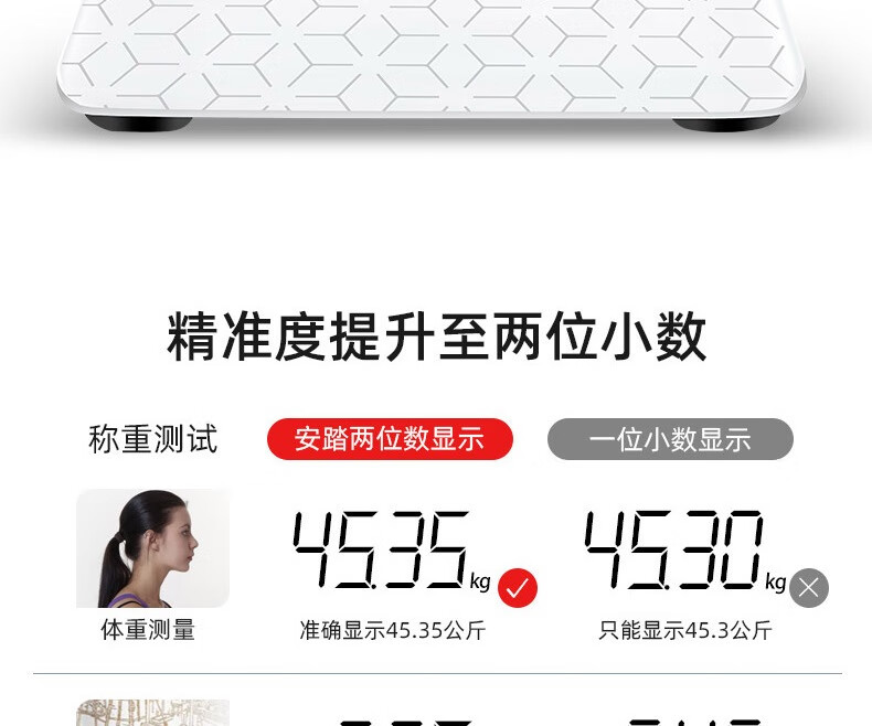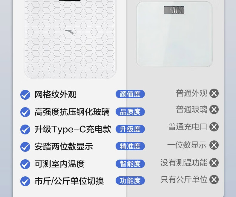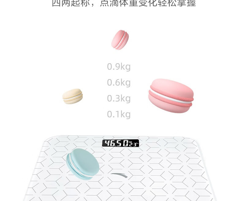 安踏体重秤精准高精度家用健康电子秤小型人体秤女生宿舍专业充电减肥 网格白-体重秤-充电款