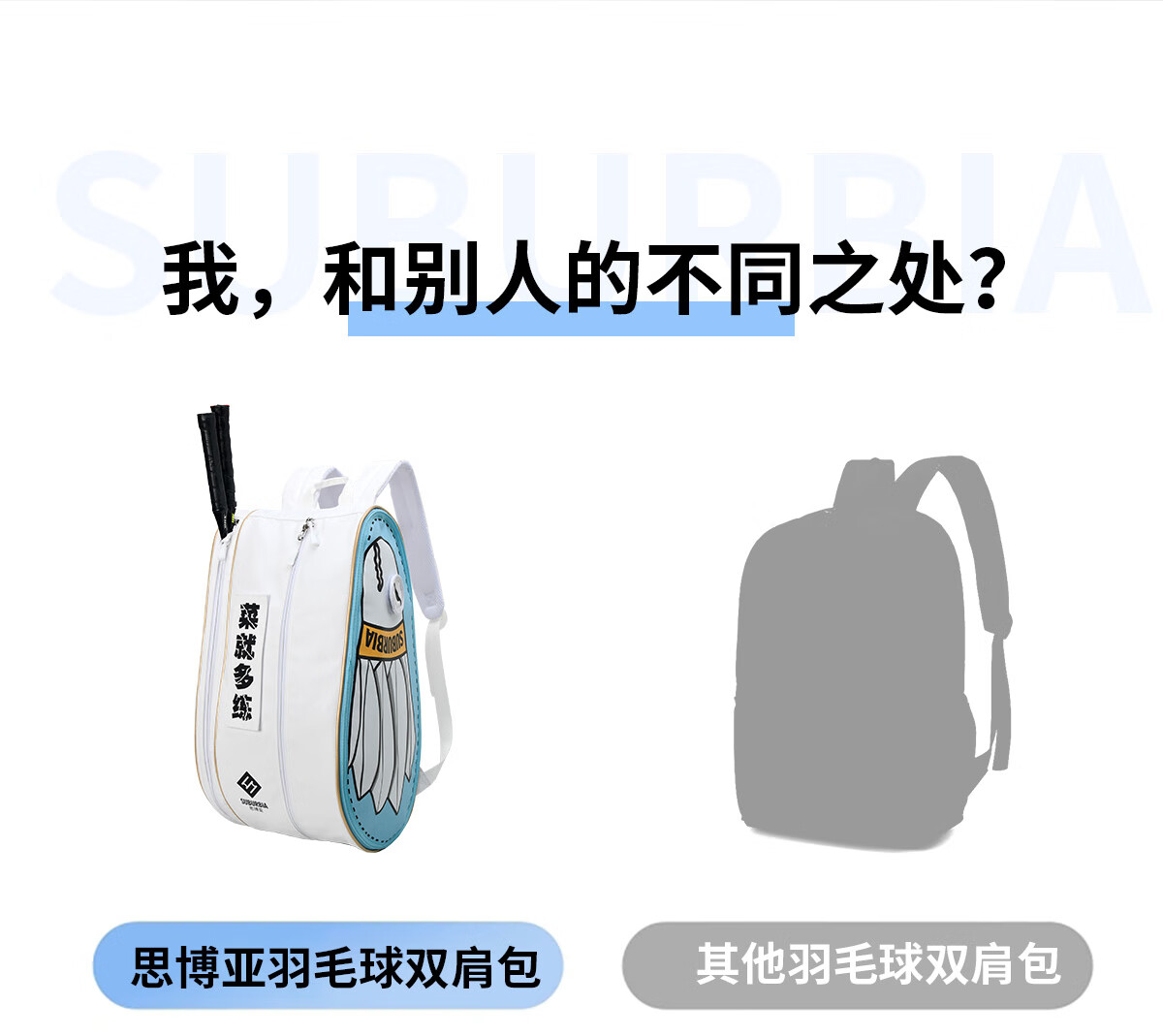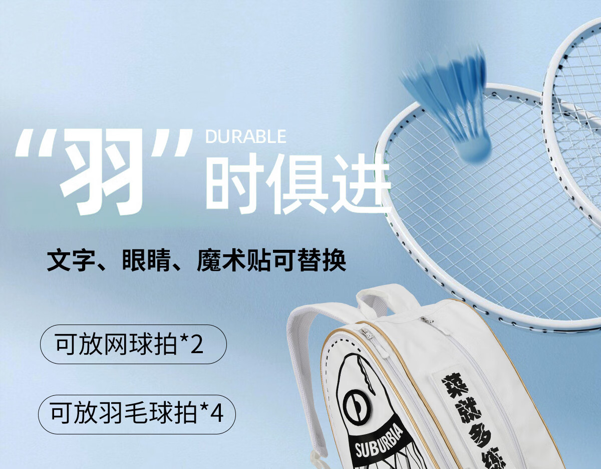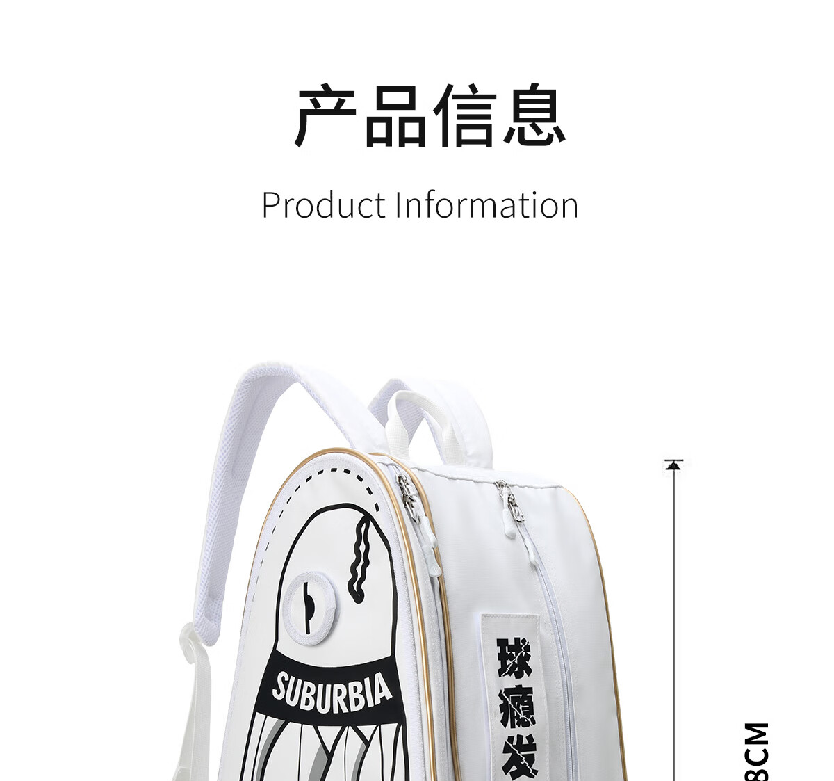 SUBURBIA专业羽毛球包大容量双肩男女新款多功能运动时尚背包漫画风显眼包 如图