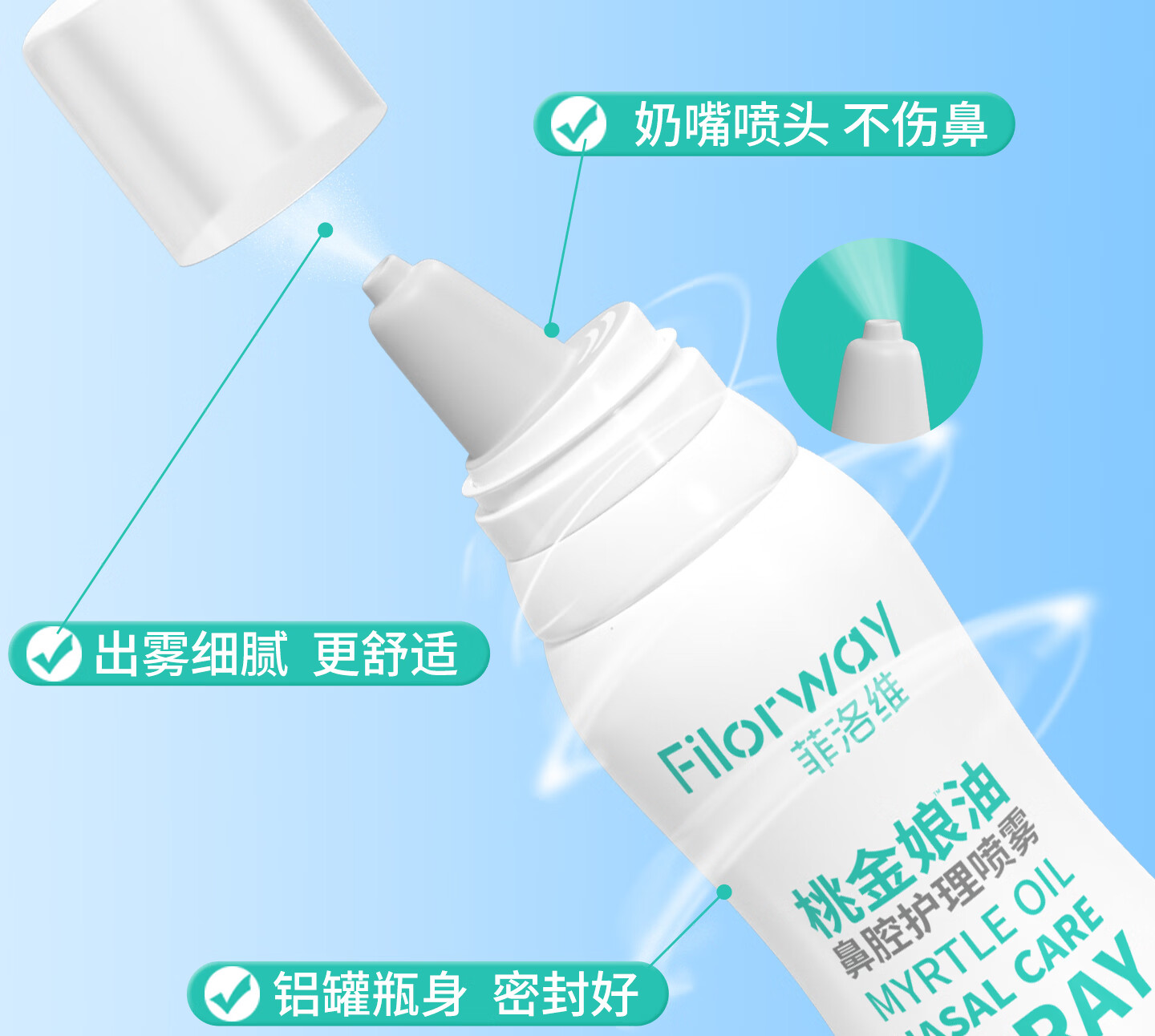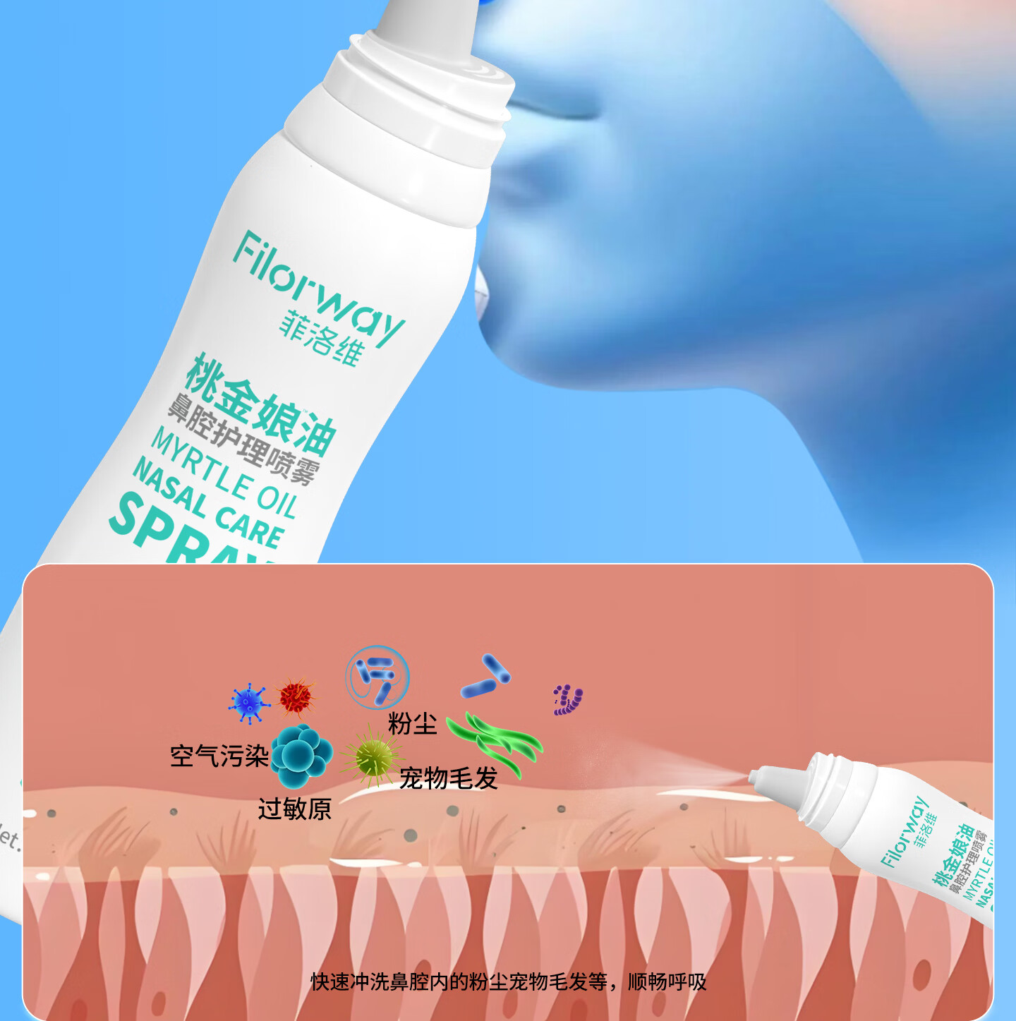 菲洛维桃金娘油儿童鼻腔喷雾剂过敏性流鼻涕鼻塞鼻子干燥通鼻洗鼻护理液 【两支优惠装】儿童成人专用鼻子喷雾剂