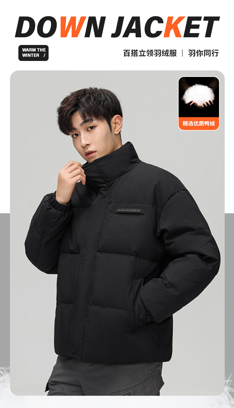 国际标准羽绒服高品质保暖国标服加厚潮流立领外套 黑色 M
