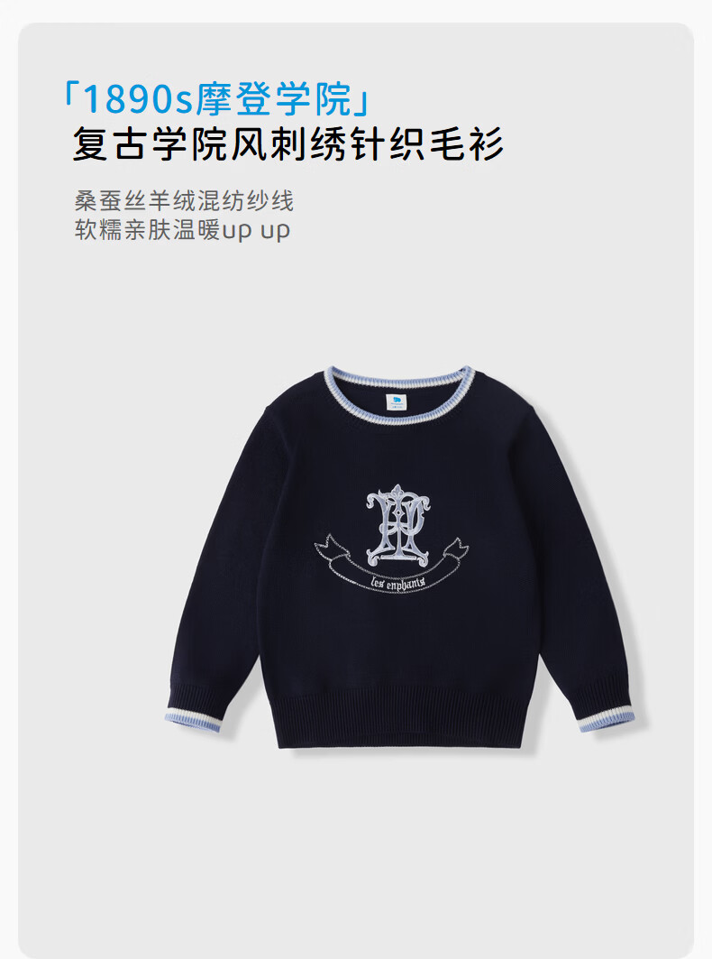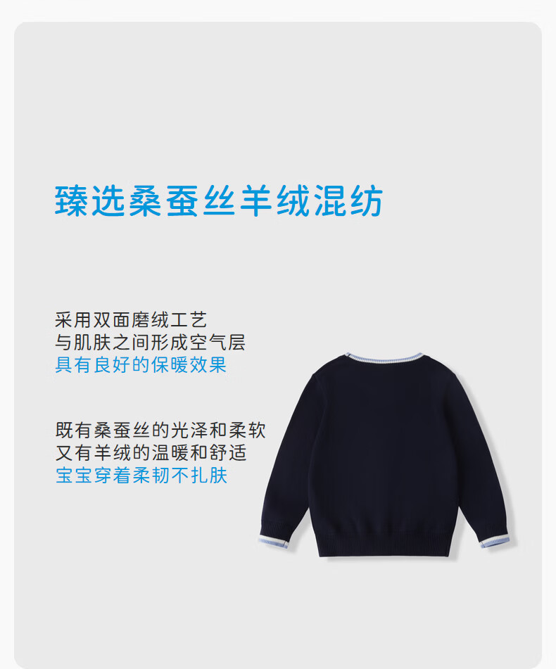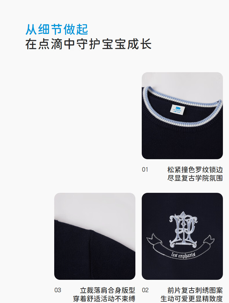 丽婴房儿童针织毛衣复古学院风春季款针织毛衣春季上衣2026春新款 藏青 90 cm