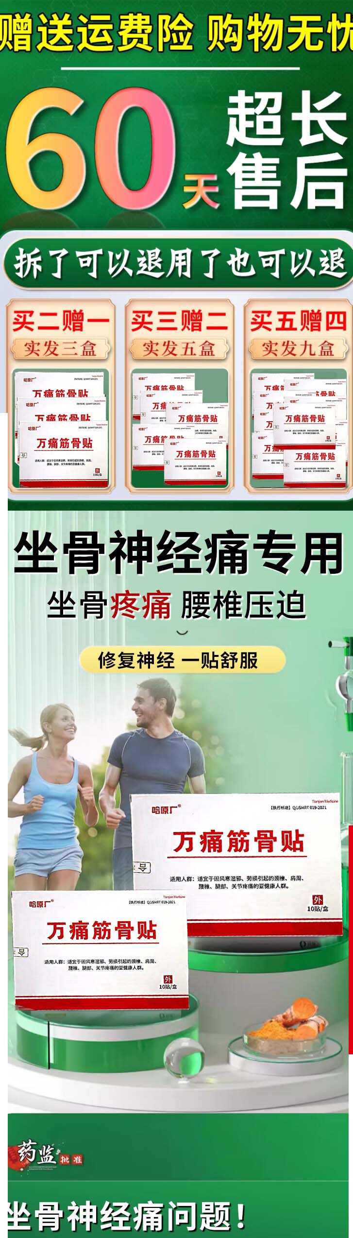 哈药哈总厂万痛筋骨贴腰疼膏药坐骨神经痛膏药消炎活血化瘀止痛镇痛 特效:3盒【屁股 坐骨神经专用】