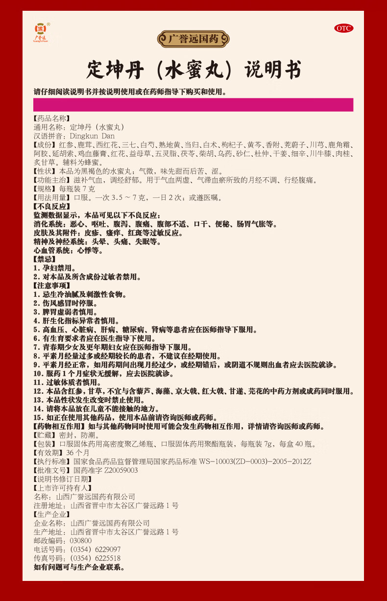 [广誉远]定坤丹 7g*40瓶 1盒装 滋补气血 调经舒郁