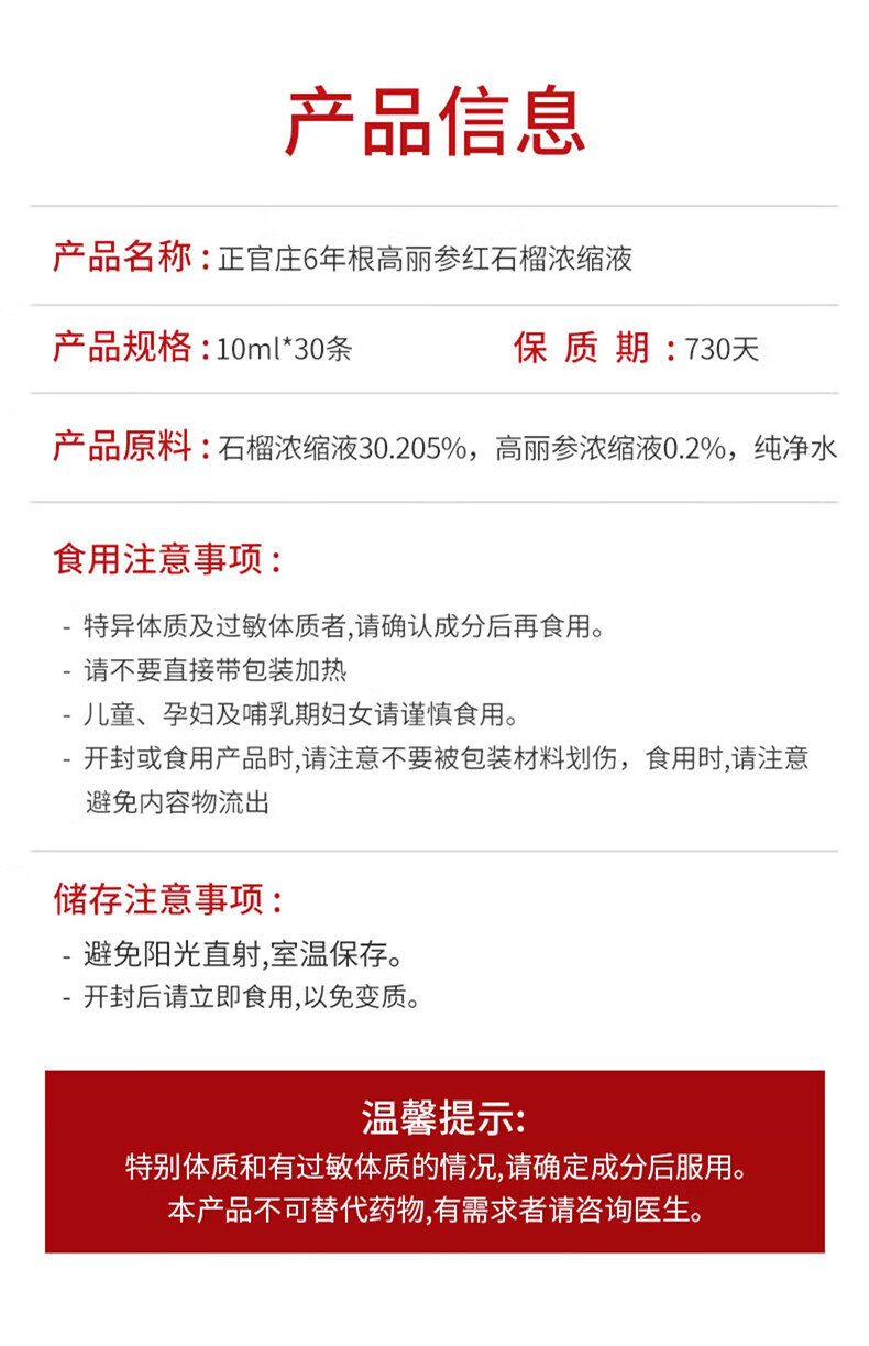 正官庄韩国进口6年根红石榴液人参补气礼盒10ml*30包女神节 石榴汁 10ml*30包