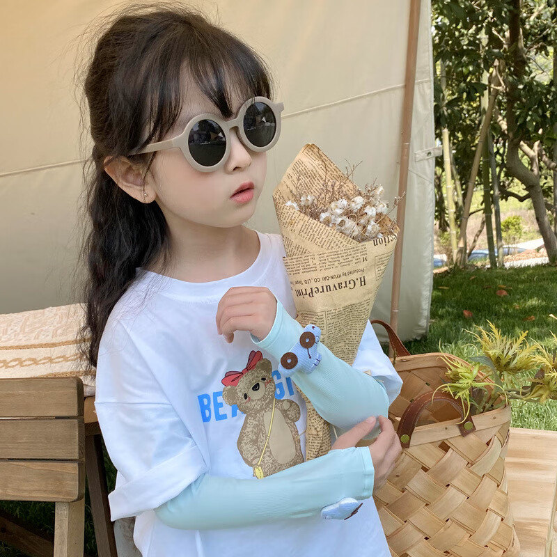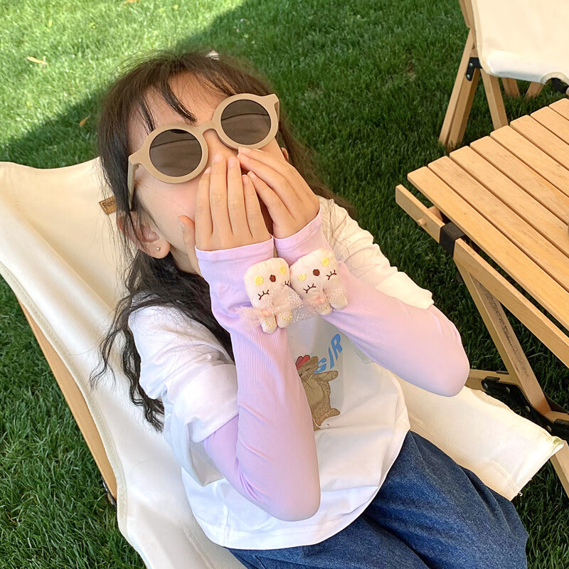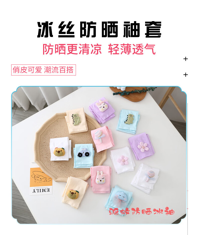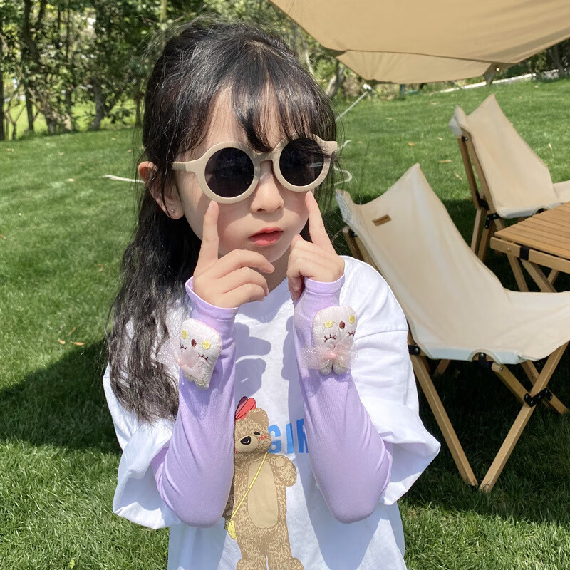 【厂家直发】2022新款儿童冰袖韩版立体卡通套袖男女宝宝防晒袖套 019卡通棒棒糖紫色【驱蚊款】