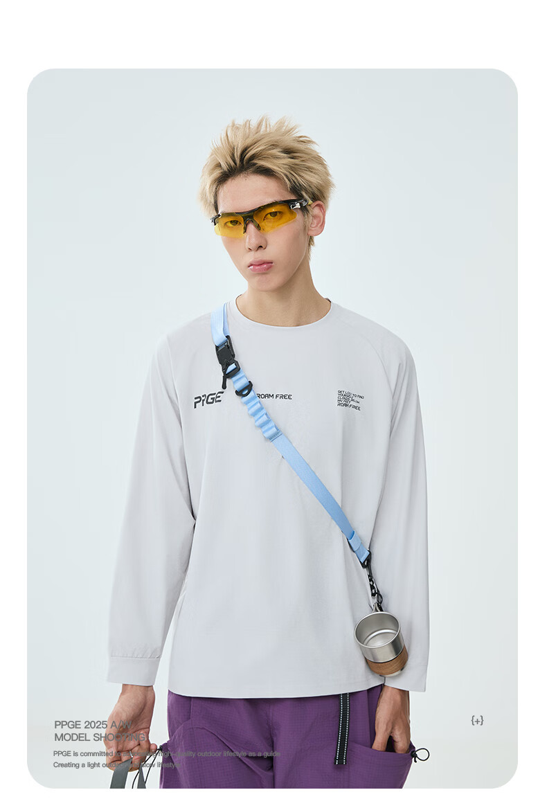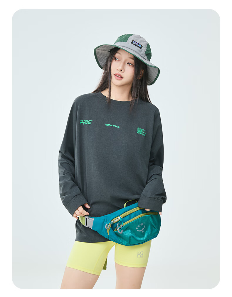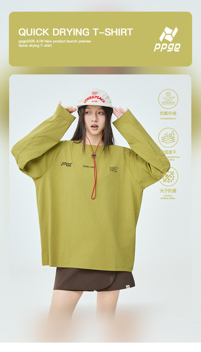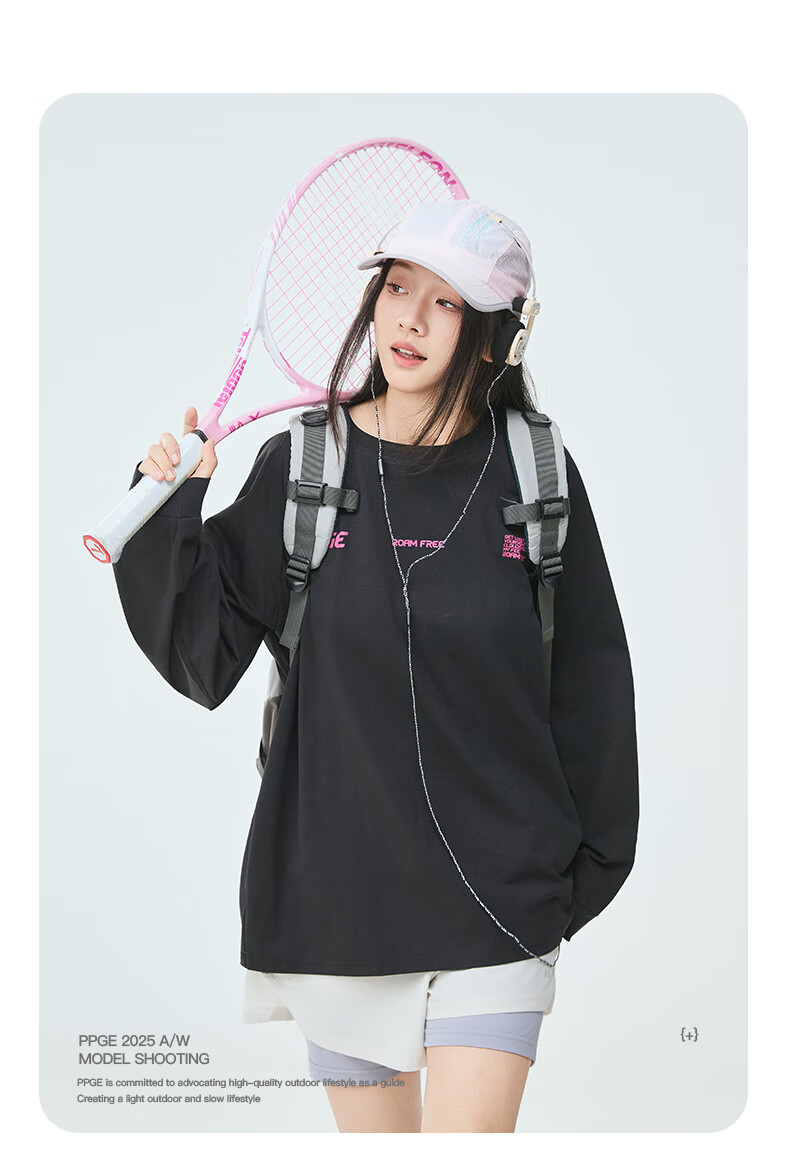 PPGE速干衣春秋防晒抑菌透气长袖上衣打底衫男女同款字母印花速干t恤 曜石黑 S