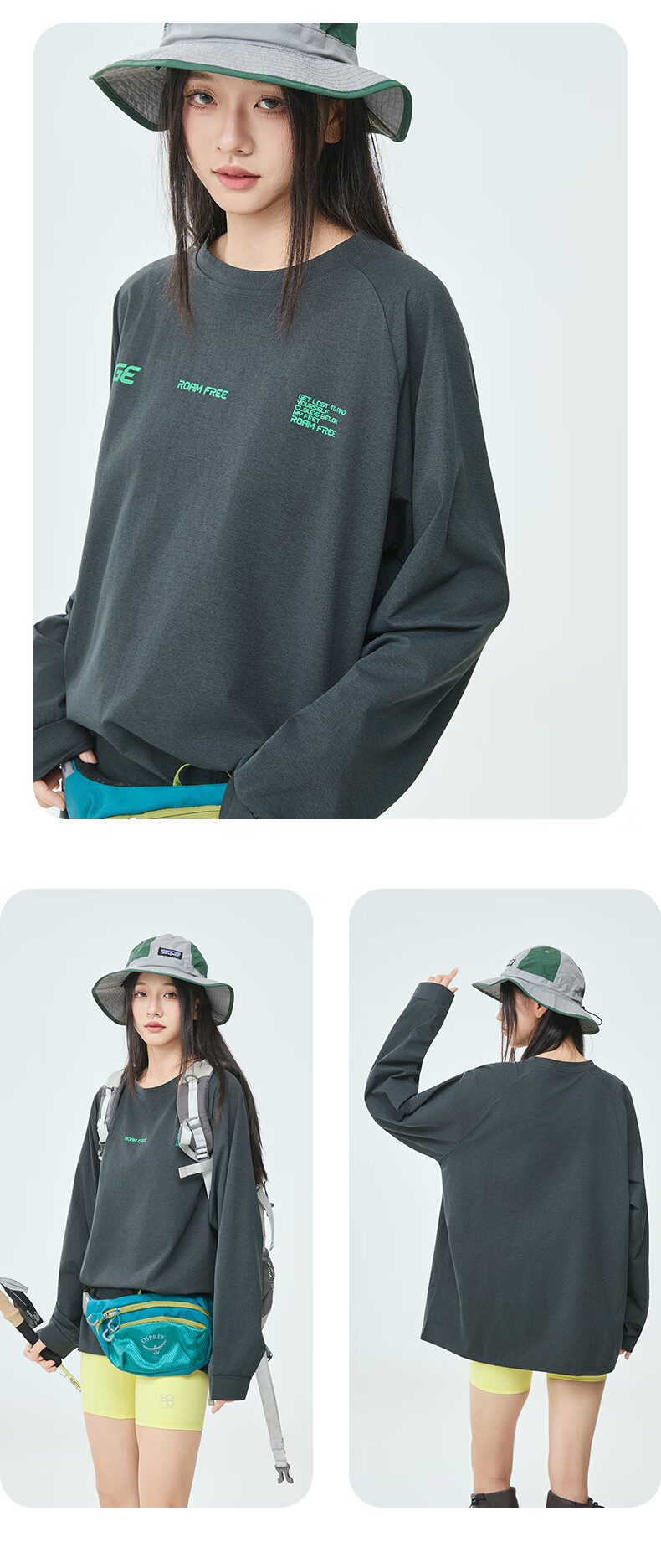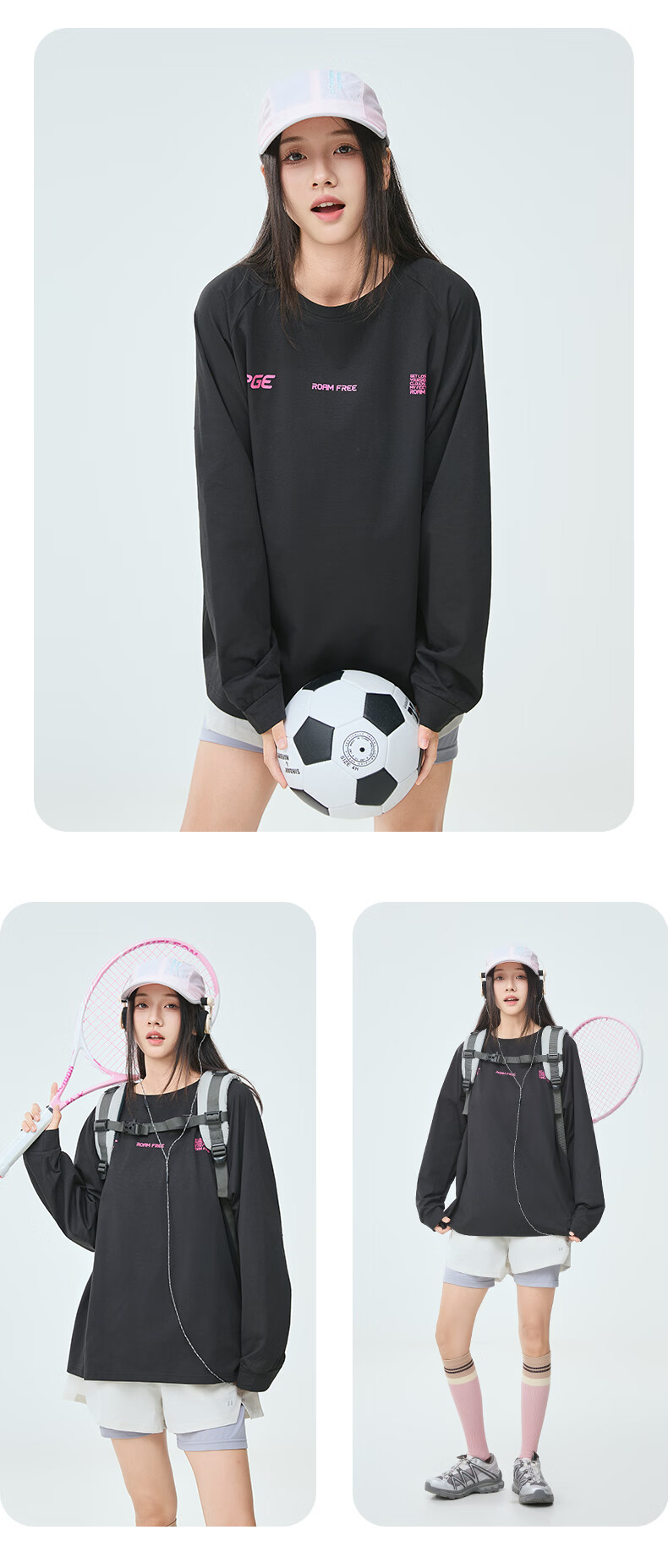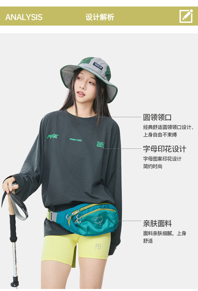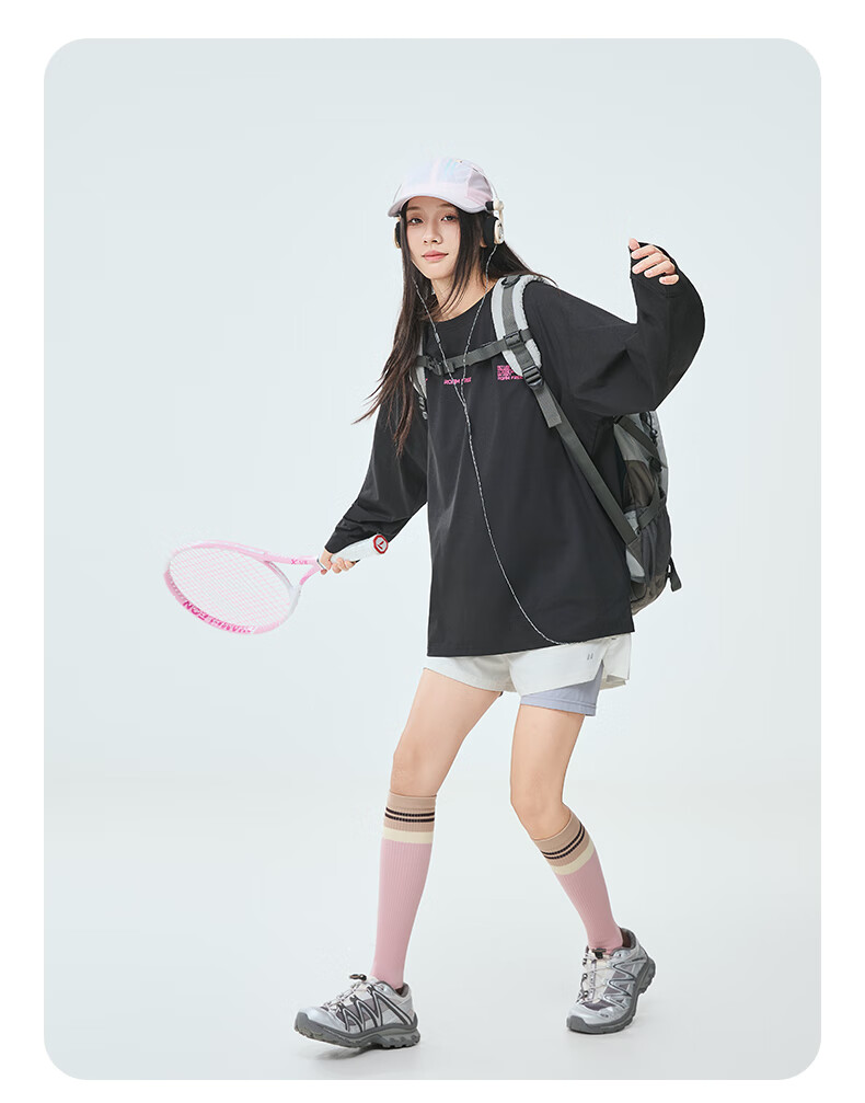 PPGE速干衣春秋防晒抑菌透气长袖上衣打底衫男女同款字母印花速干t恤 曜石黑 S