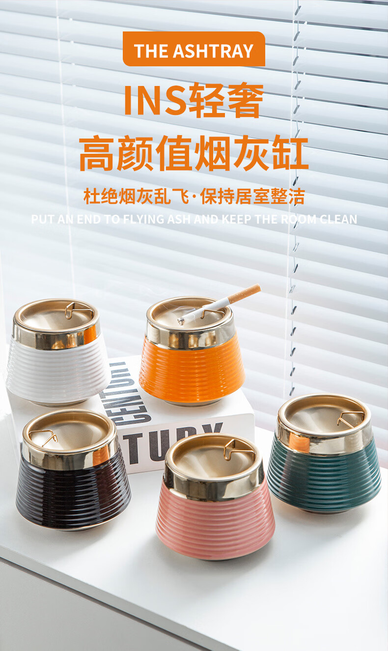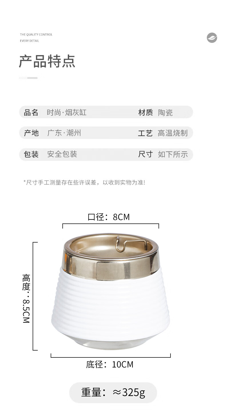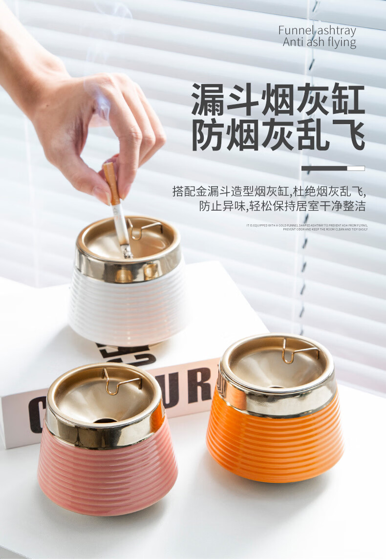 ECO IN CORNins高颜值陶瓷烟灰缸创意客厅卧室办公室防飞灰简约现代轻奢烟缸 白色