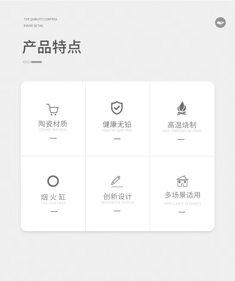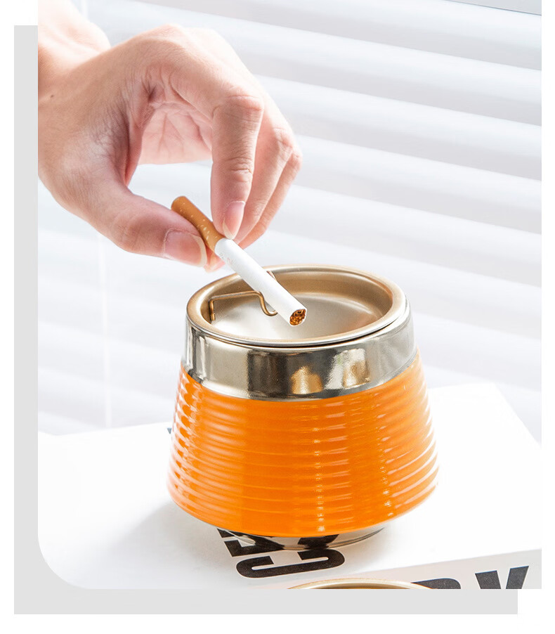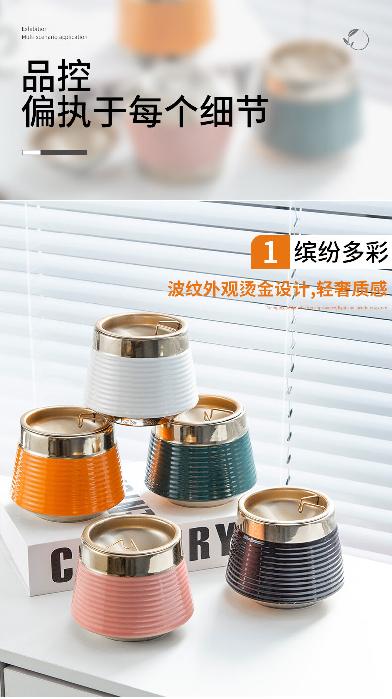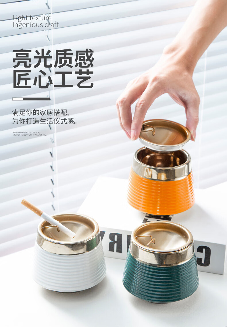 ECO IN CORNins高颜值陶瓷烟灰缸创意客厅卧室办公室防飞灰简约现代轻奢烟缸 白色