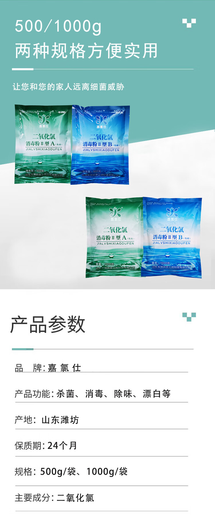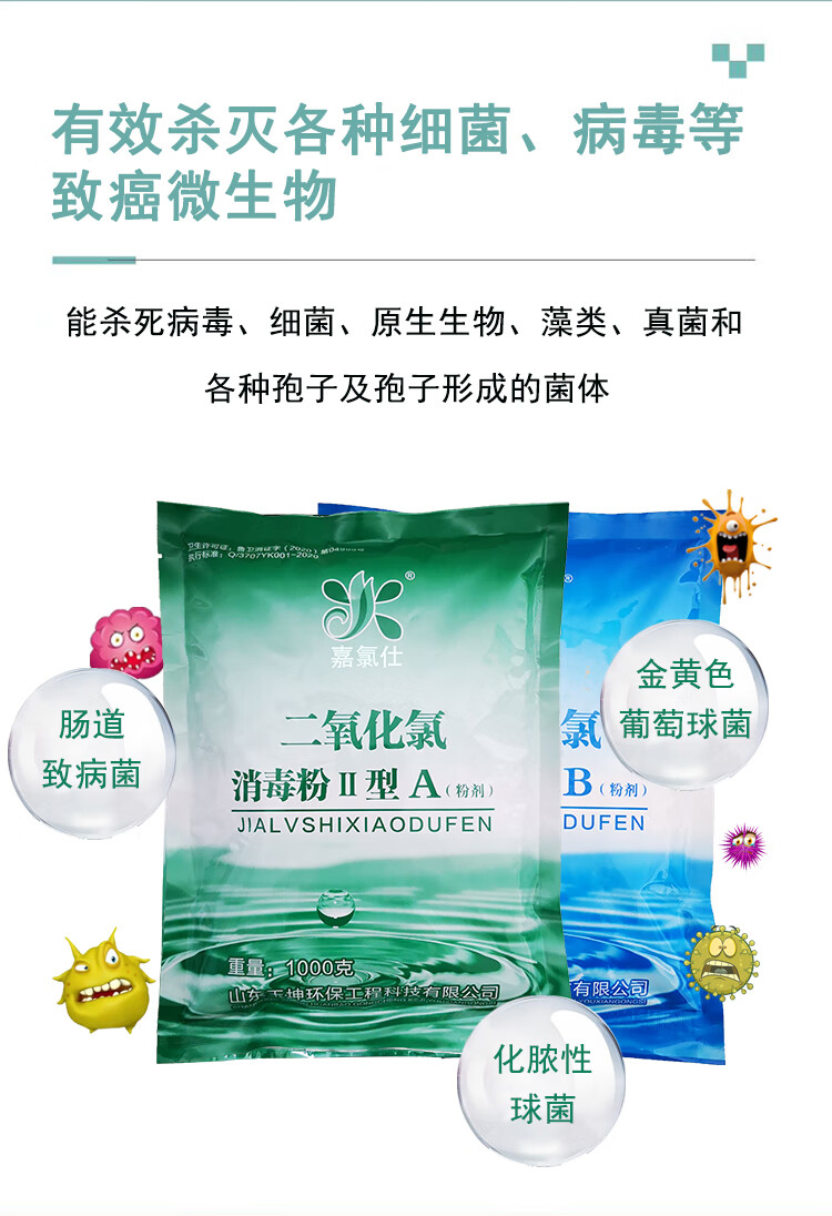 嘉氯仕二氧化氯消毒粉ab剂48%高浓度医院医疗养老院污水站杀菌处理达标 10kg/箱(A5kg+B5kg)1kg/袋装