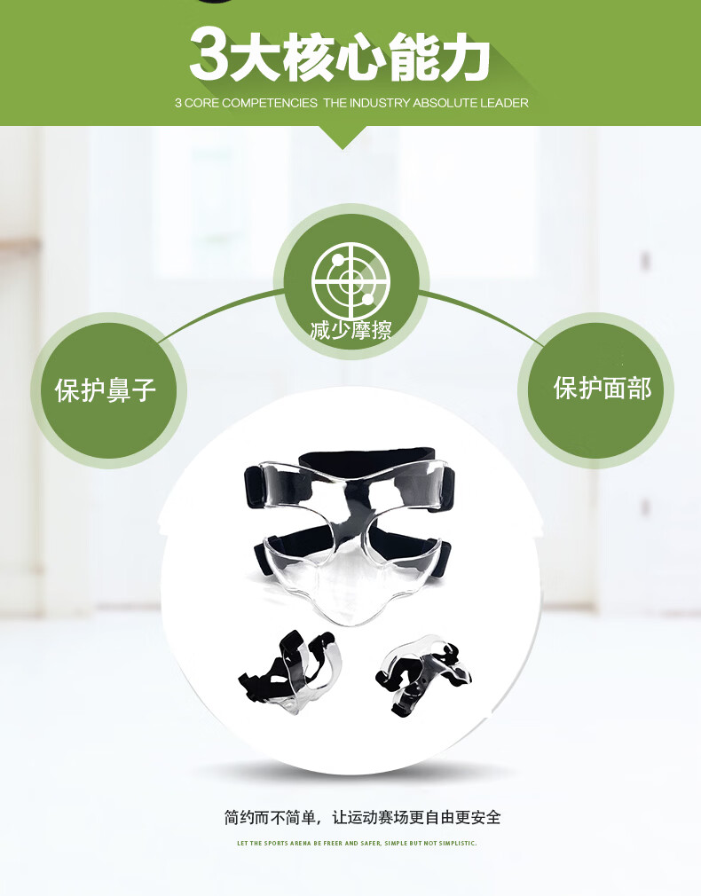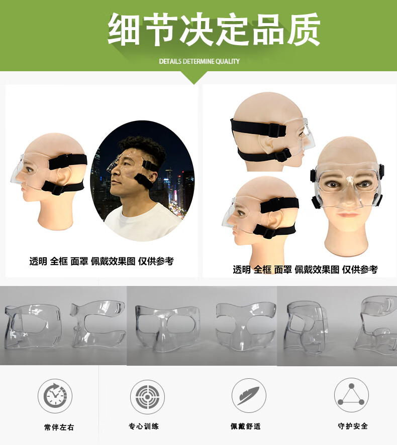 泽赛高透篮球面具护鼻防护面罩日常训练足球篮球运动保护装备半框款式 运动防护面具成人青少年通用透明款篮球护脸面具 篮球防护面罩护鼻脸防撞面具头部保护罩透明色篮球运动