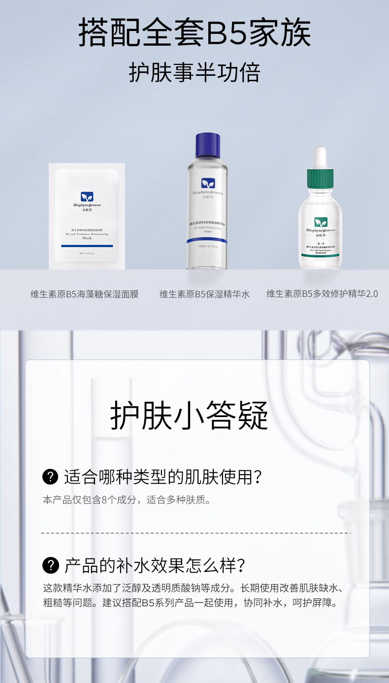 百植萃(Biophyto-genesis)维生素原B5多效保湿精华水 爽肤水保湿补水精简护肤敏感肌专研 【囤货装享】B5精华水200ml*2