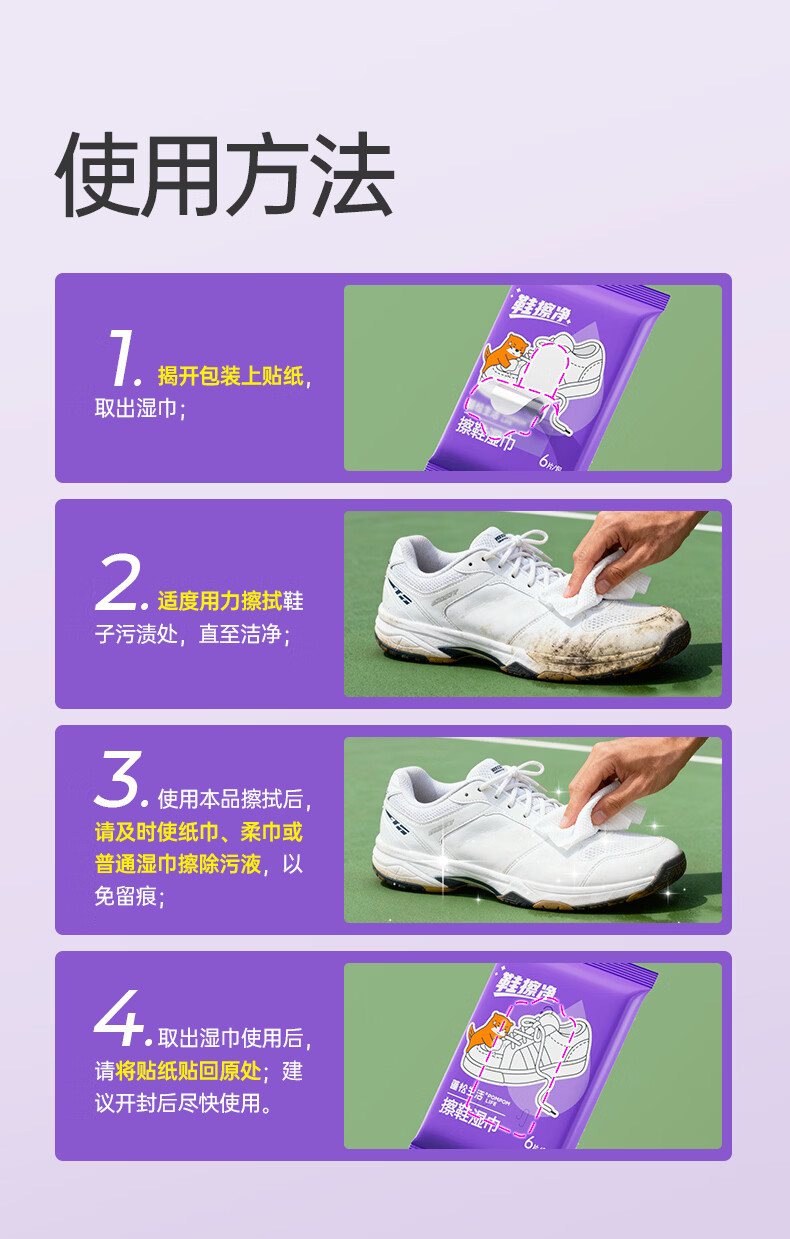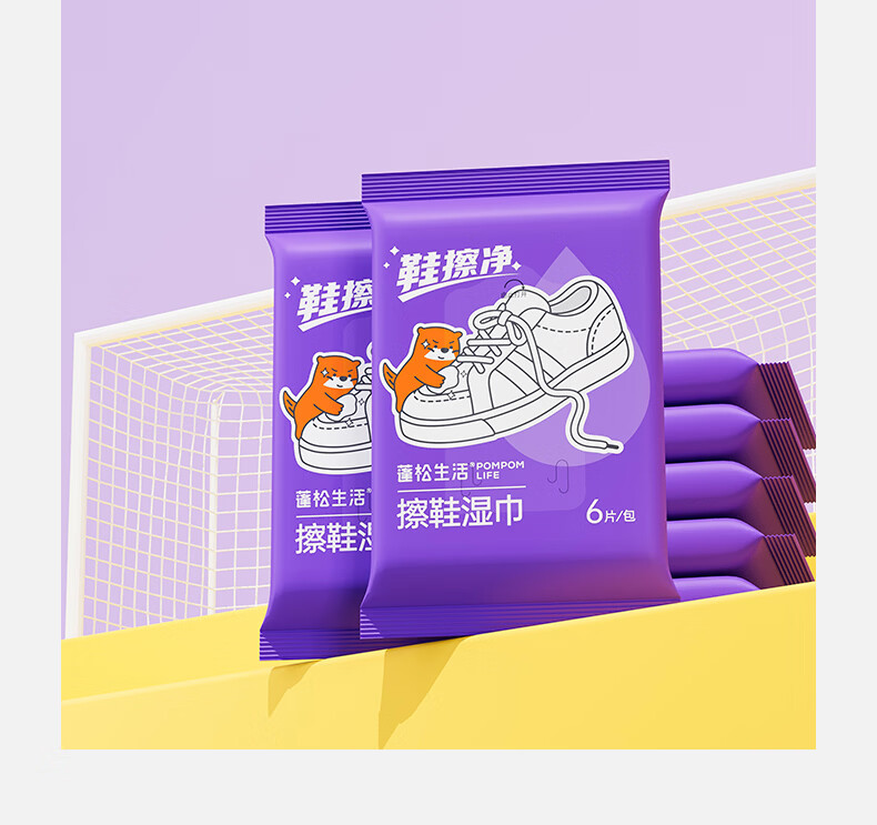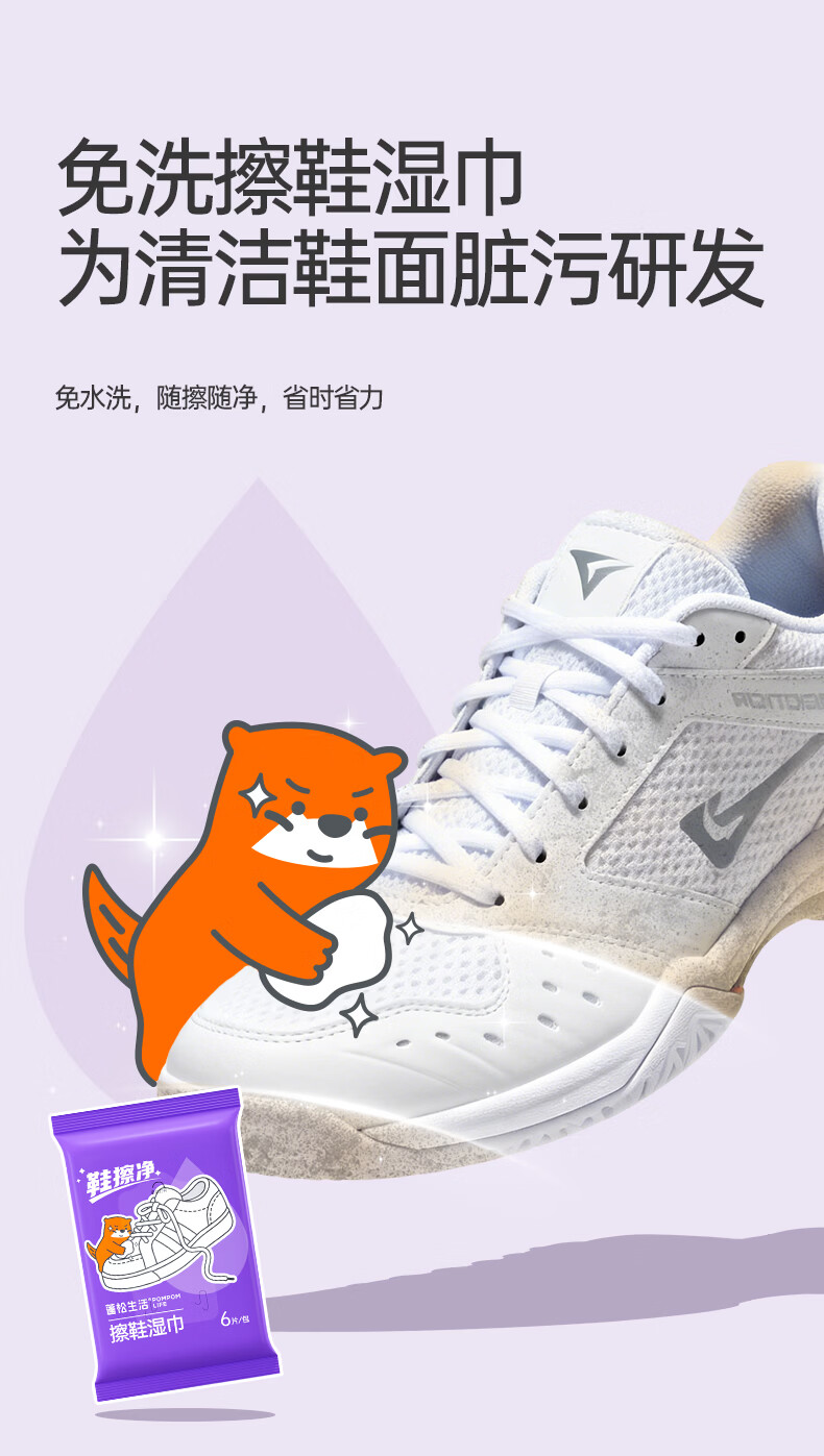 蓬松生活擦鞋湿纸巾强力去污便携小包家用出门旅行上学随身装卫生清洁湿巾 擦鞋湿巾6抽*5包