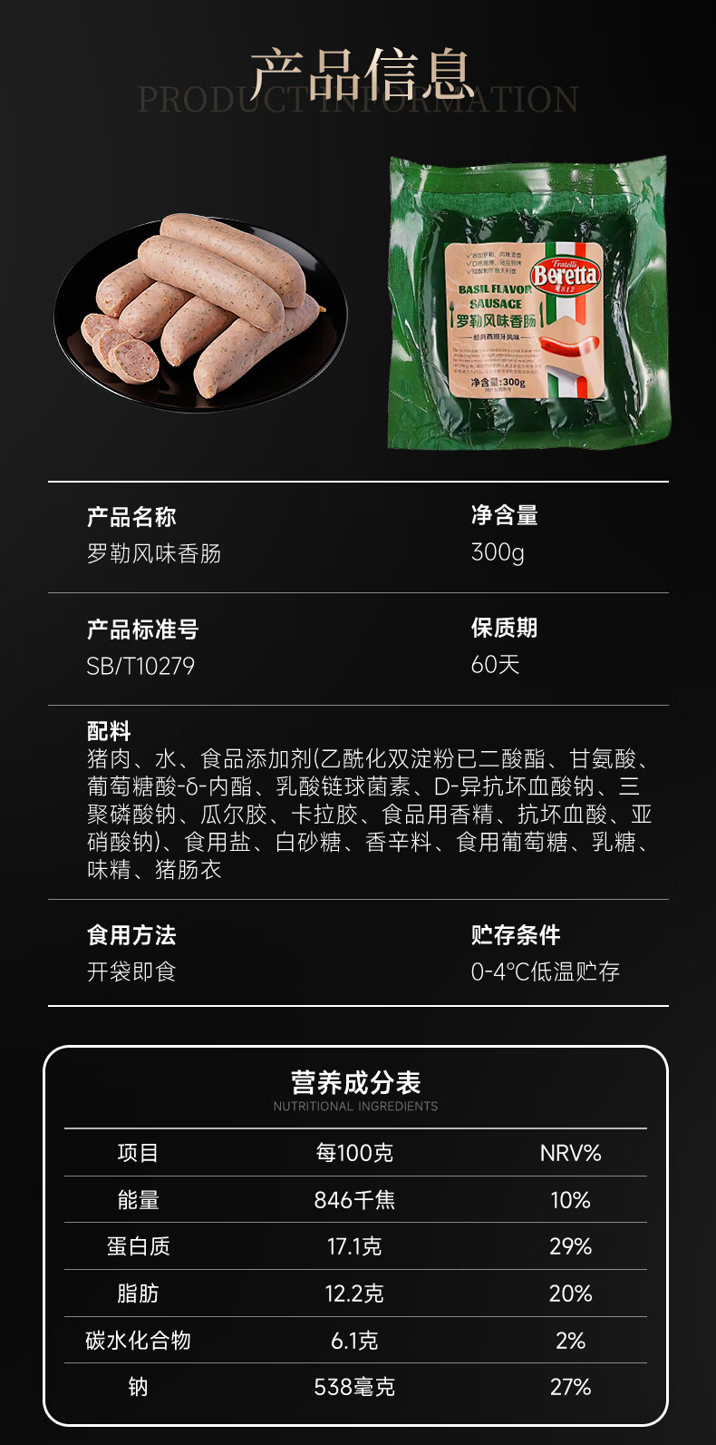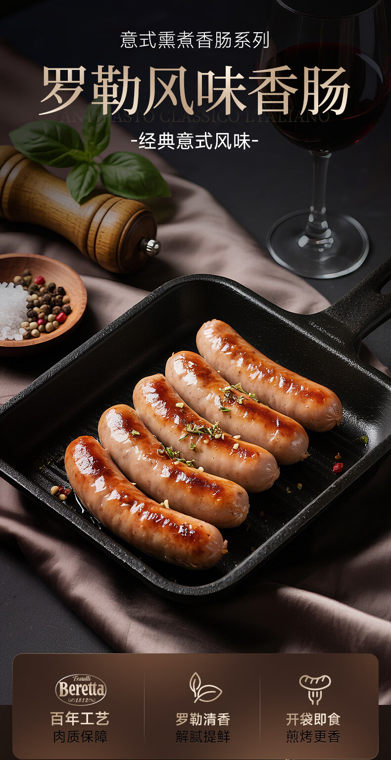 FRATELLI BERETTA罗勒香肠300g 烤肠德式风味 即食肉香肠 烧烤早餐速食 年货节送礼 罗勒香肠300g