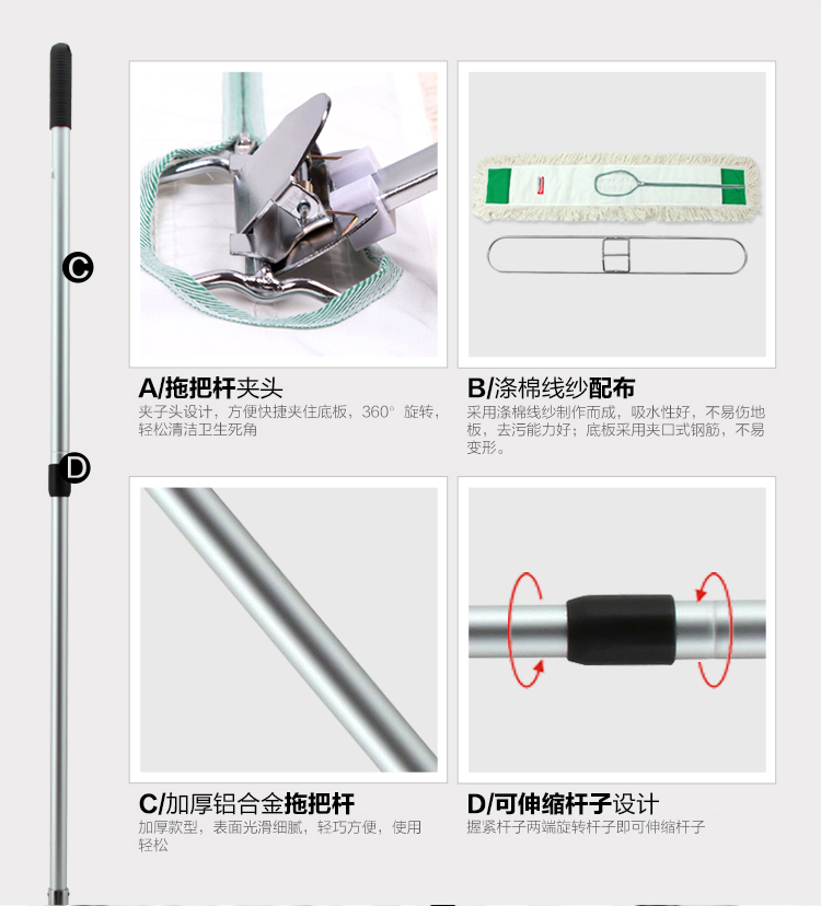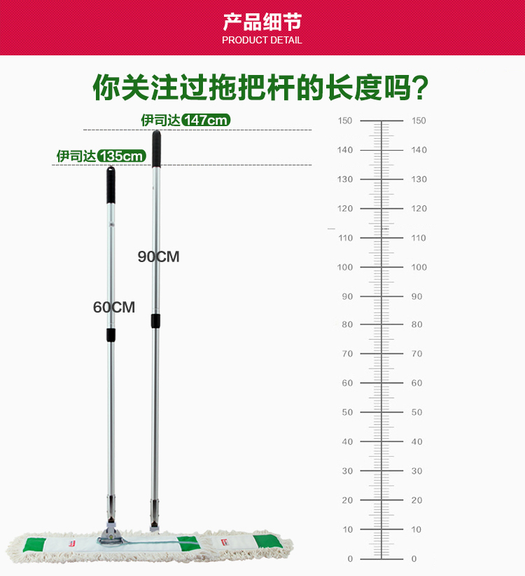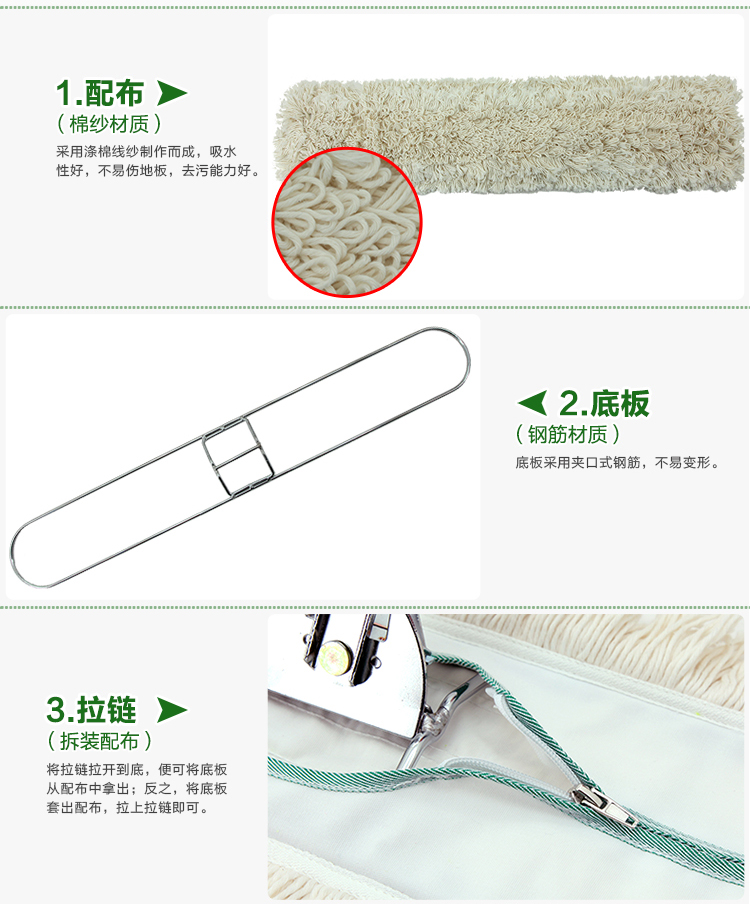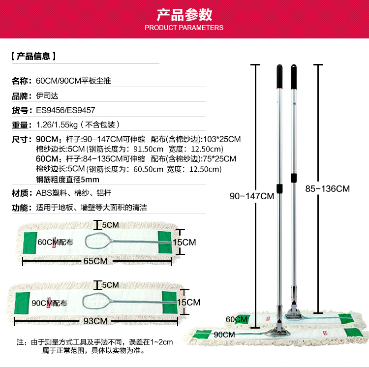 伊司达(EAST)拖把 大拖布平板拖把大号尘推长墩布地拖旋转棉纱拖把头60cm90cm 90cm+配布
