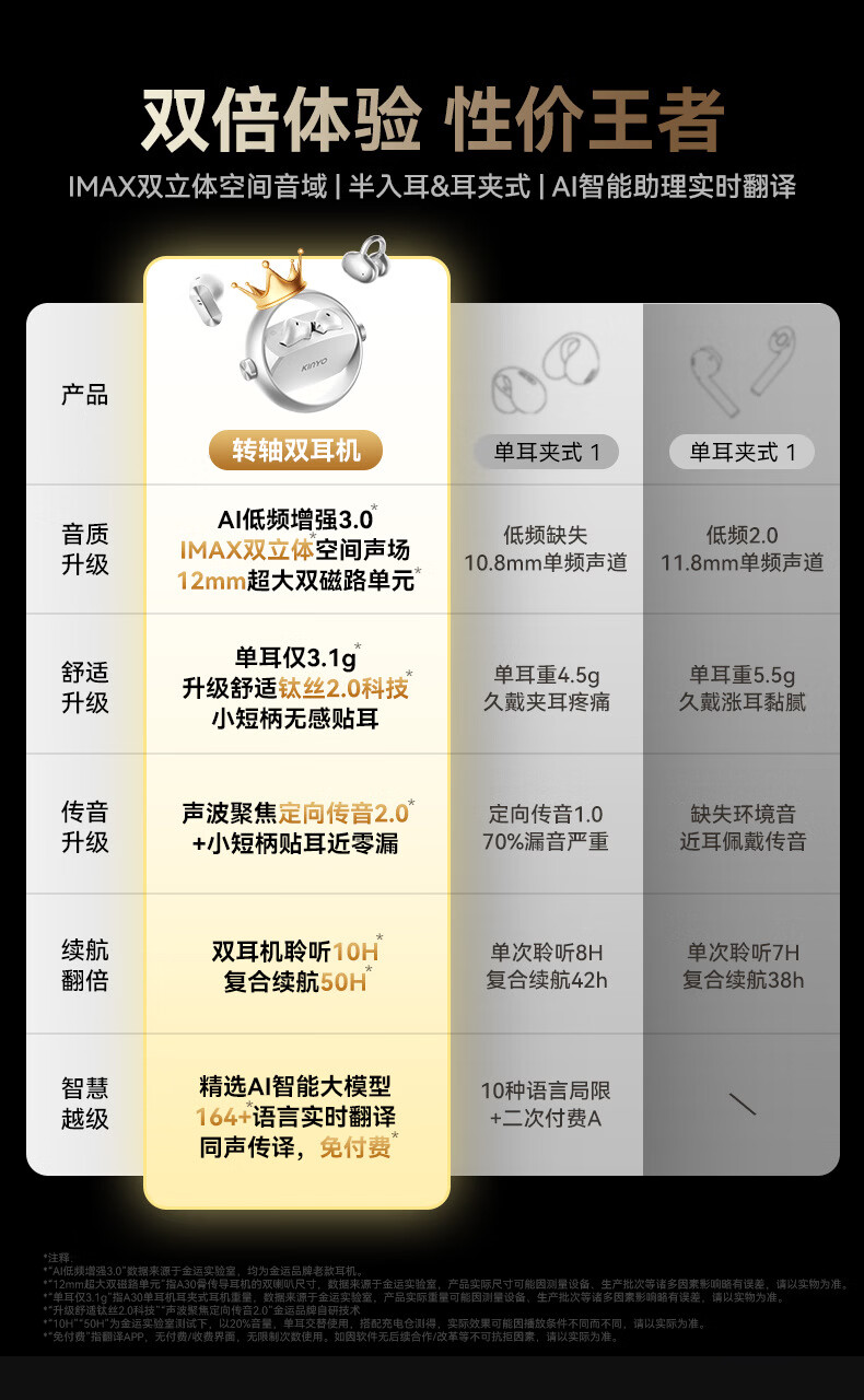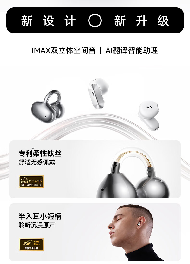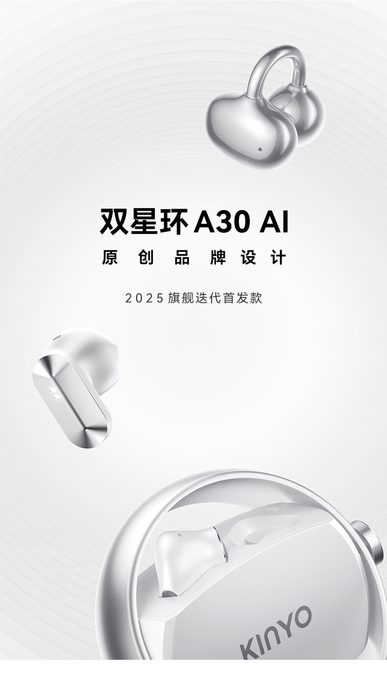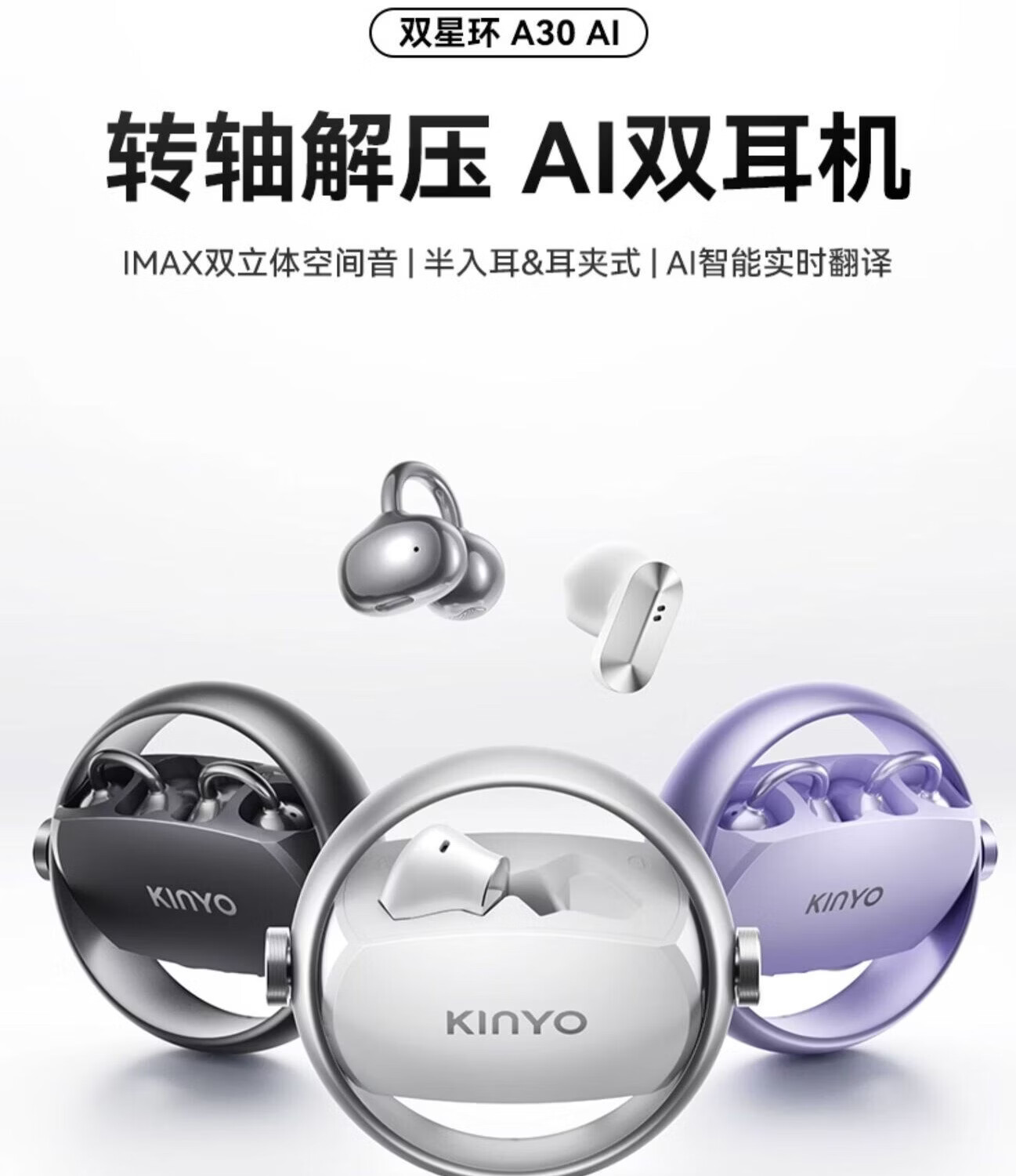 KINYO金运【柏林之声|ai两副耳机】2026新款蓝牙耳机无线耳夹式半入耳骨传导概念超长续航A30翻译 紫色