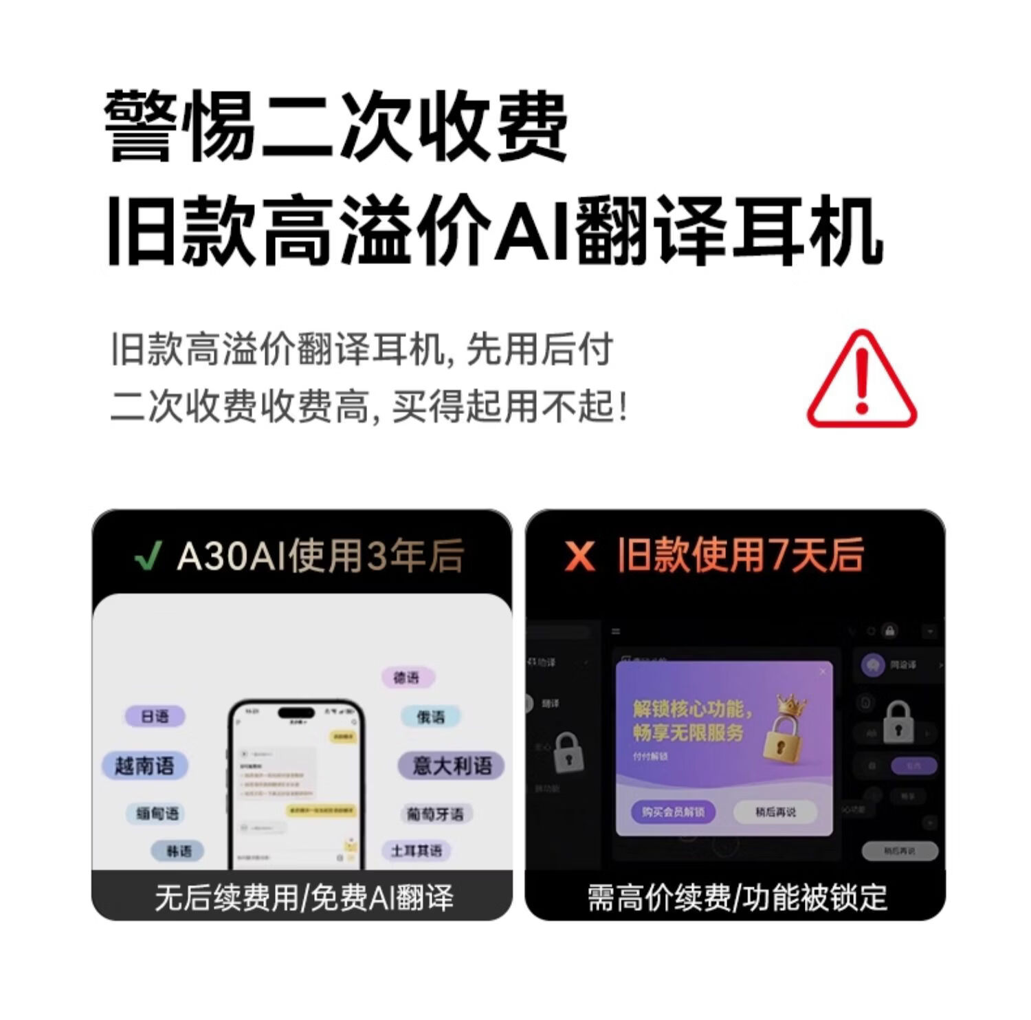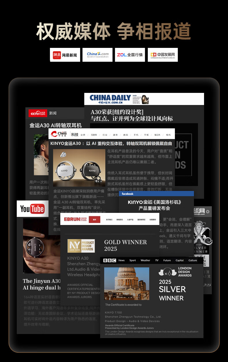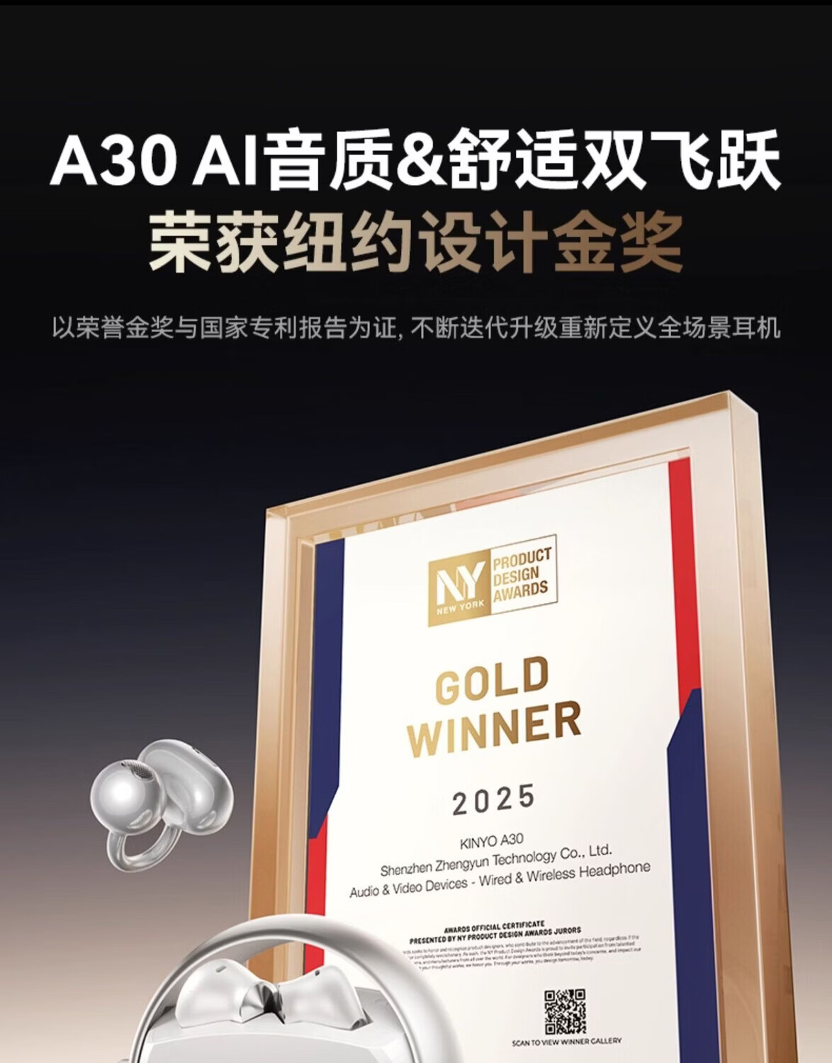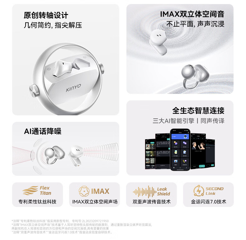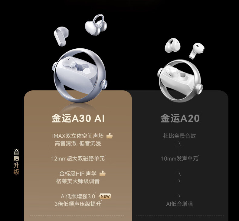 KINYO金运【柏林之声|ai两副耳机】2026新款蓝牙耳机无线耳夹式半入耳骨传导概念超长续航A30翻译 紫色