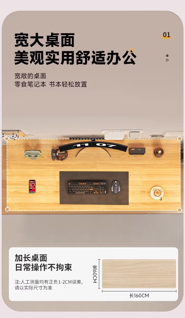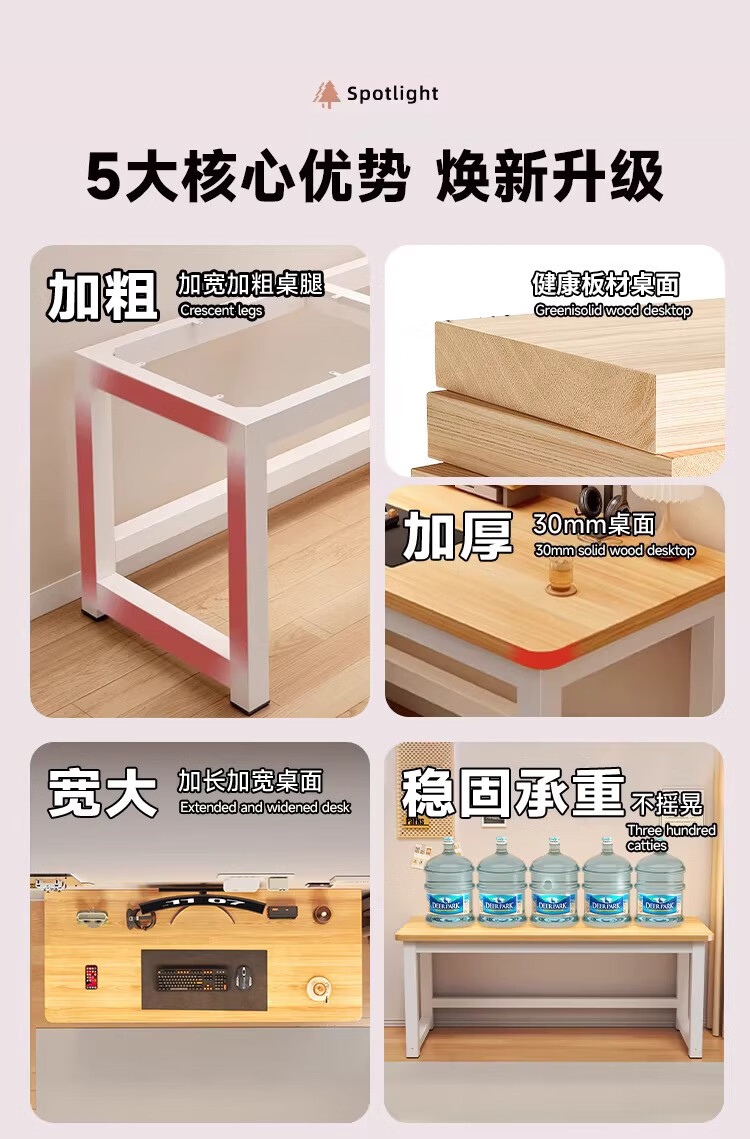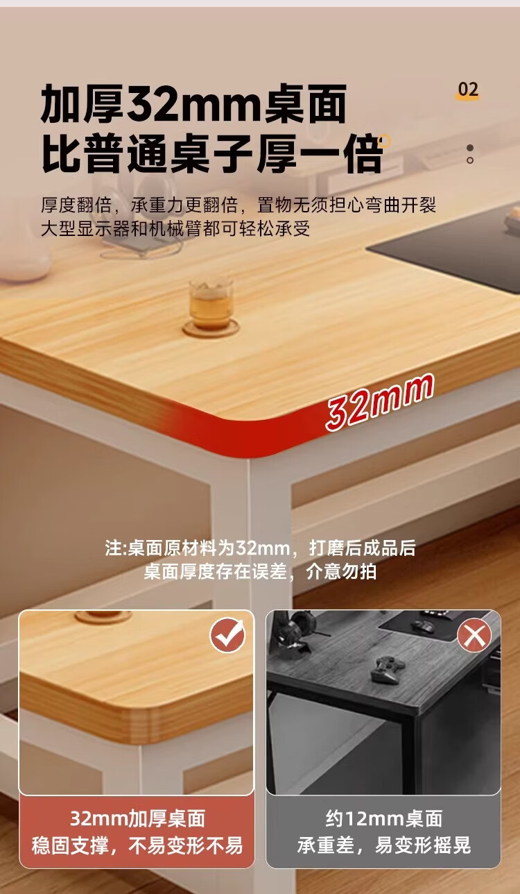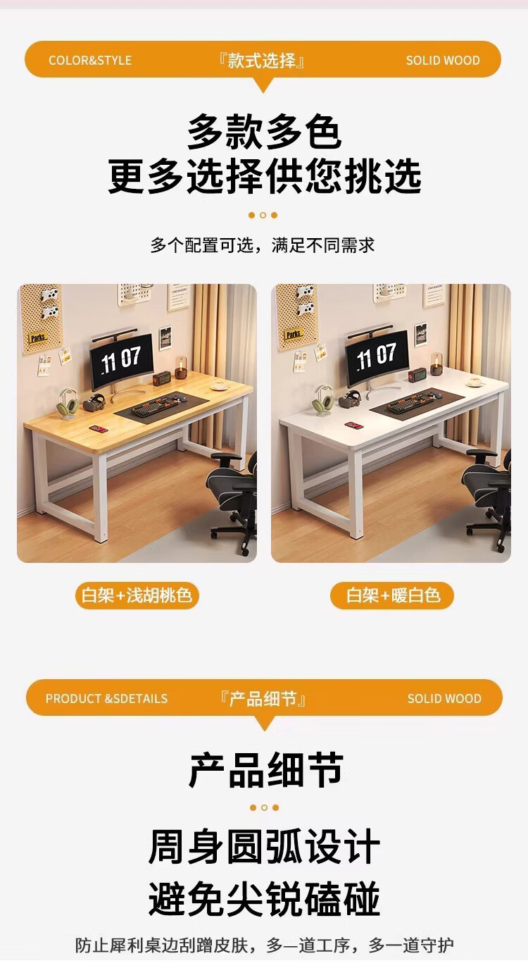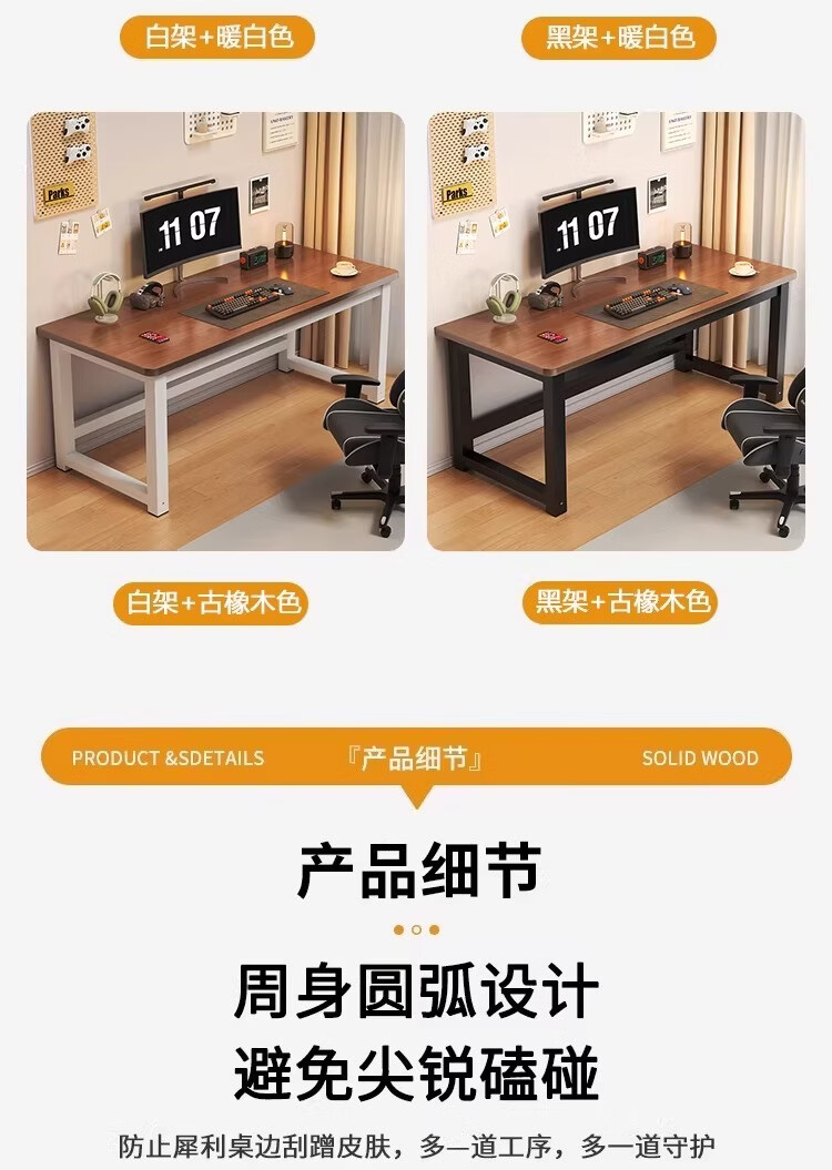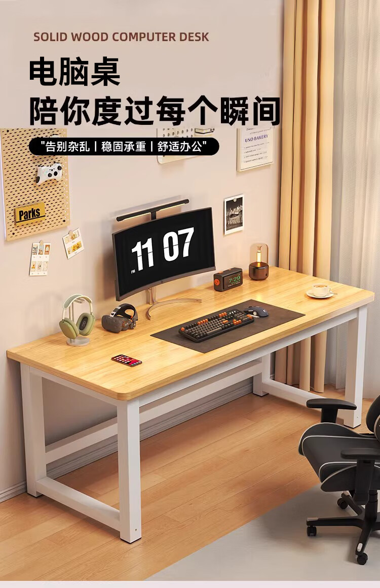 百目源(BAIMUYUANN)电竞桌台式电脑桌家用加宽实木纹游戏桌人体工学办公学习书桌 浅木纹色 80*40