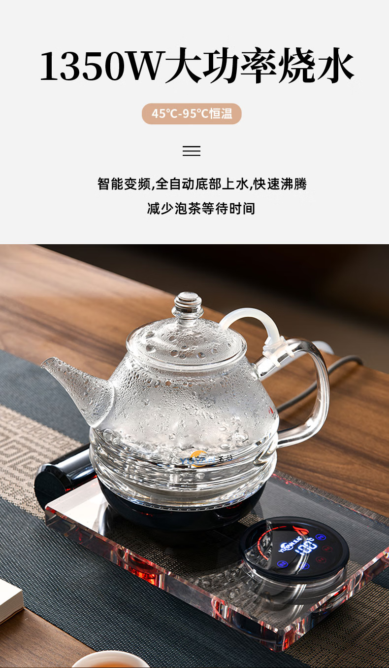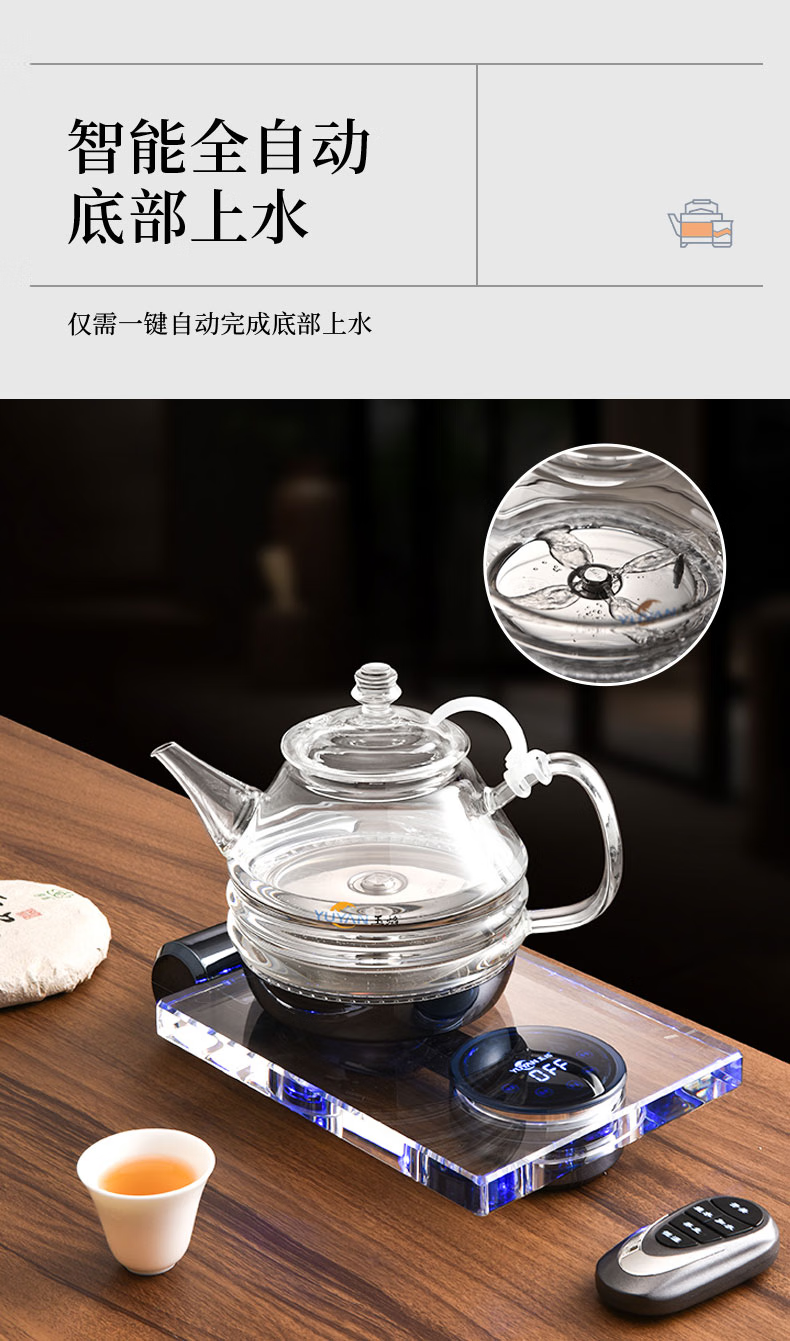 玉焰遥控全自动底部上水玻璃茶艺炉烧水壶煮茶家用茶台热水壶养生泡茶 T7 烧水款(桶装水)
