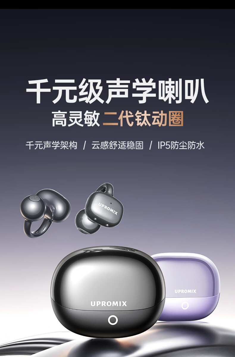 褚酷蓝牙耳机耳夹式骨传导概念运动跑步无线开放式不入耳超长续航挂耳式 镜曜黑