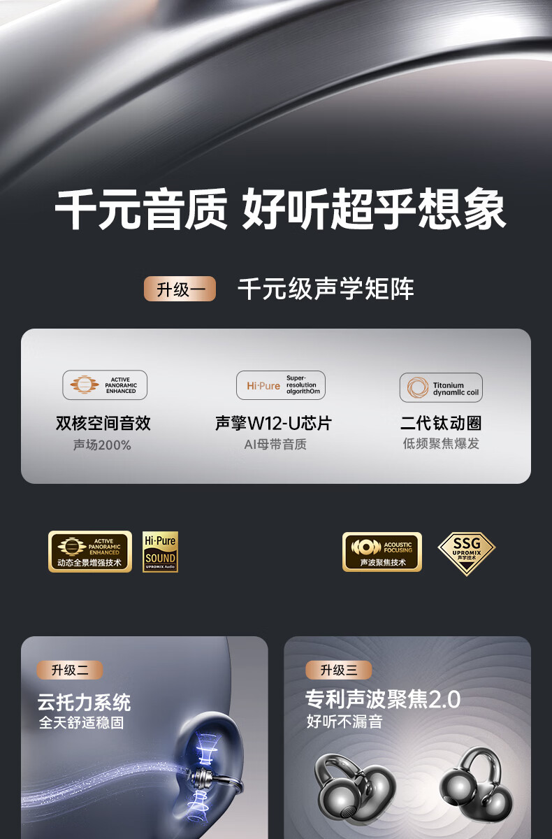 莅莱【100%好评丨顶配大喇叭】耳夹式蓝牙耳机开放耳机不入耳高音质长续航运动跑步金榜排行前十 清晰高音质 | 好评热销2W+ 60H续航+蓝牙5.4+苹果安卓通用