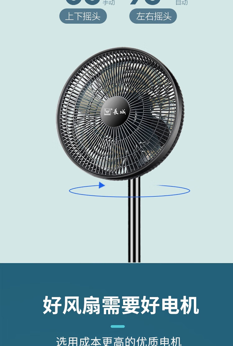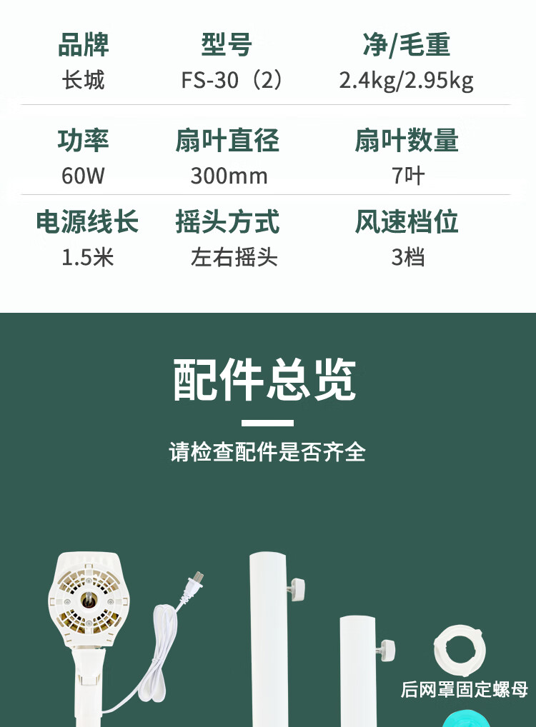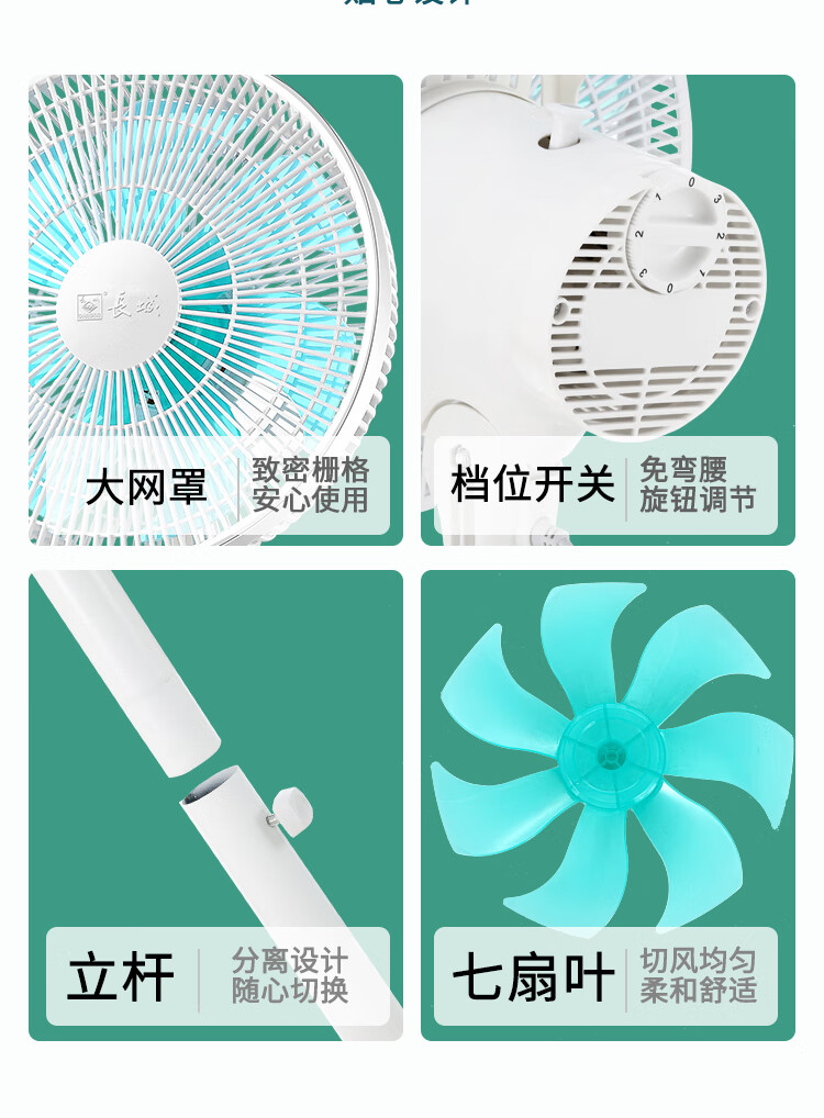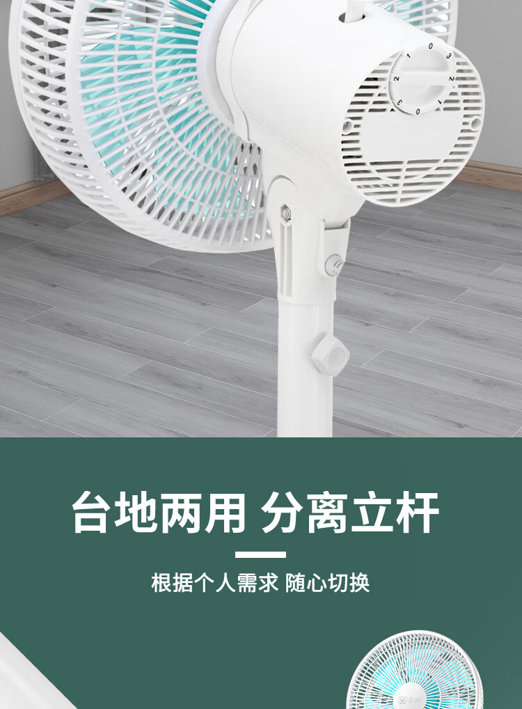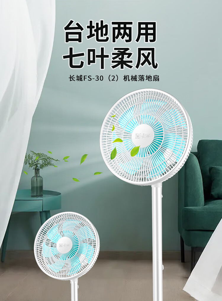 长城电风扇机械落地扇七叶台地两用风扇家用电扇大风量摇头扇风大音轻立式电扇 主推机械款FS-30(2)P白