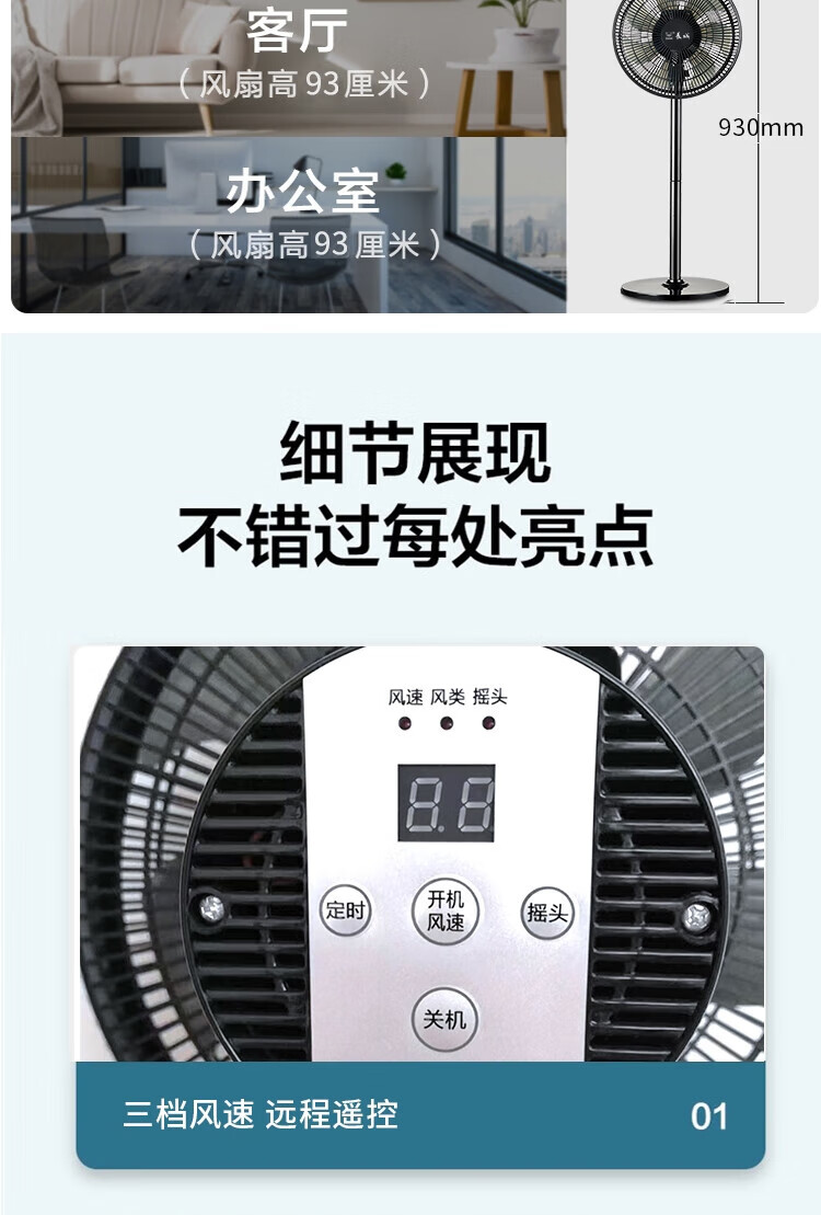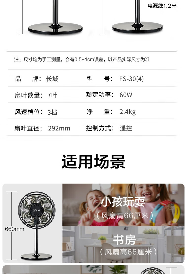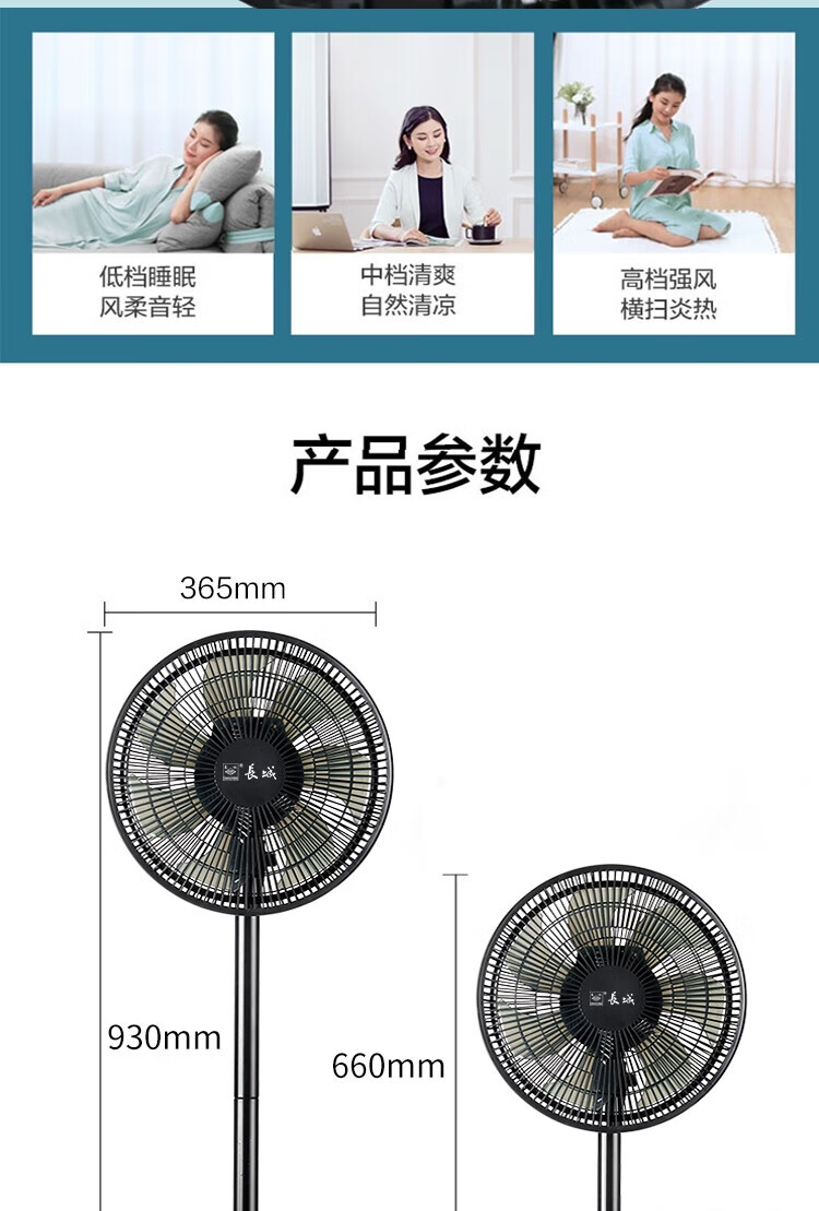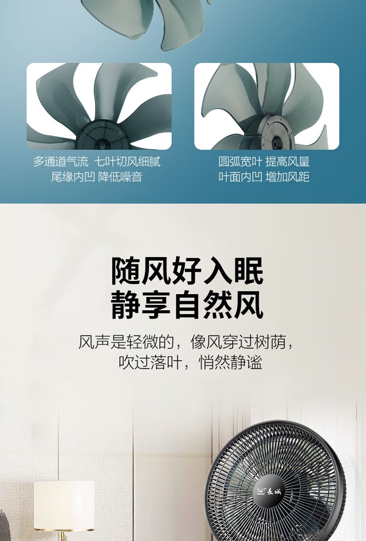 长城电风扇机械落地扇七叶台地两用风扇家用电扇大风量摇头扇风大音轻立式电扇 主推机械款FS-30(2)P白