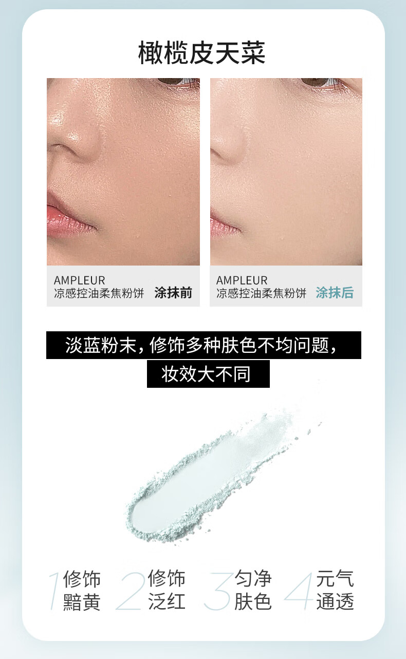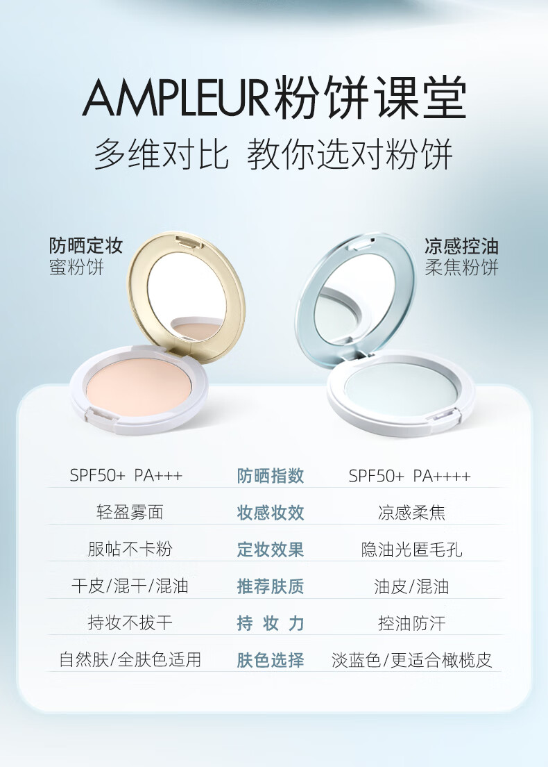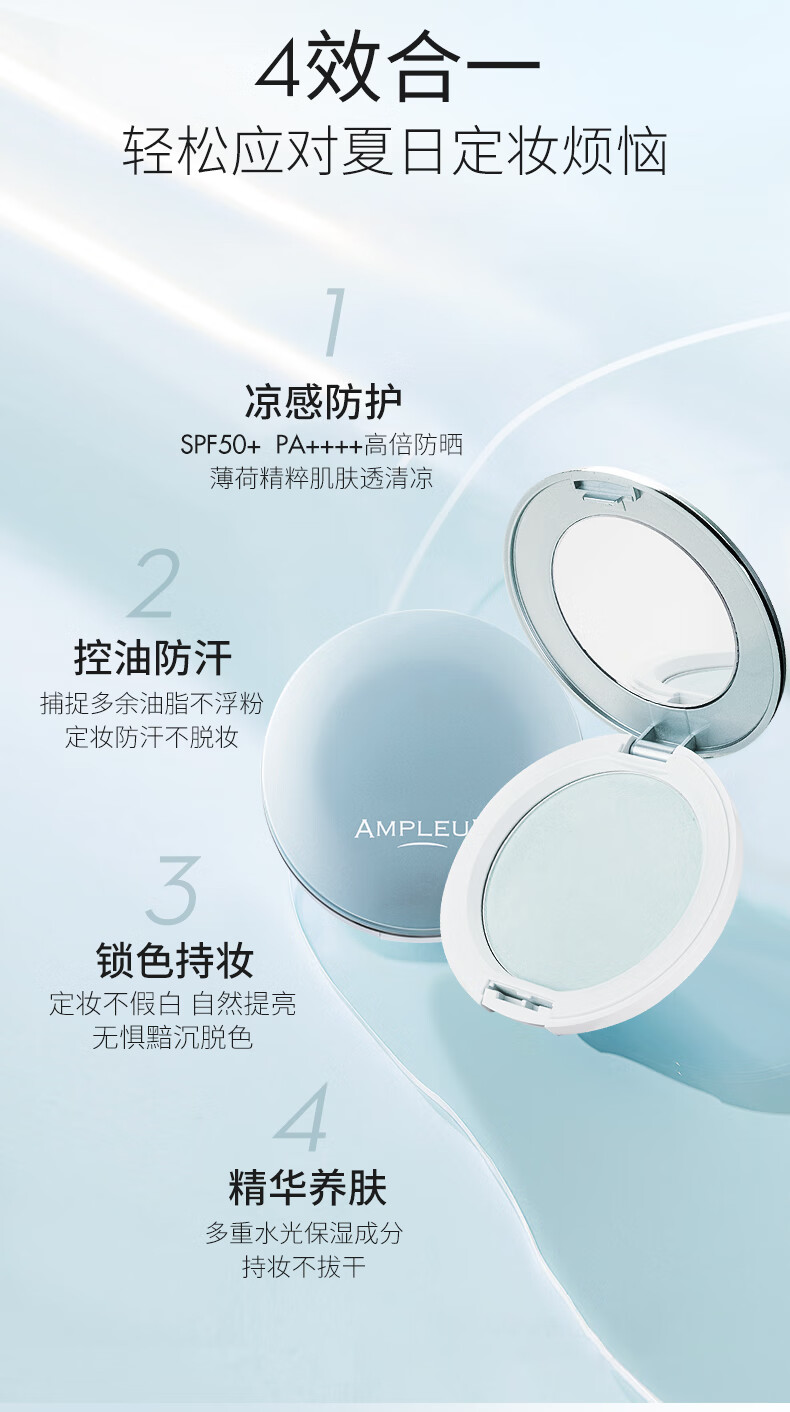 AMPLEUR女神节春夏出游换季必备出游定妆粉凉感控油柔焦蜜粉饼10g/盒