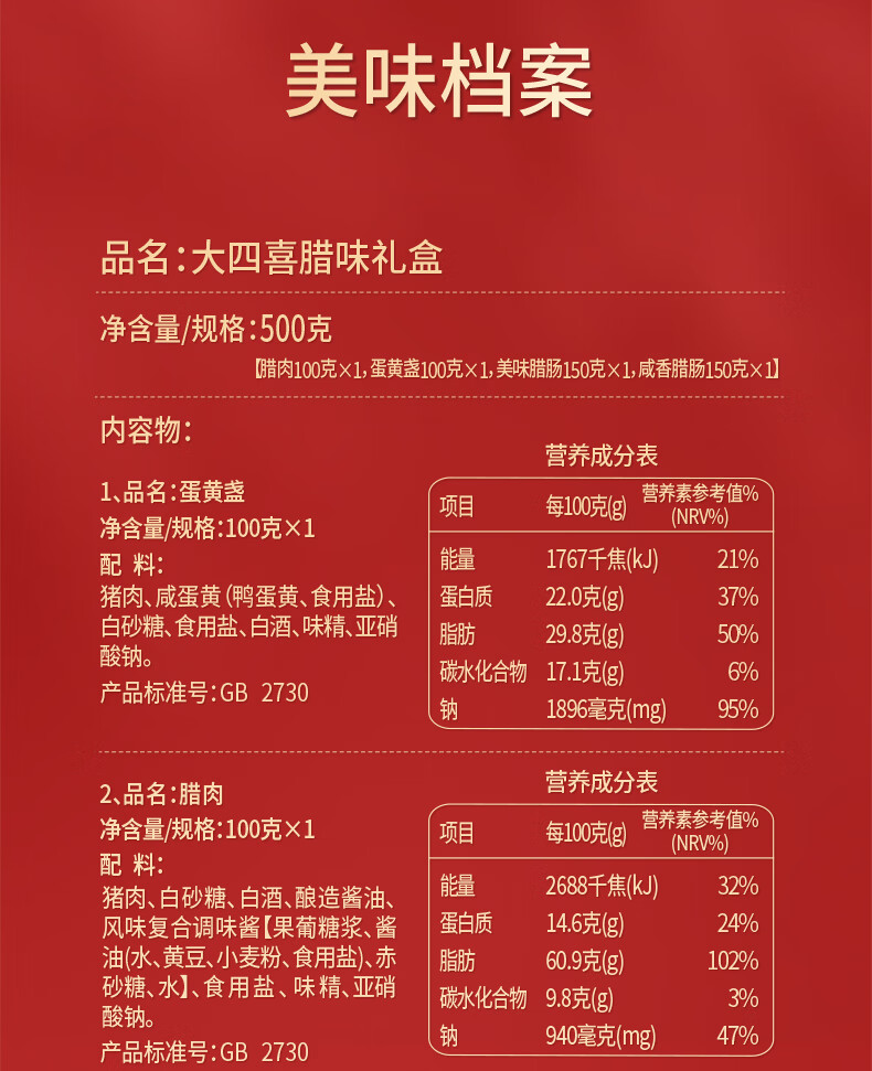 广州酒家大四喜腊味礼盒500g 广式腊肠凤凰盏腊肉熟食老字号团购年货送礼