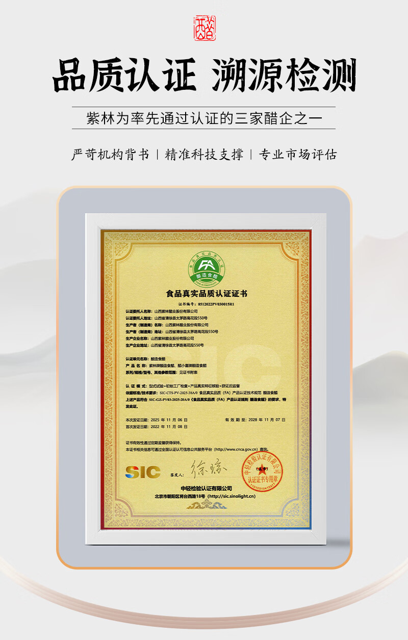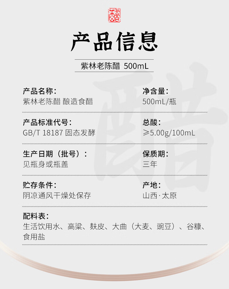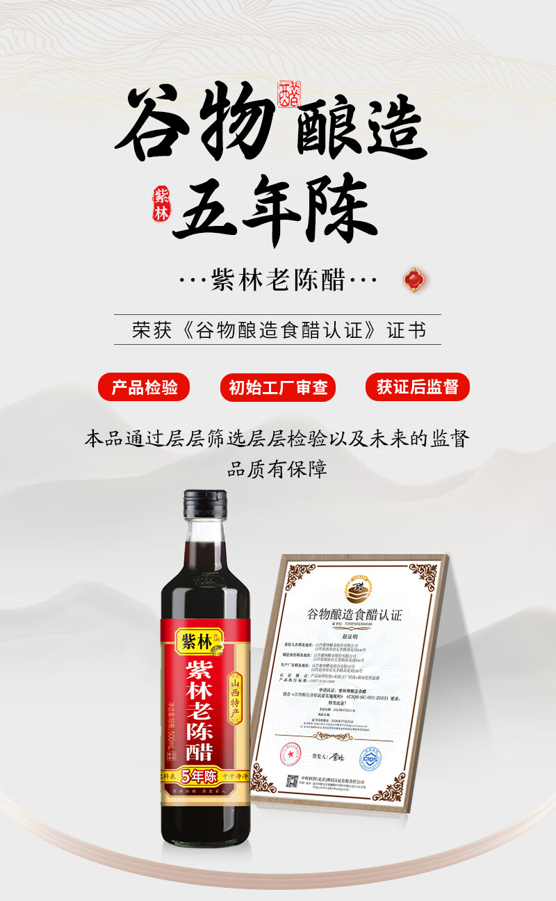 紫林 醋 5度老陈醋 500ml 5年陈酿 0添加防腐剂 纯粮酿造 山西特产