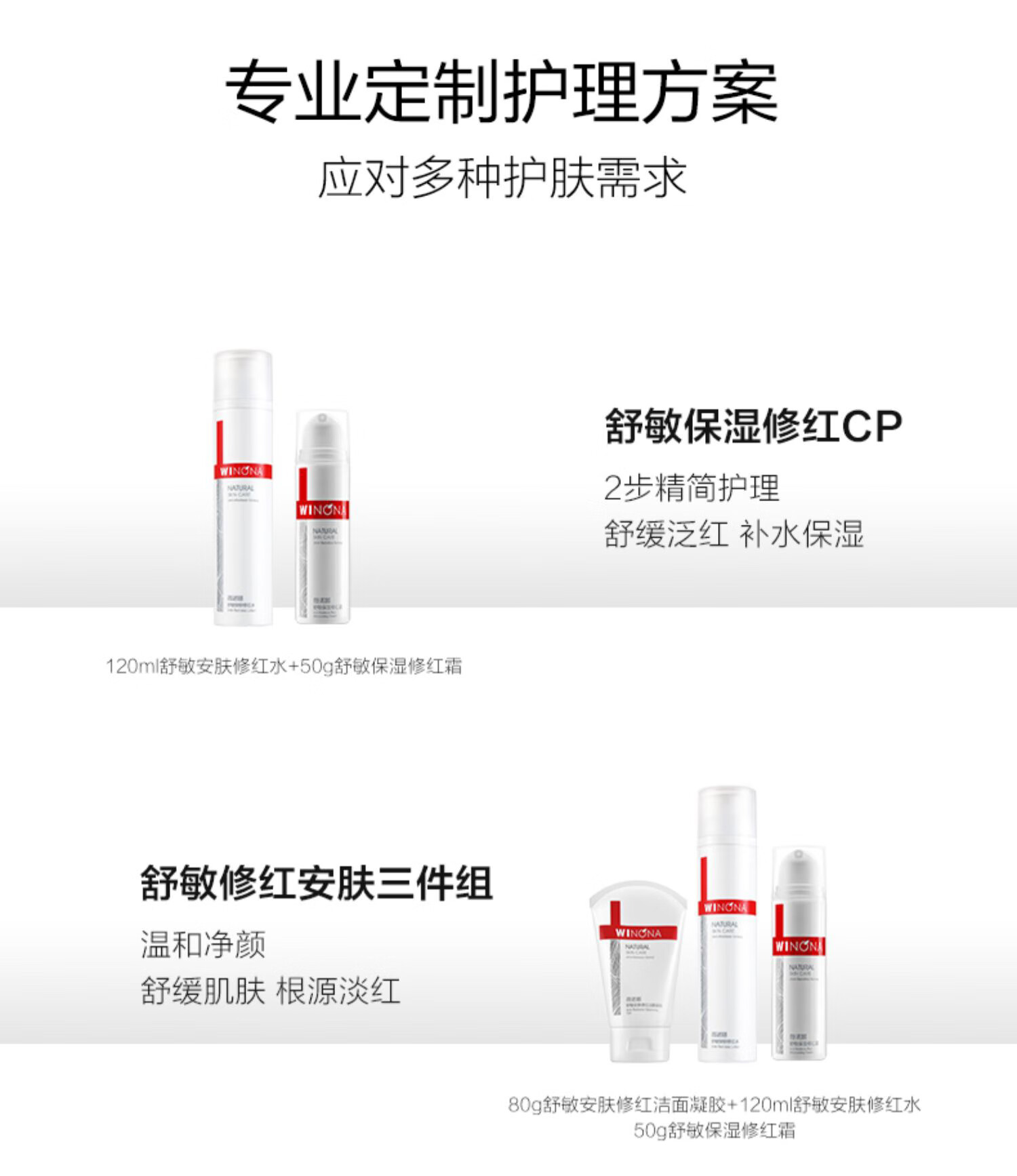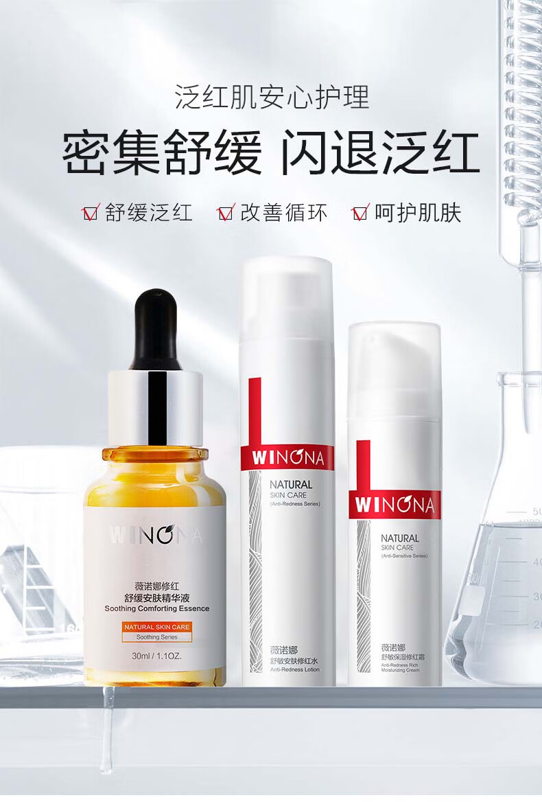 薇诺娜修红水乳精华套装爽肤水修红霜精华乳液面霜护肤品新年