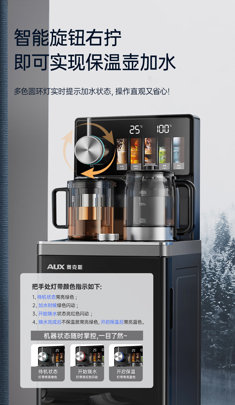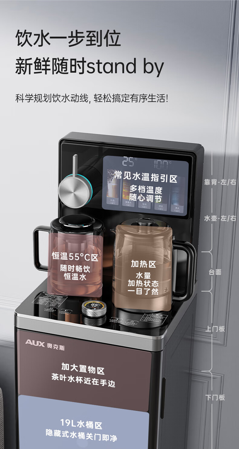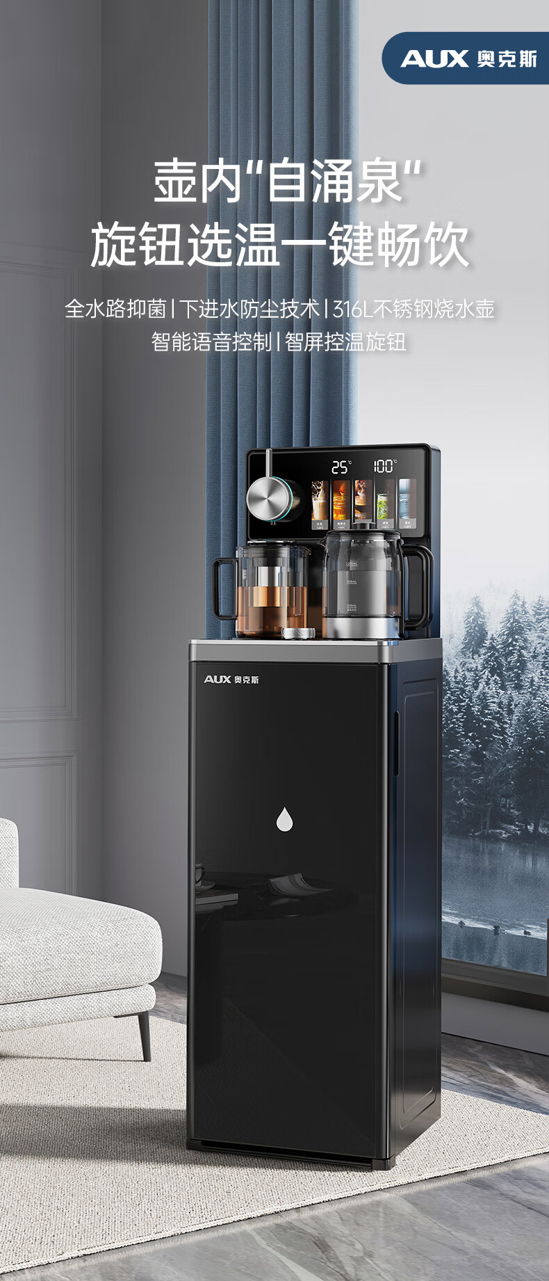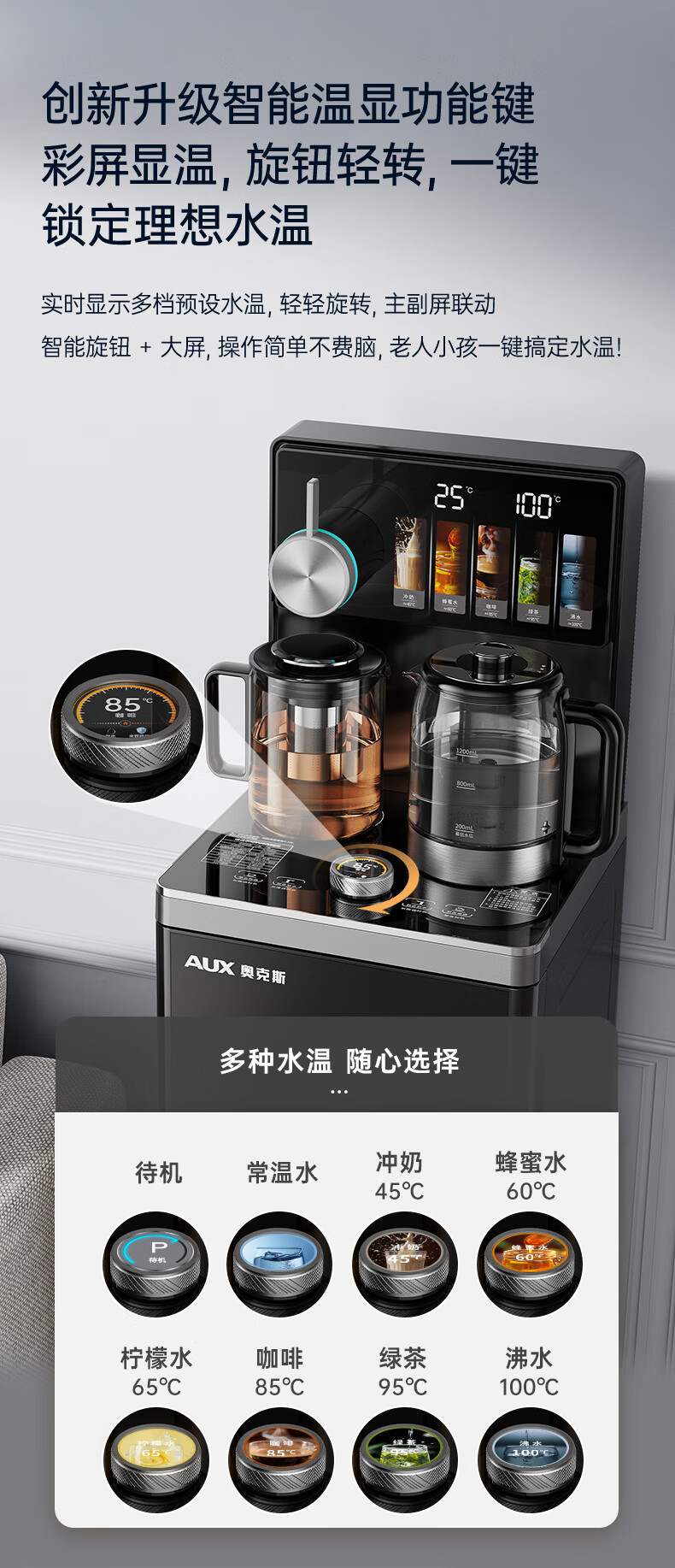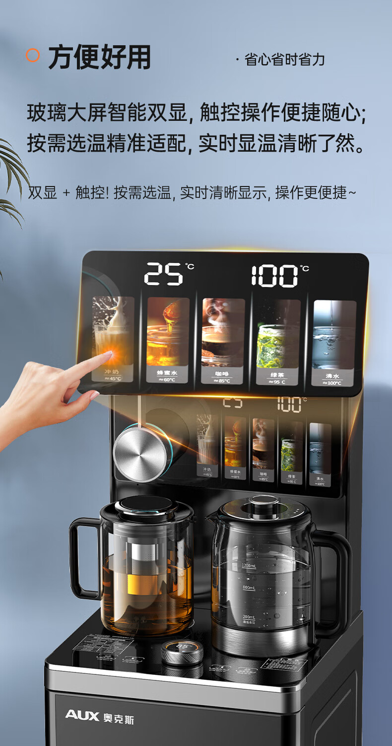 奥克斯茶吧机家用多功能抑菌遥控智能语音一键选温大屏触控立式下置式饮水机 316L蓝光烧水壶母婴专用款 旋钮一键选温丨防溢下进水 制热型