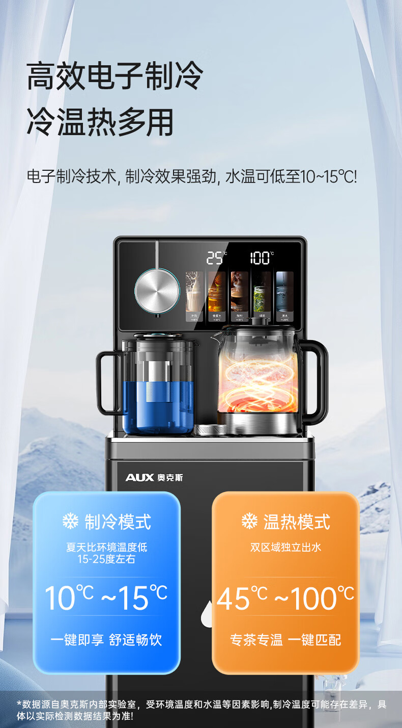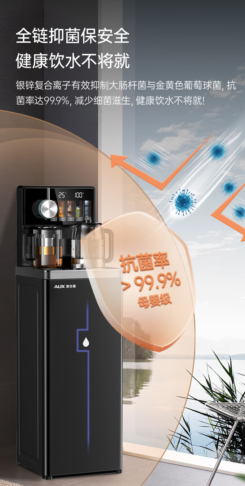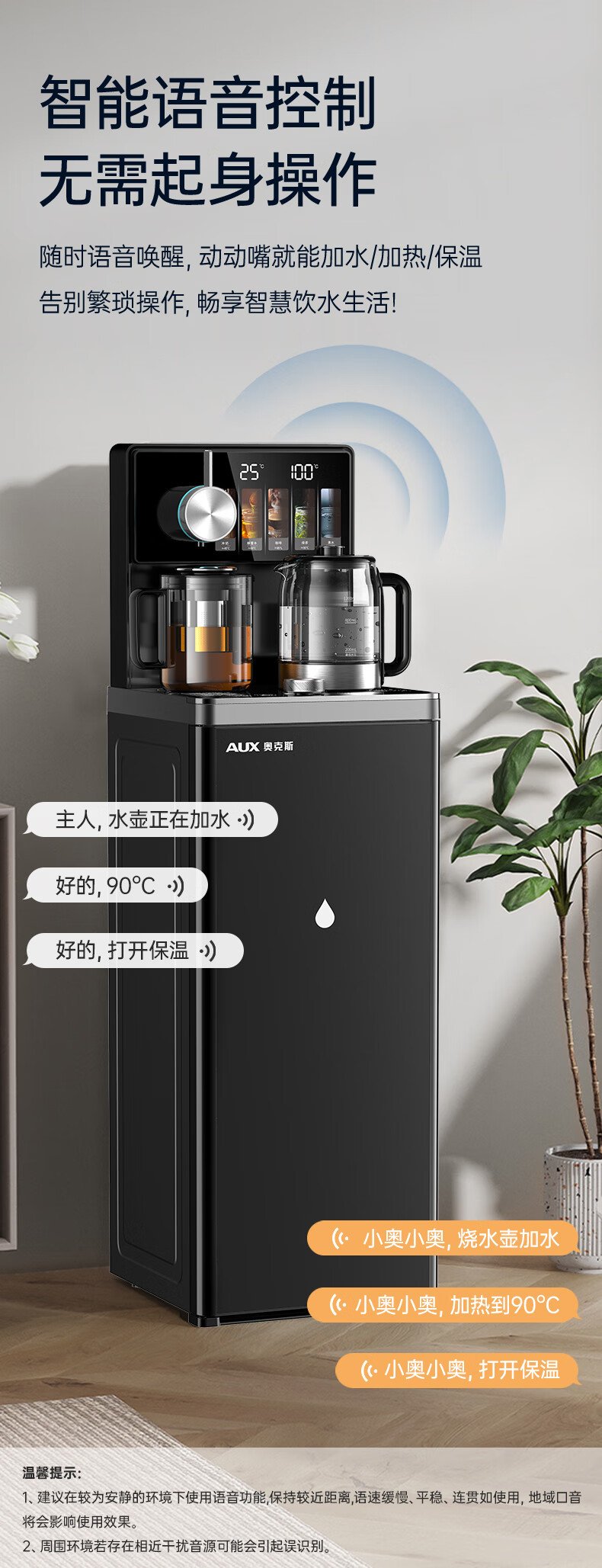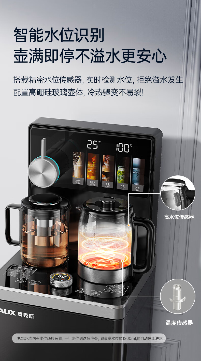 奥克斯茶吧机家用多功能抑菌遥控智能语音一键选温大屏触控立式下置式饮水机 316L蓝光烧水壶母婴专用款 旋钮一键选温丨防溢下进水 制热型
