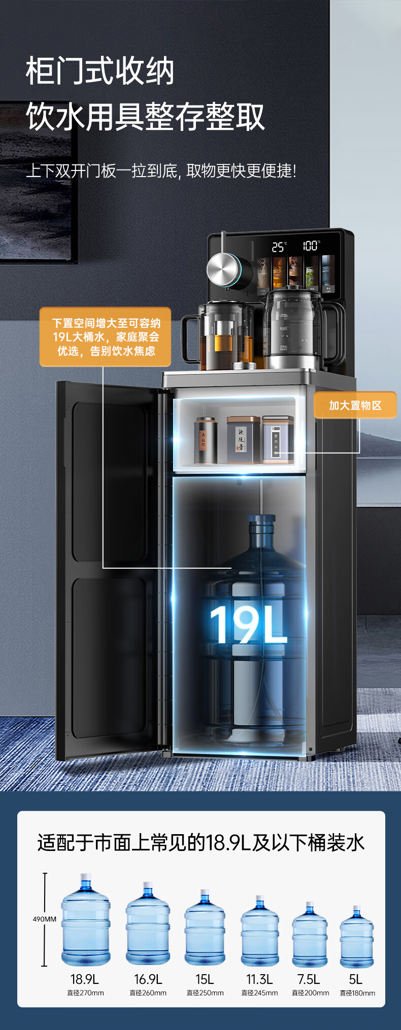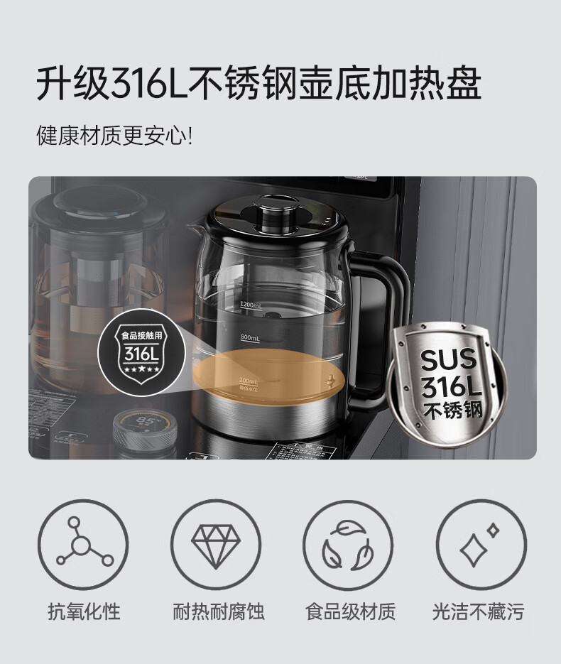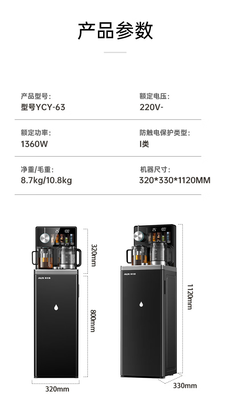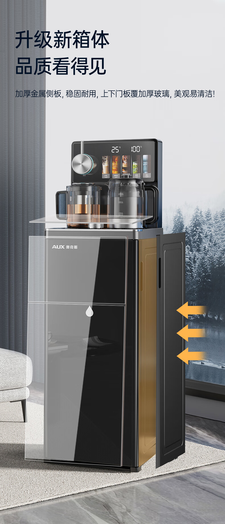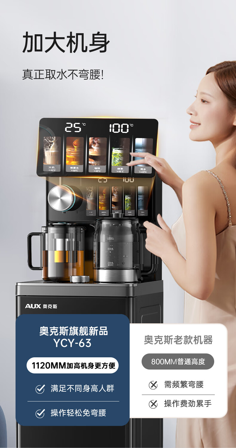 奥克斯茶吧机家用多功能抑菌遥控智能语音一键选温大屏触控立式下置式饮水机 316L蓝光烧水壶母婴专用款 旋钮一键选温丨防溢下进水 制热型