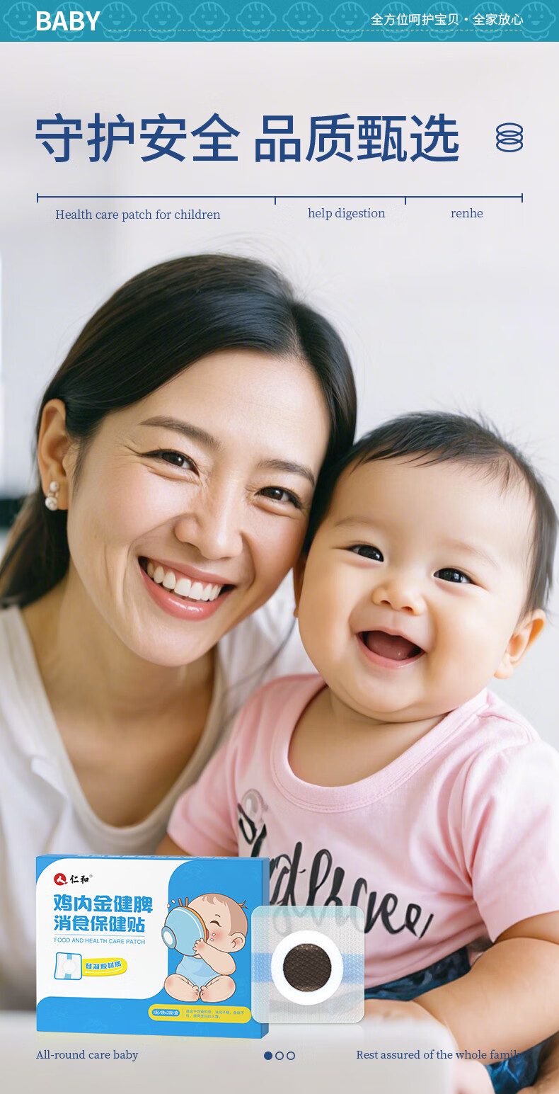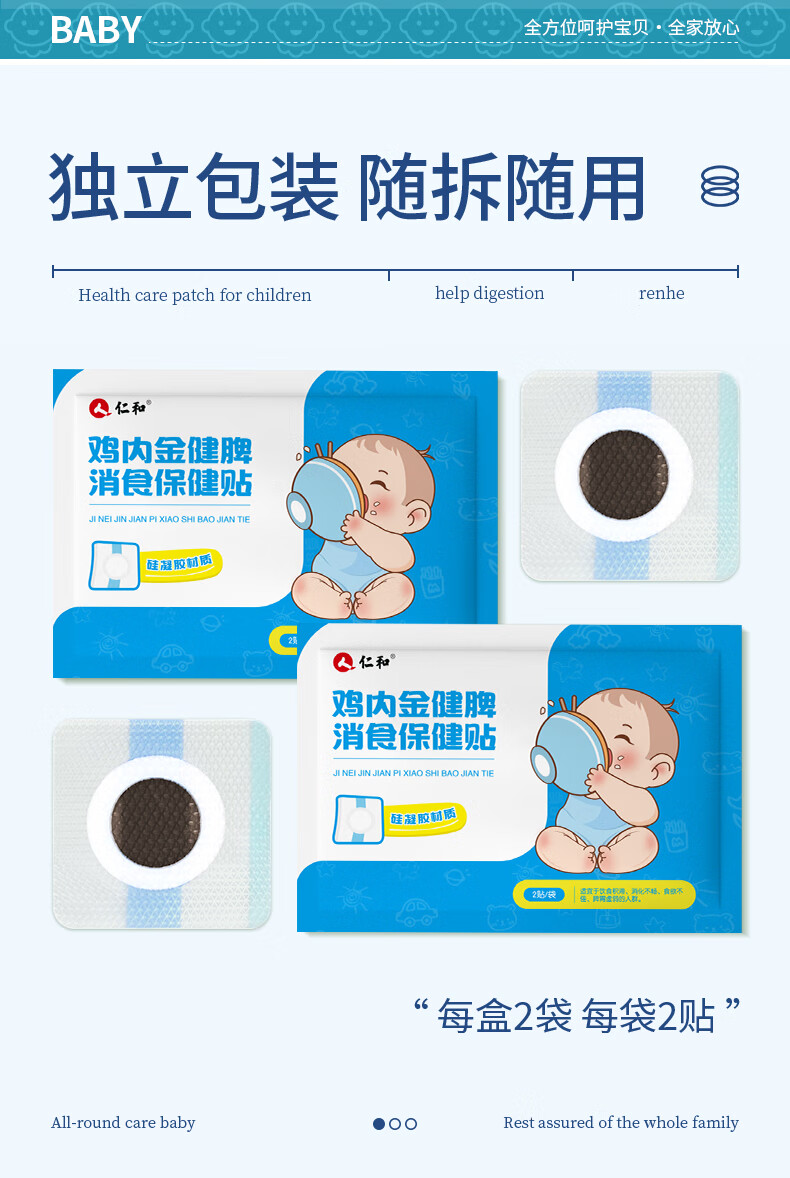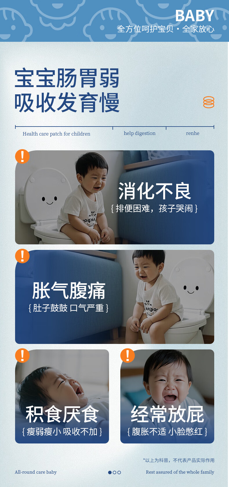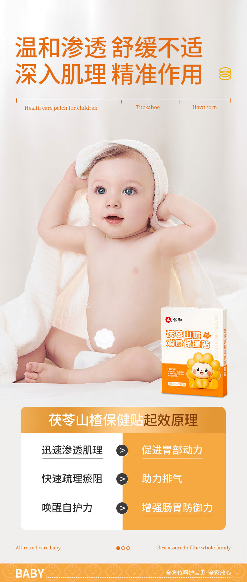 仁和婴儿胀气贴消食0-3个月硅凝胶亲肤易撕宝宝健脾开胃穴位肚脐贴 经典胀气贴【8贴+2贴】