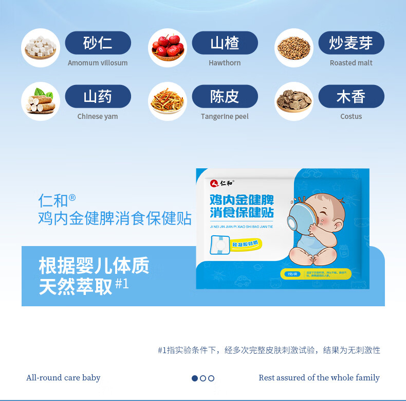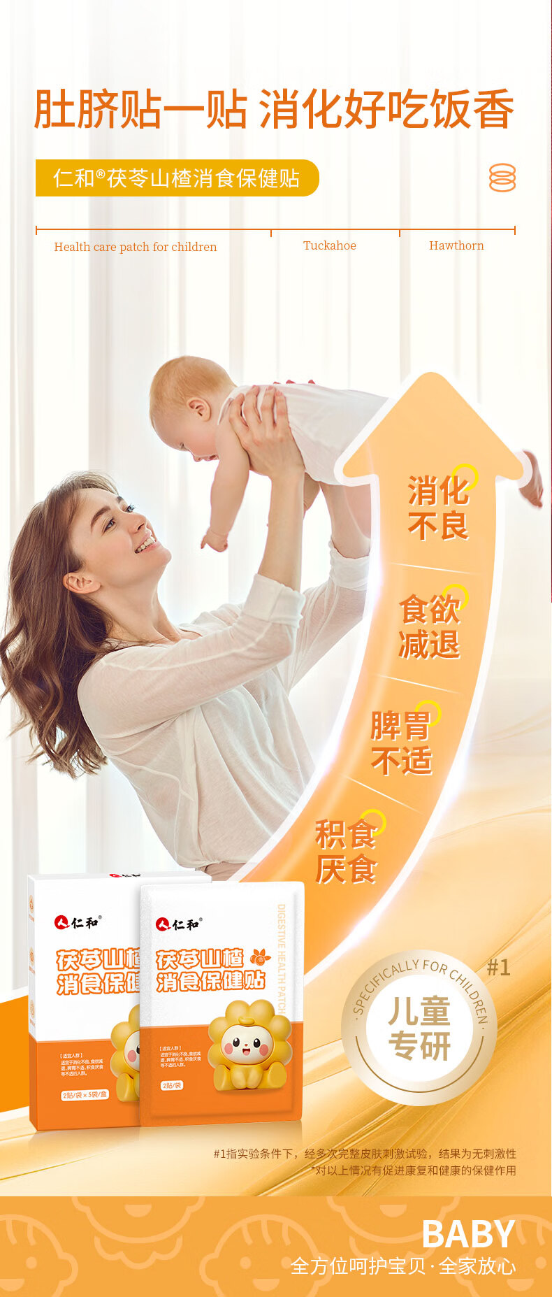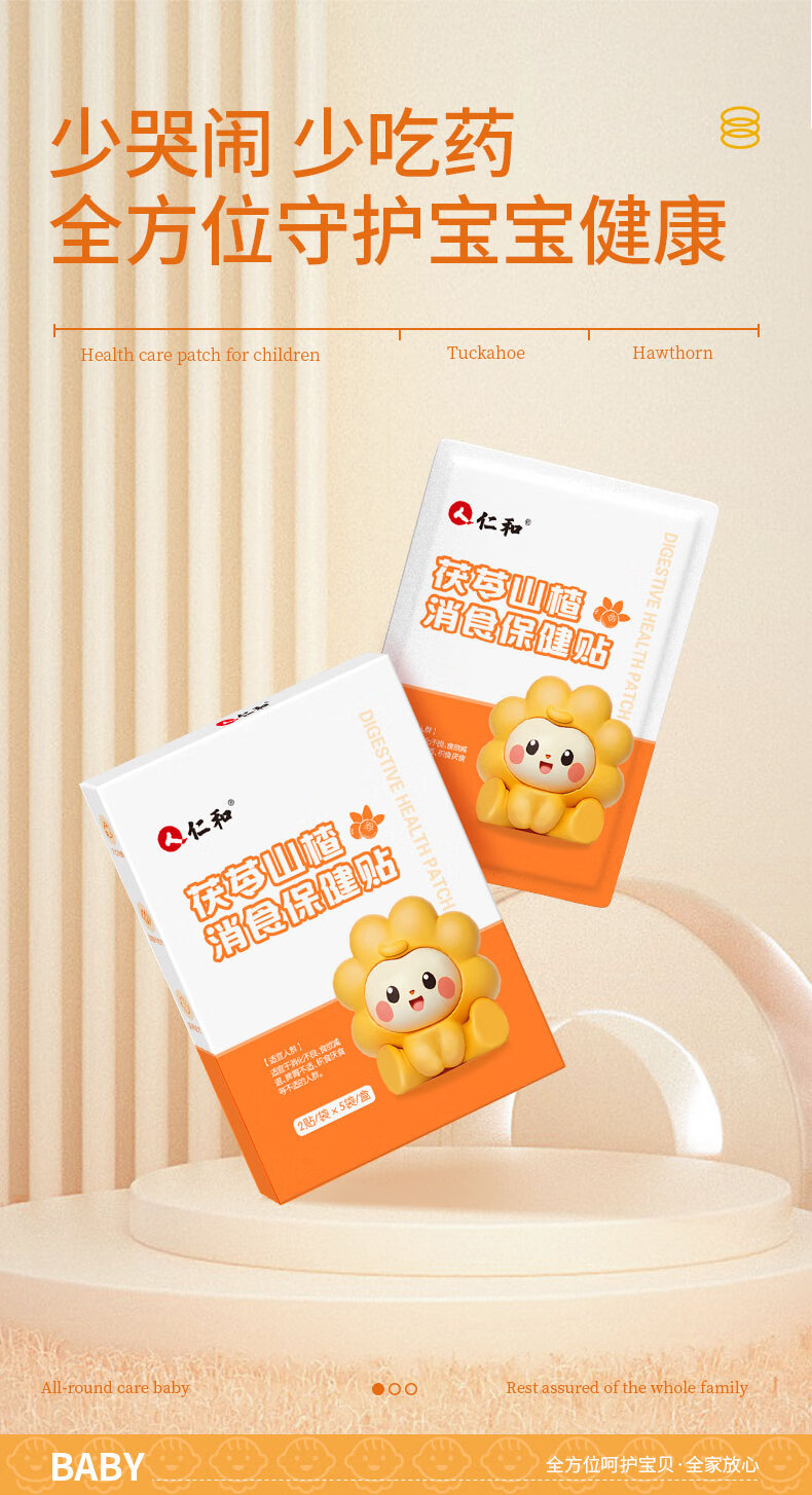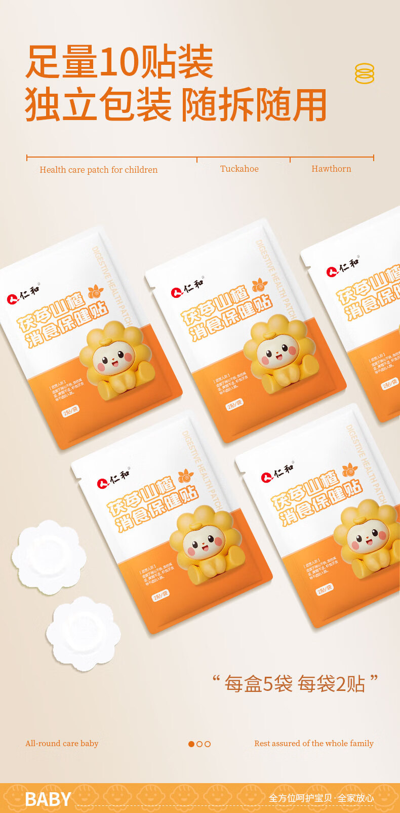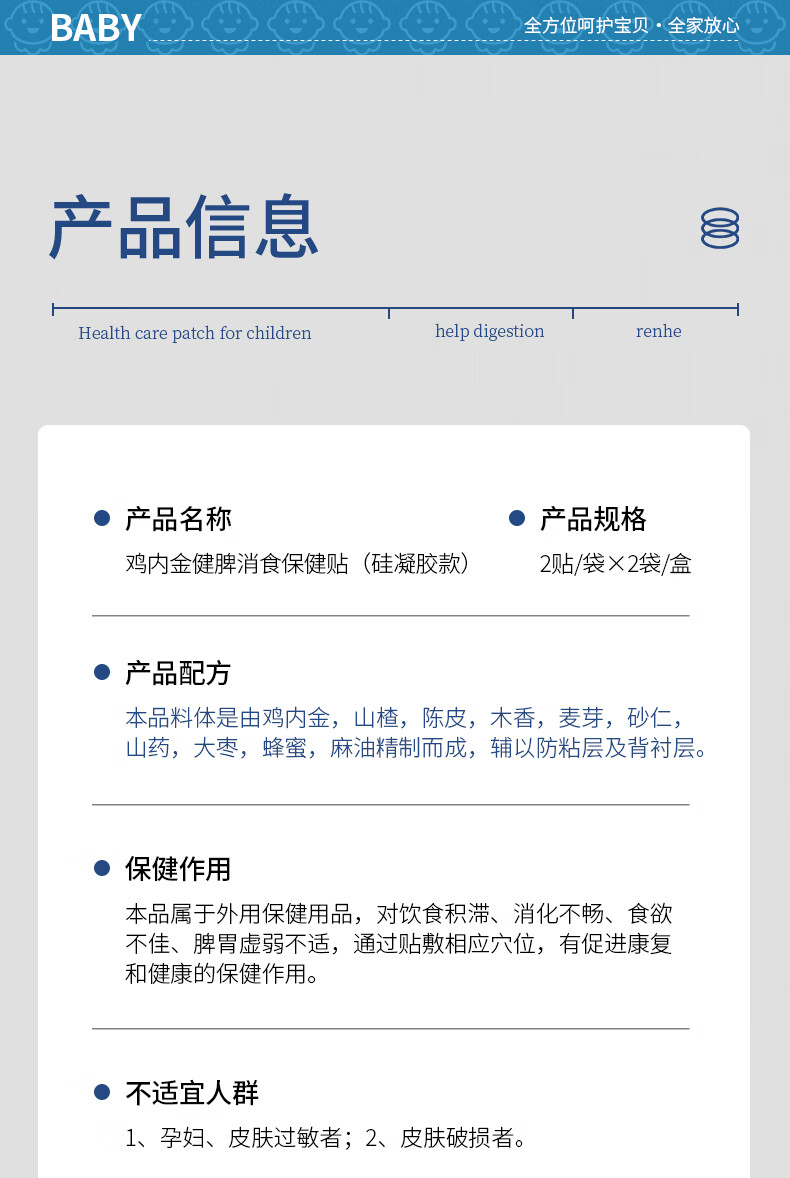仁和婴儿胀气贴消食0-3个月硅凝胶亲肤易撕宝宝健脾开胃穴位肚脐贴 经典胀气贴【8贴+2贴】