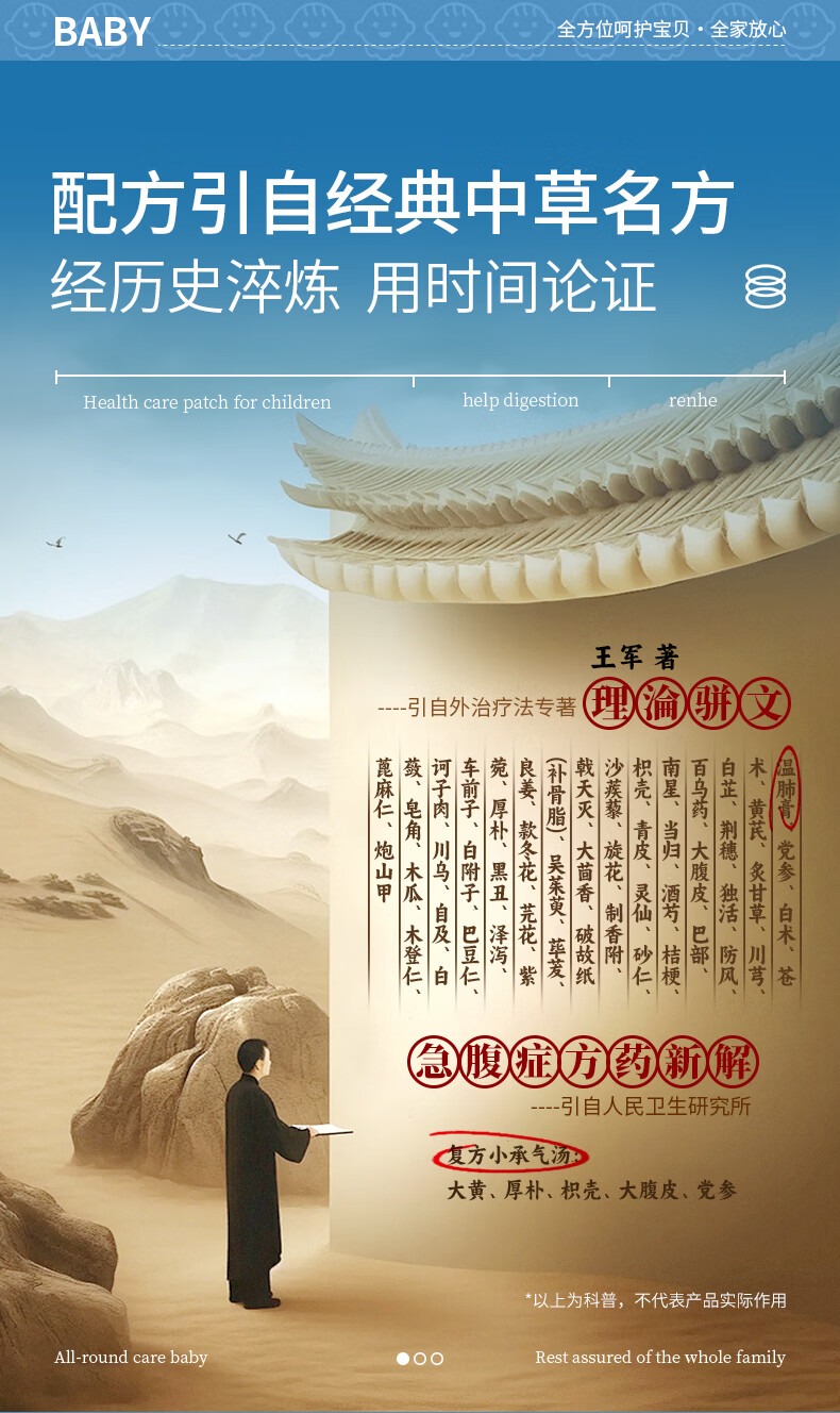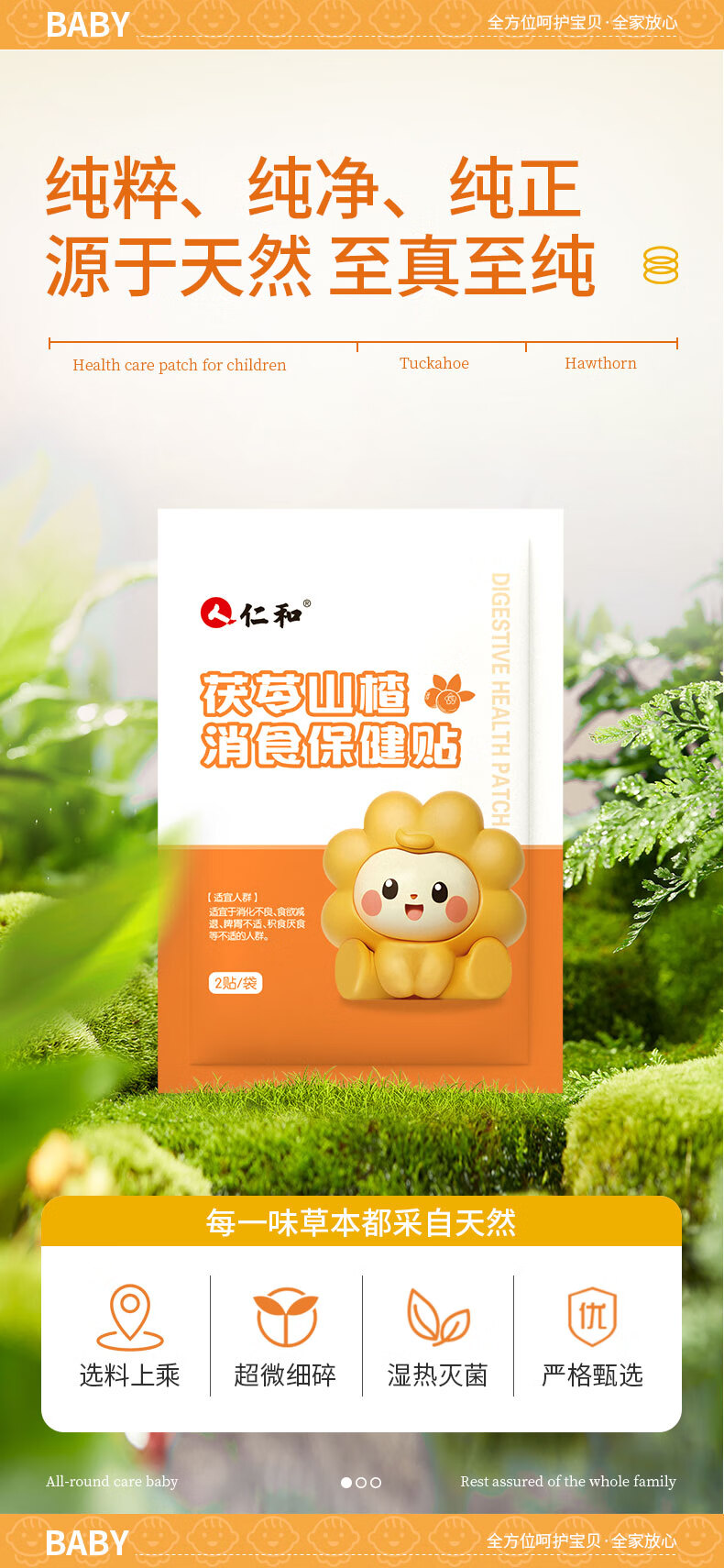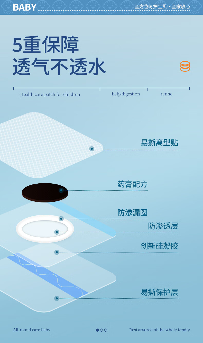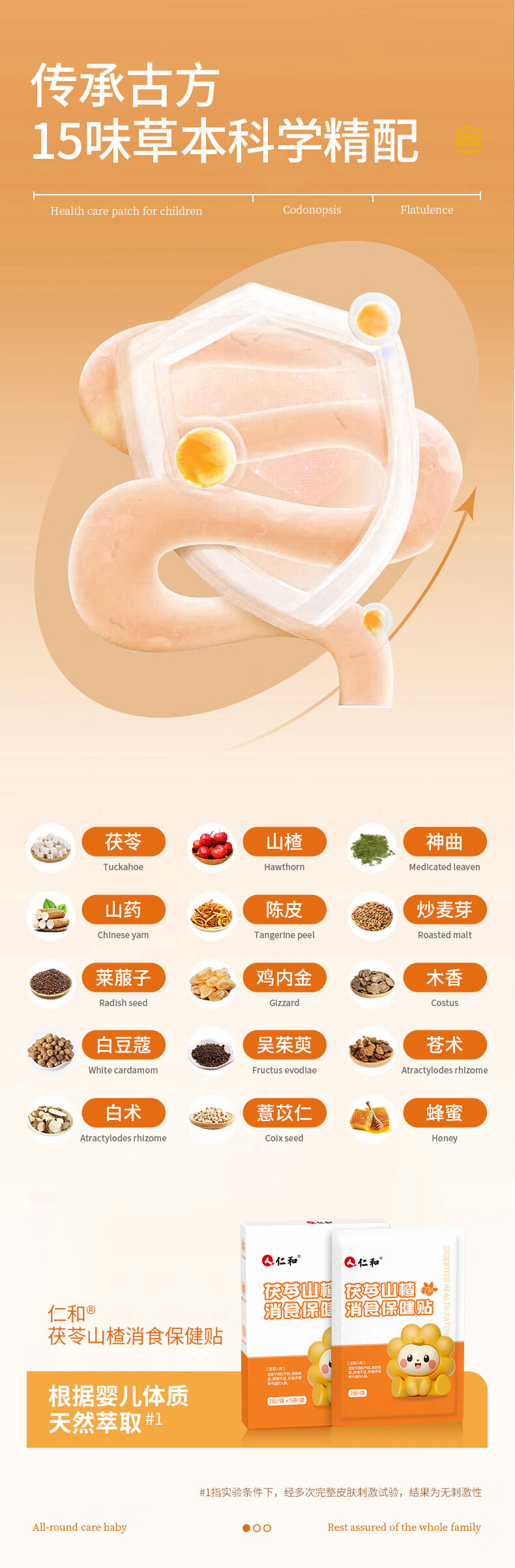 仁和婴儿胀气贴消食0-3个月硅凝胶亲肤易撕宝宝健脾开胃穴位肚脐贴 经典胀气贴【8贴+2贴】