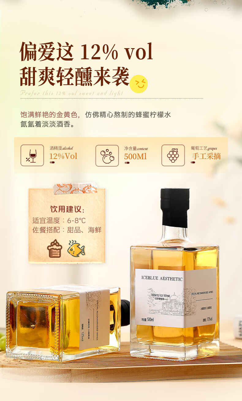 露颂【爆汁柠檬】冰白葡萄酒微醺少女甜酒晚安果酒礼盒送礼 晚收冰白375ml单支