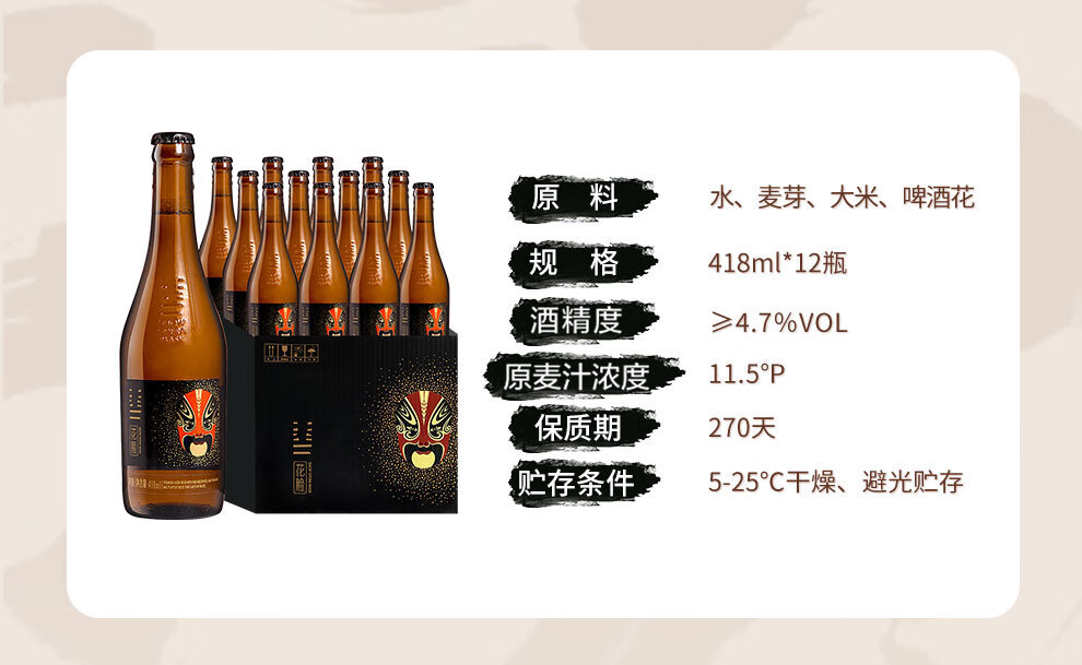 雪花啤酒(Snowbeer)脸谱花脸 418ml*12瓶 高端精酿京东自营新年送礼