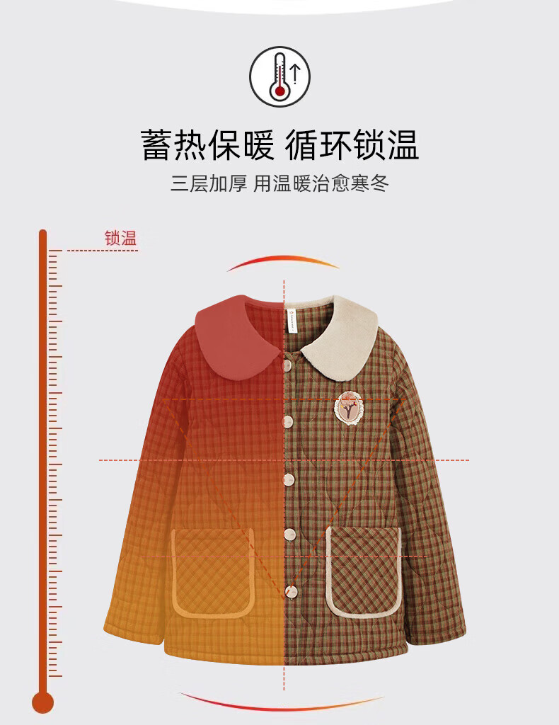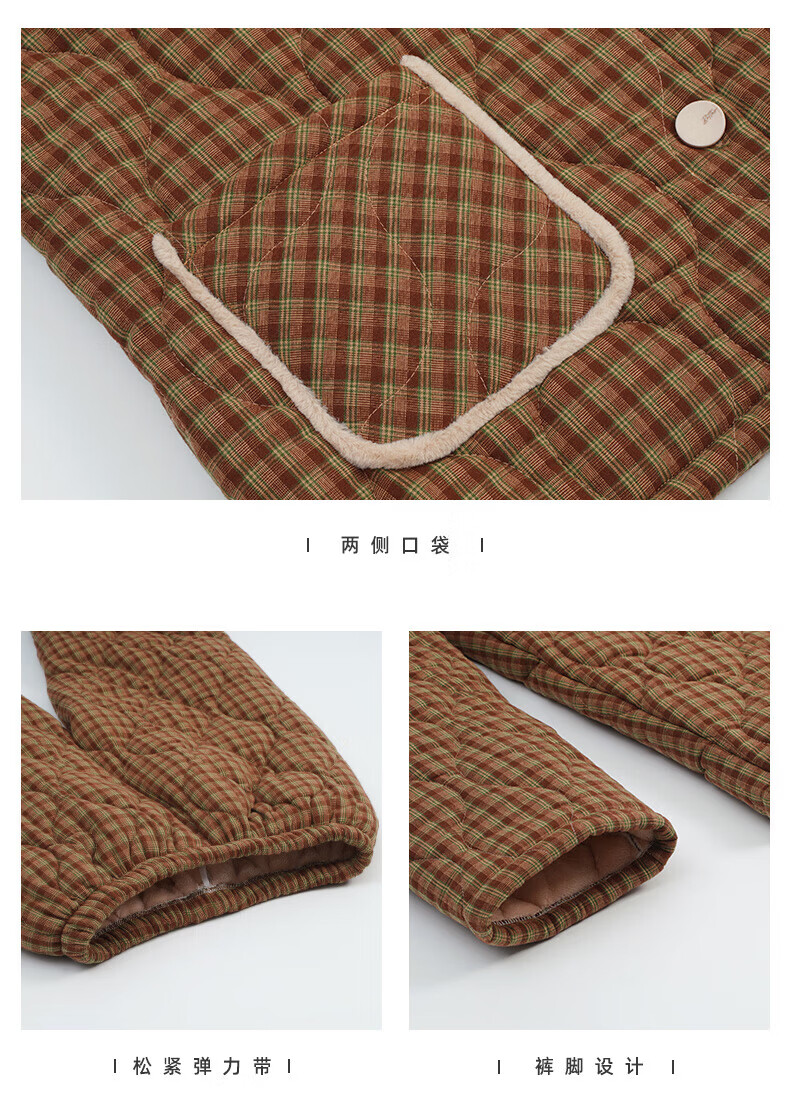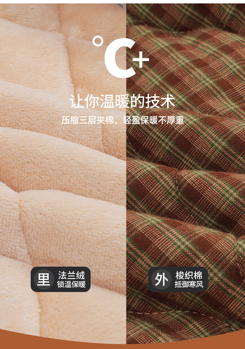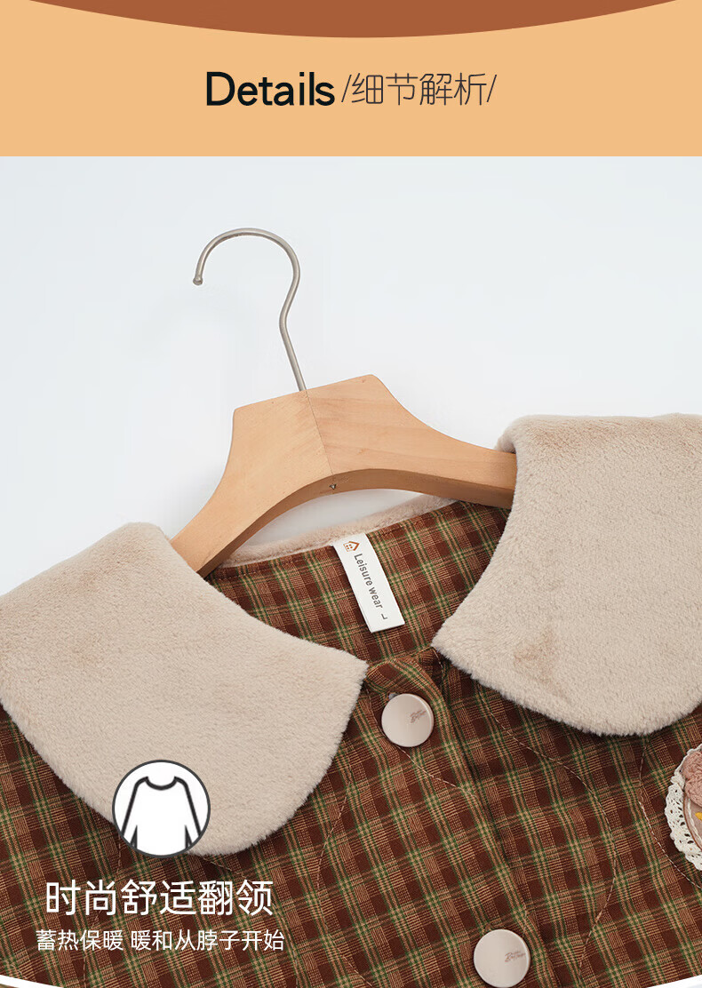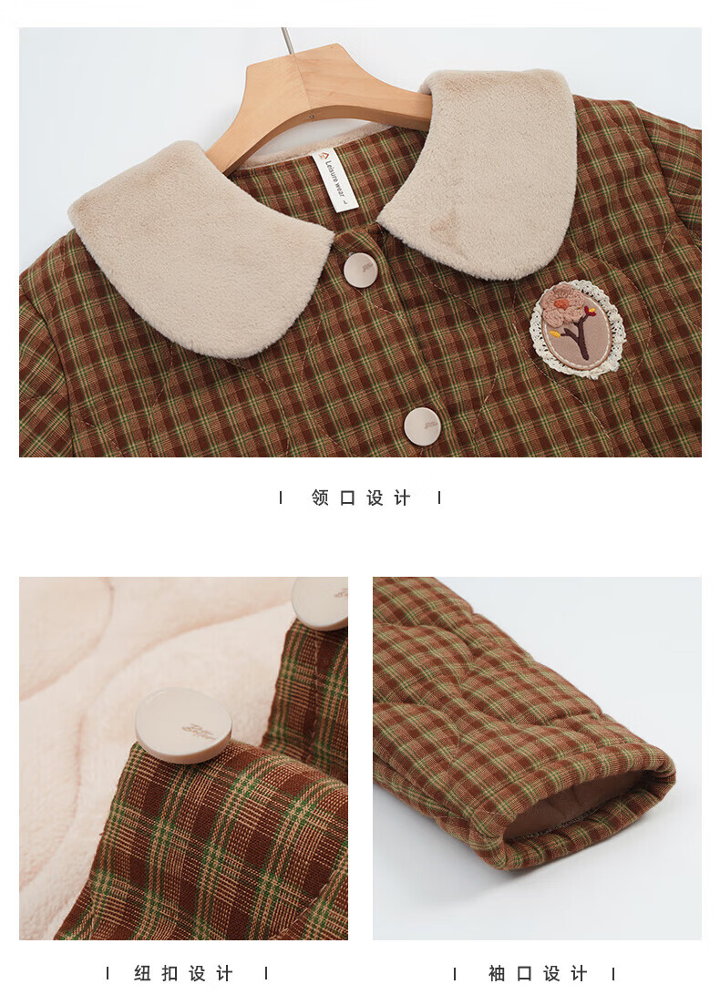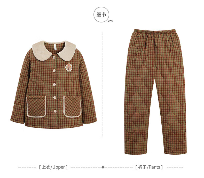 允织睡衣女冬季三层加厚加绒梭织纯棉夹棉袄秋冬款珊瑚绒高级感家居服 68020-浅褐 M (160) :建议90-110斤穿着