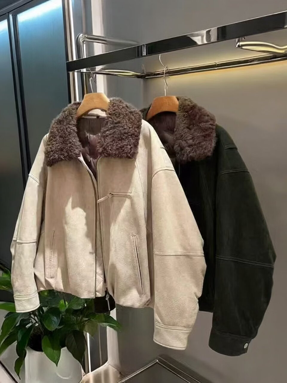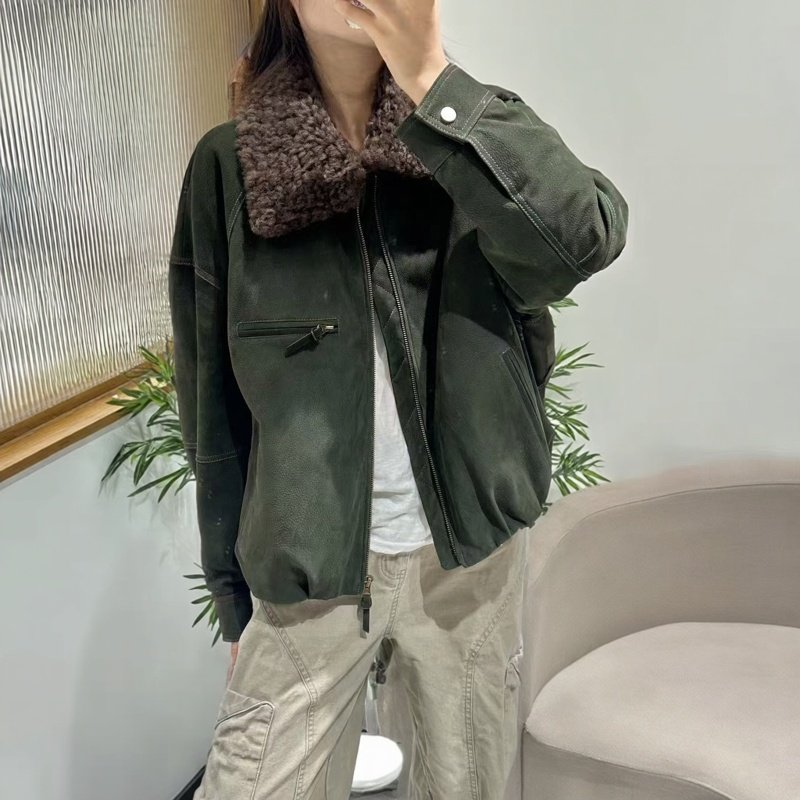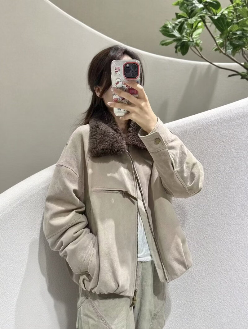 MODX欧货 2026冬鹿绒面工艺山羊正绒真皮夹克加厚鹅绒皮衣7737 卡其 真皮不可沾水不能擦 L 真皮不能沾水不能擦