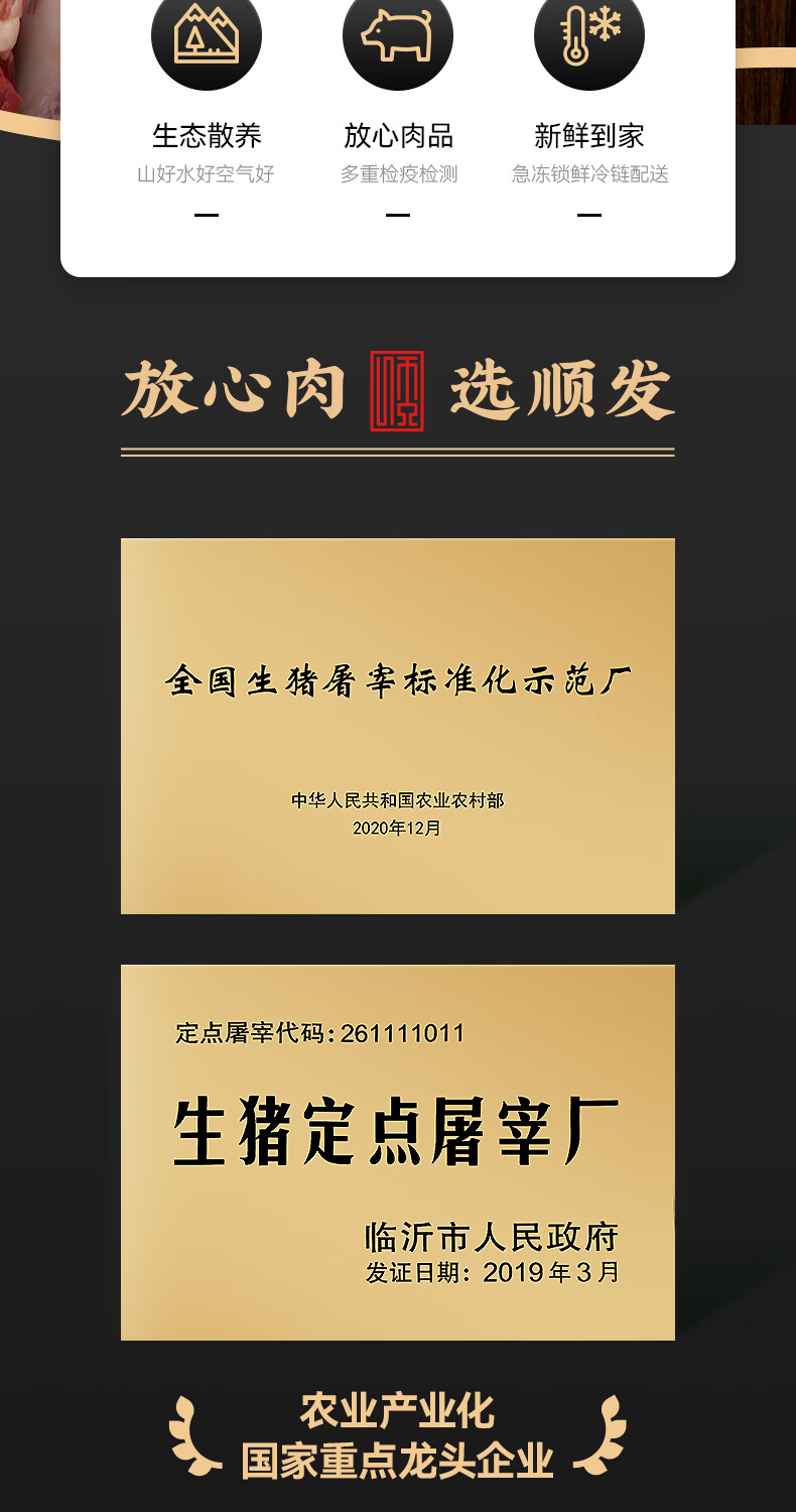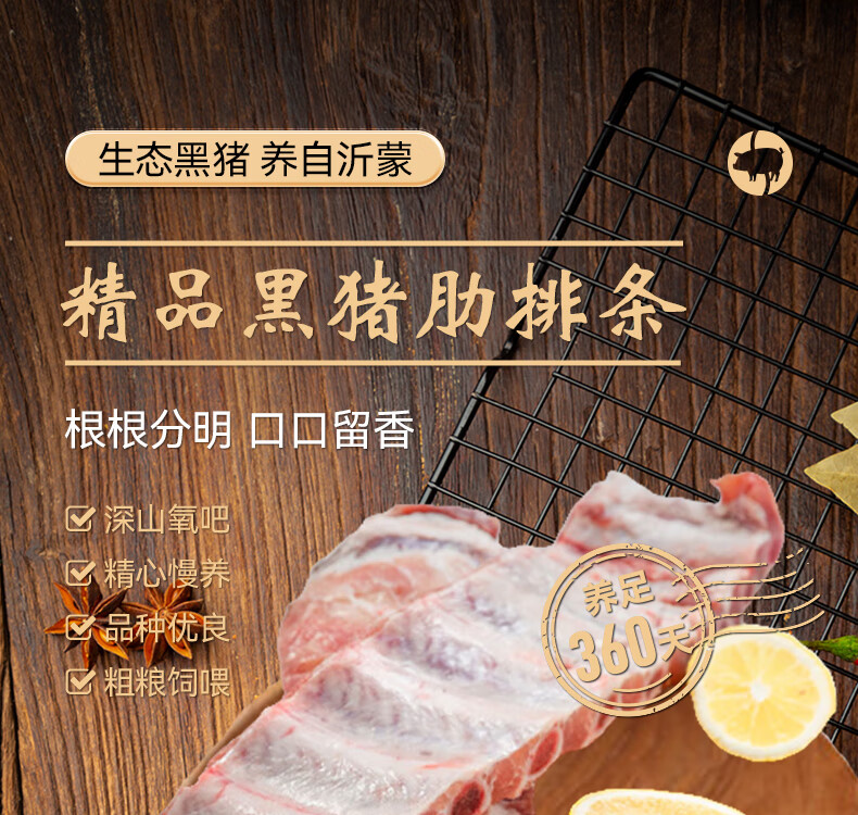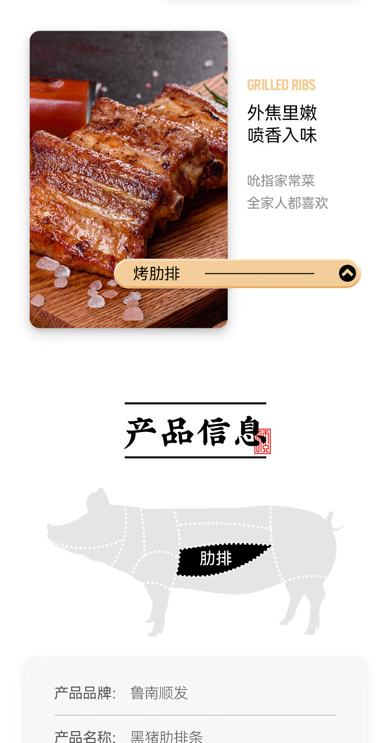鲁南顺发沂蒙山黑猪肋排块 2斤 慢养360天 肋排烤肉