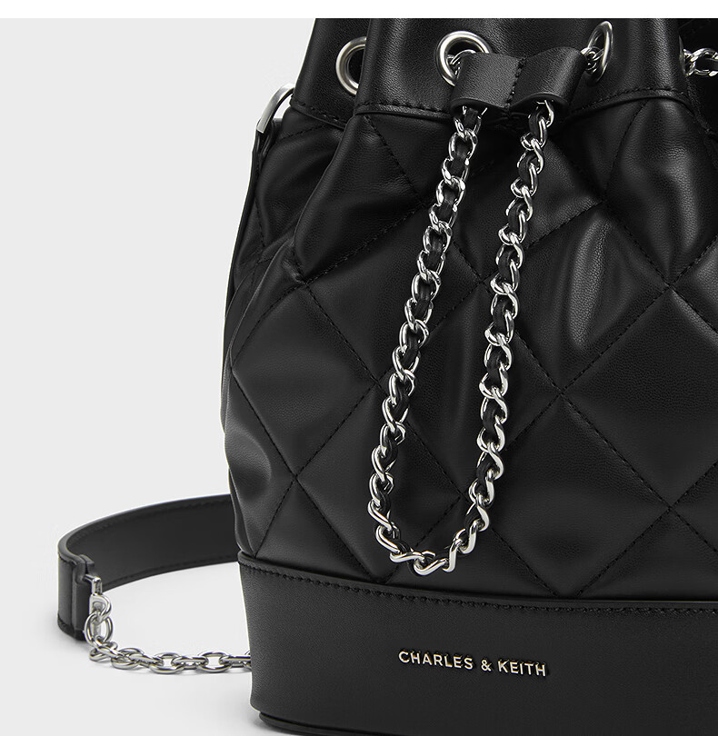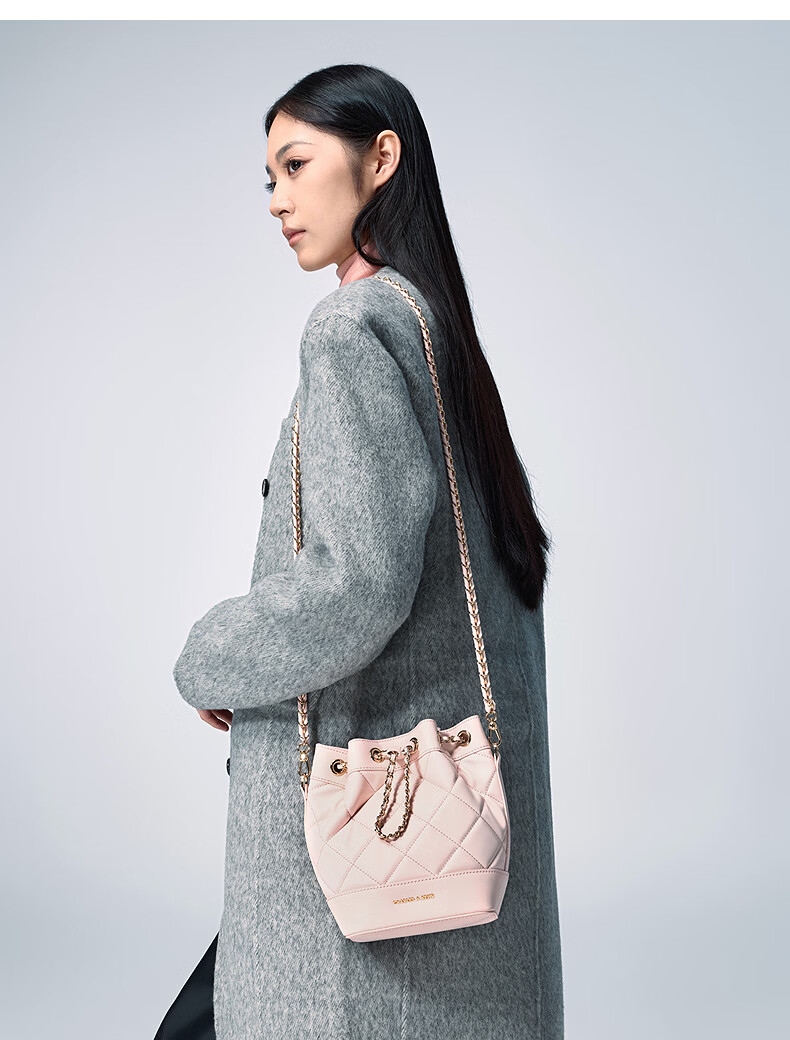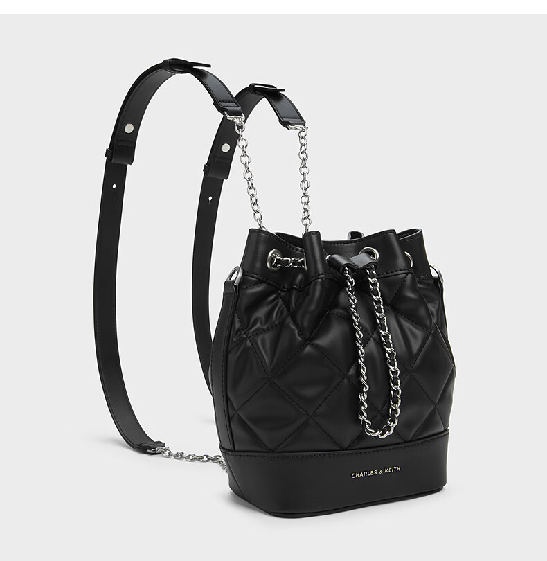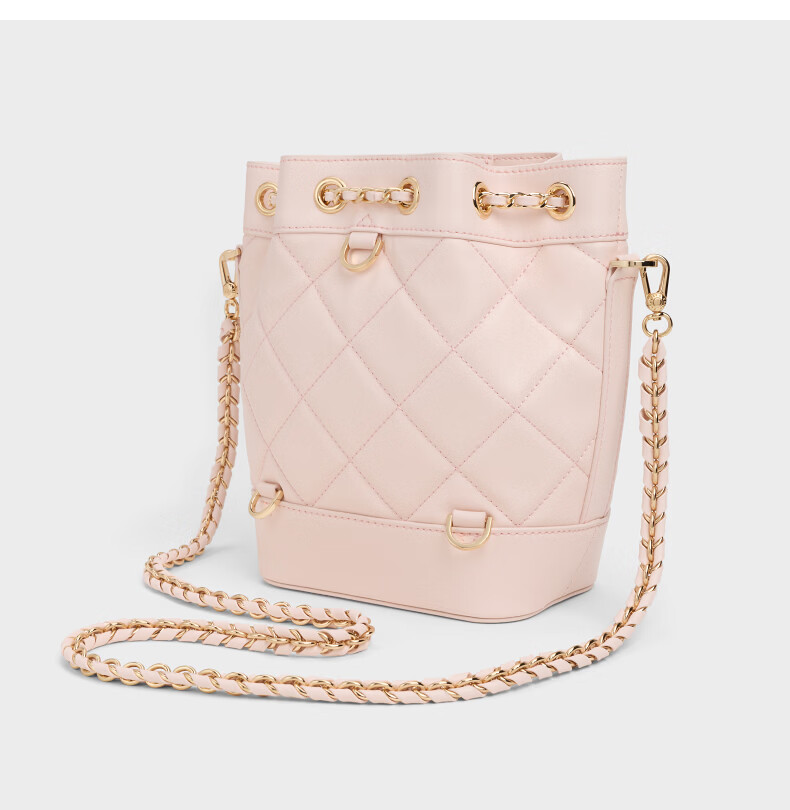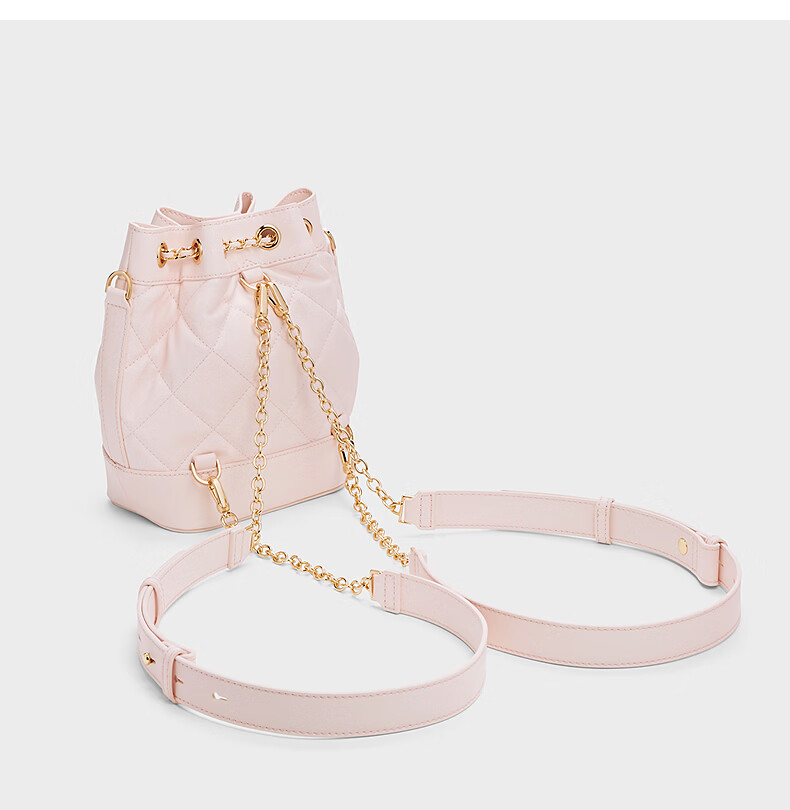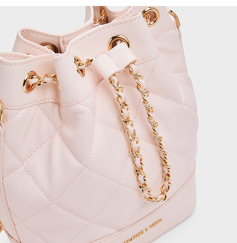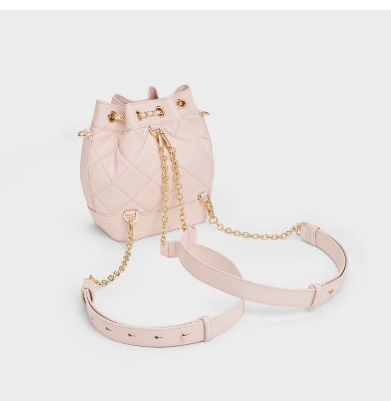 CHARLES&KEITH绗缝菱格链条水桶包双肩包包女包女友生日女神节礼物CK2-10701506 Light Pink浅粉色 M