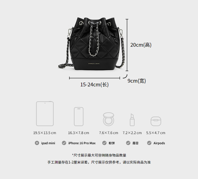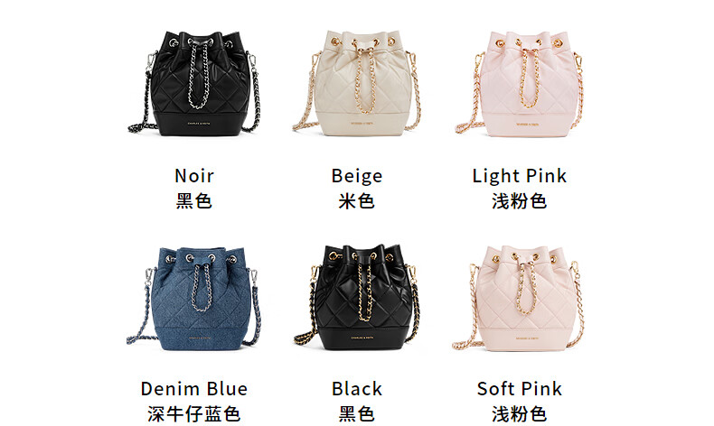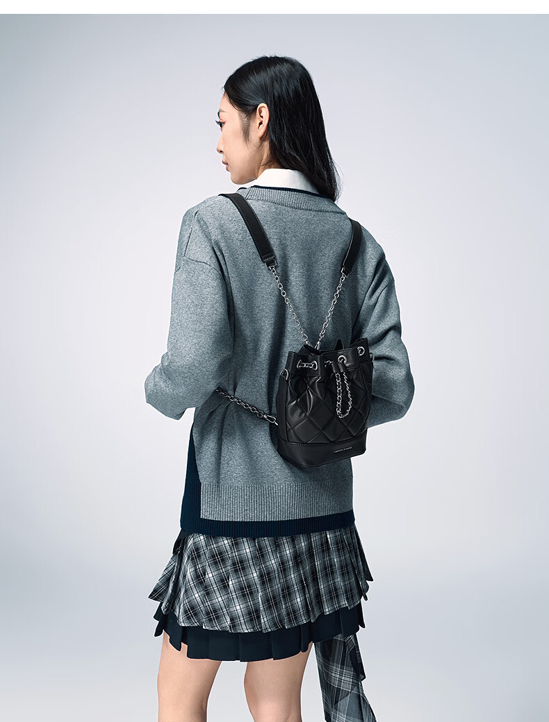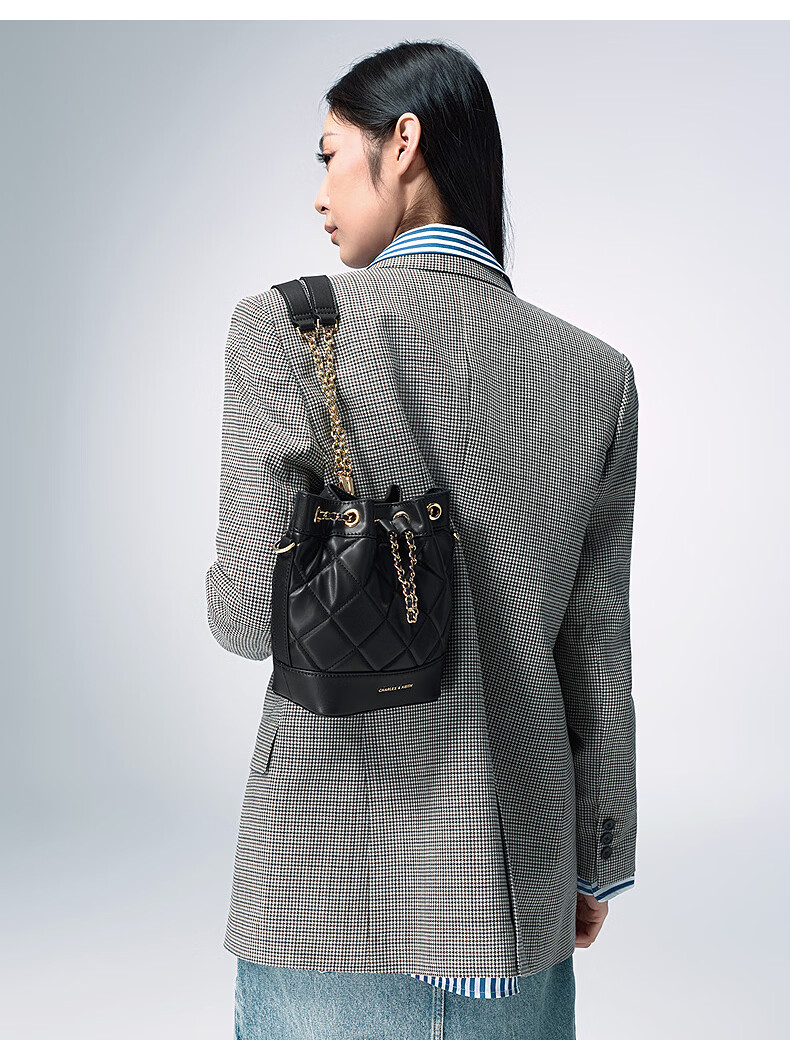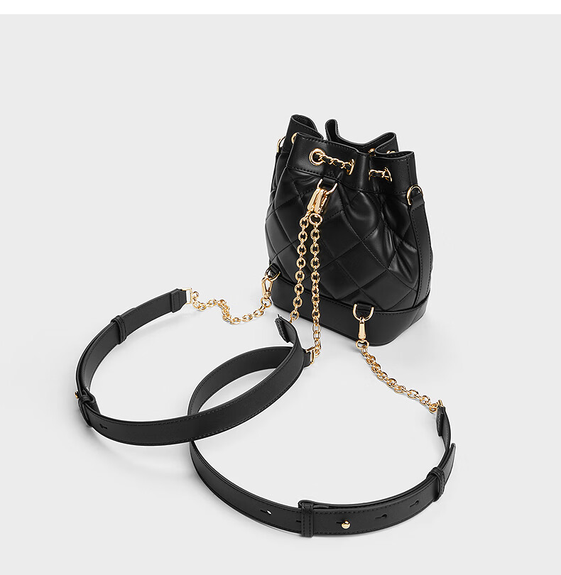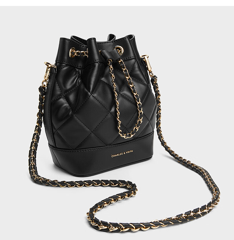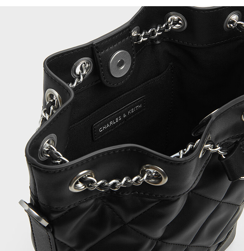 CHARLES&KEITH绗缝菱格链条水桶包双肩包包女包女友生日女神节礼物CK2-10701506 Light Pink浅粉色 M