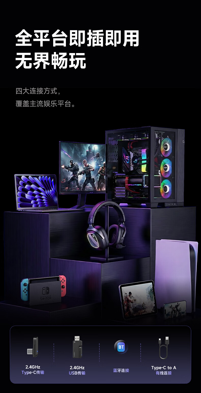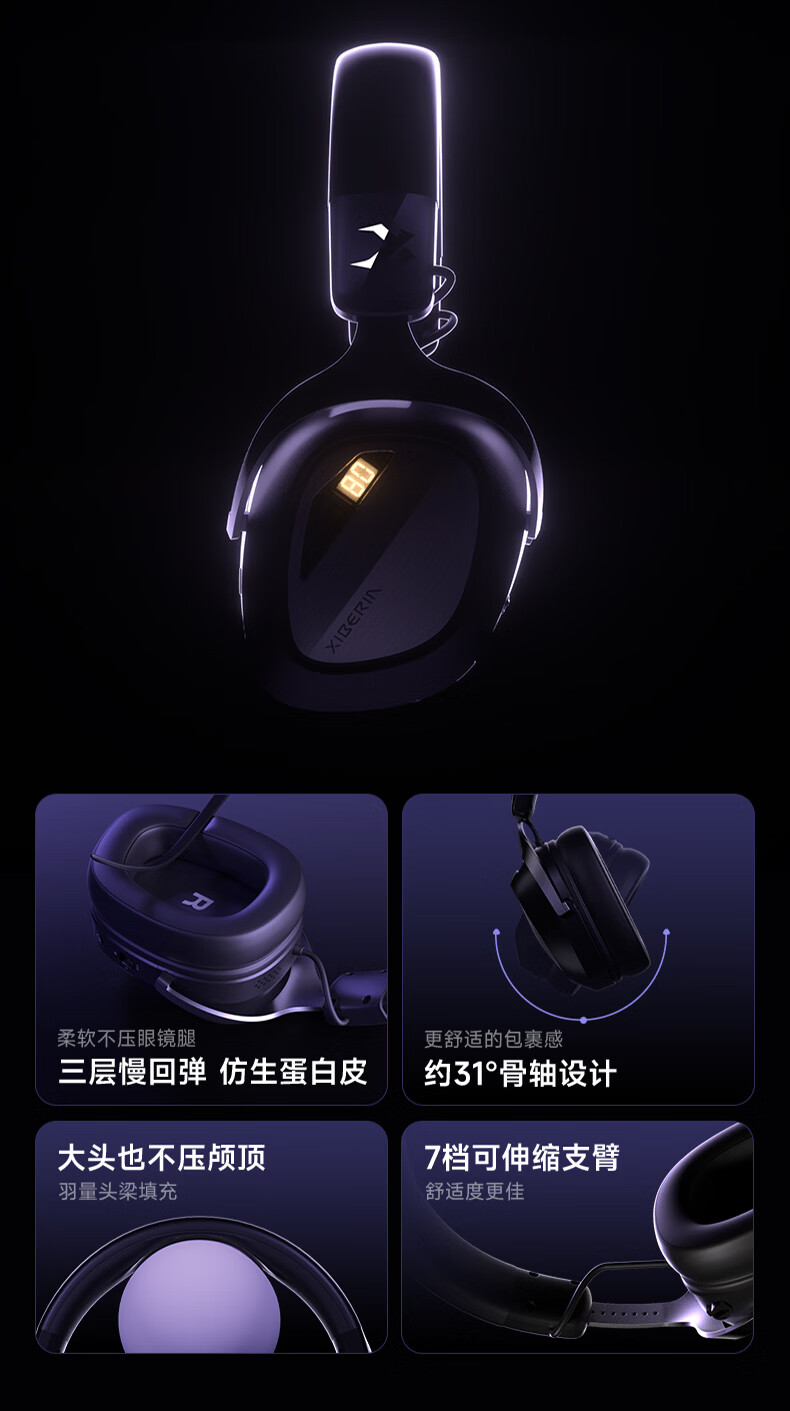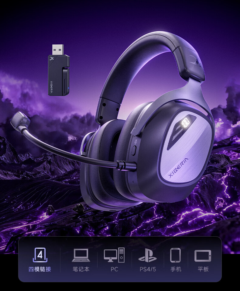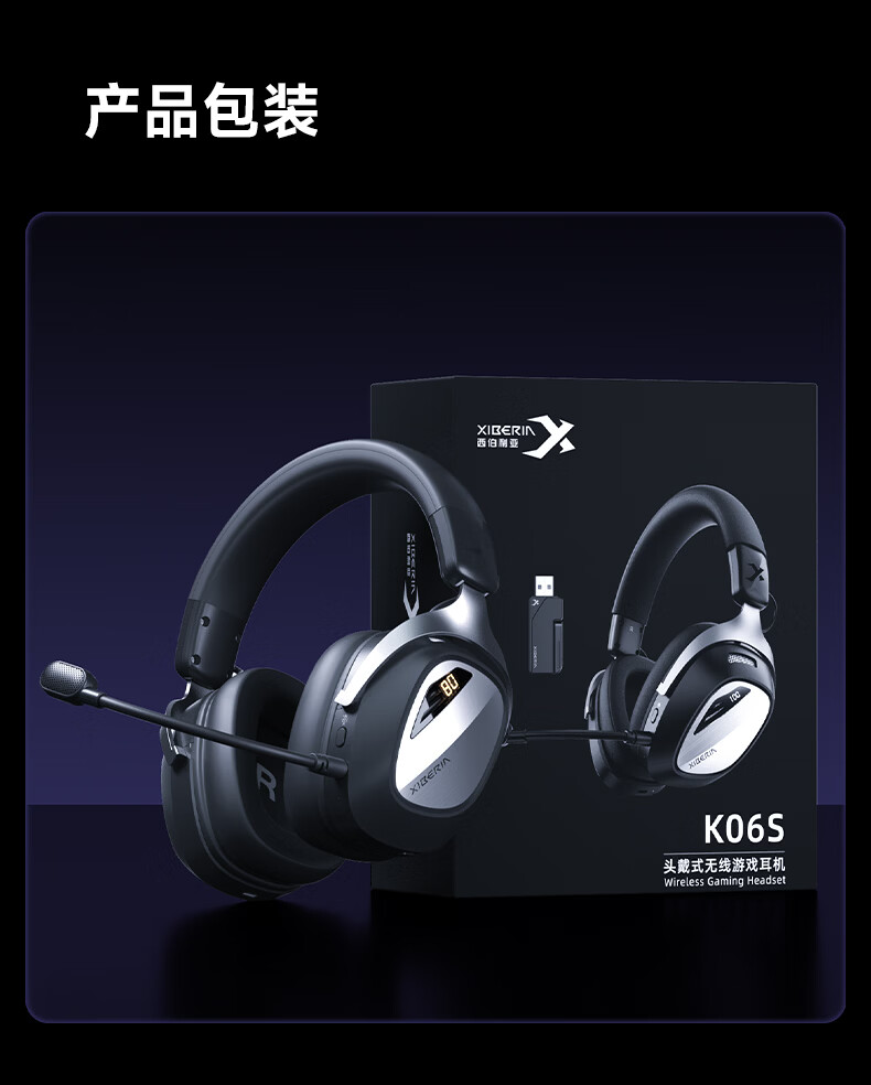 西伯利亚(XIBERIA)K06S四模智显游戏耳机蓝牙无线头戴式智慧双模同频混音支持边冲边玩电竞三角洲黑色【小叮当推荐】