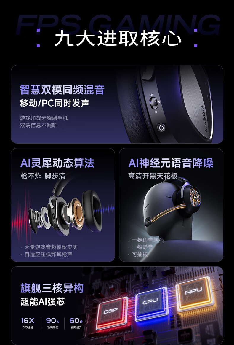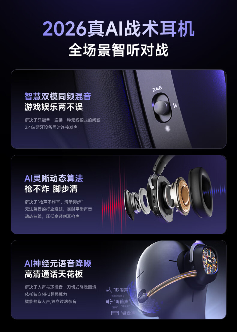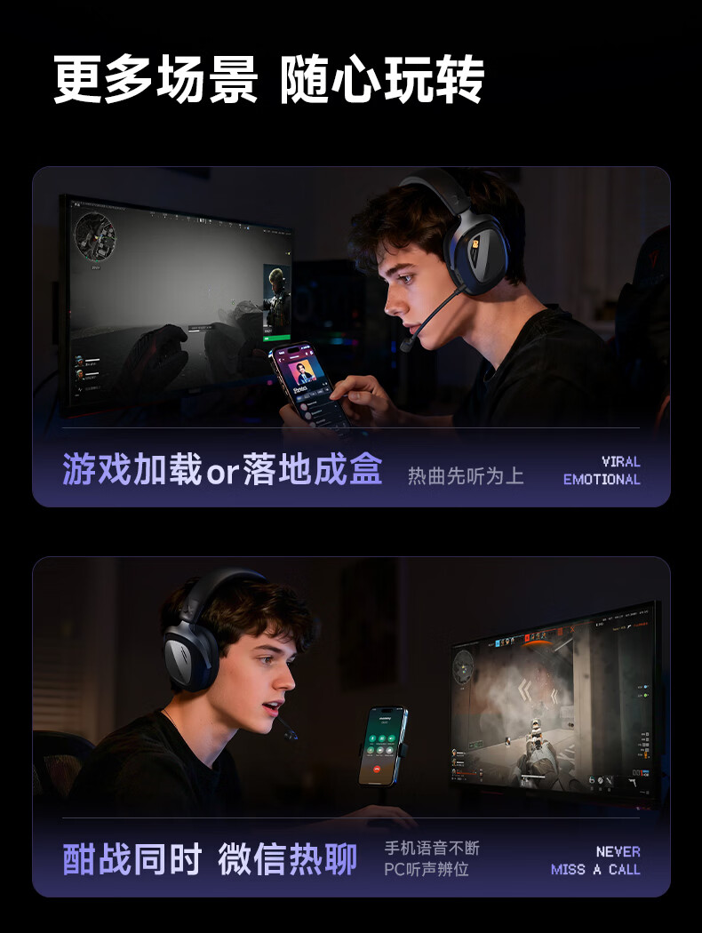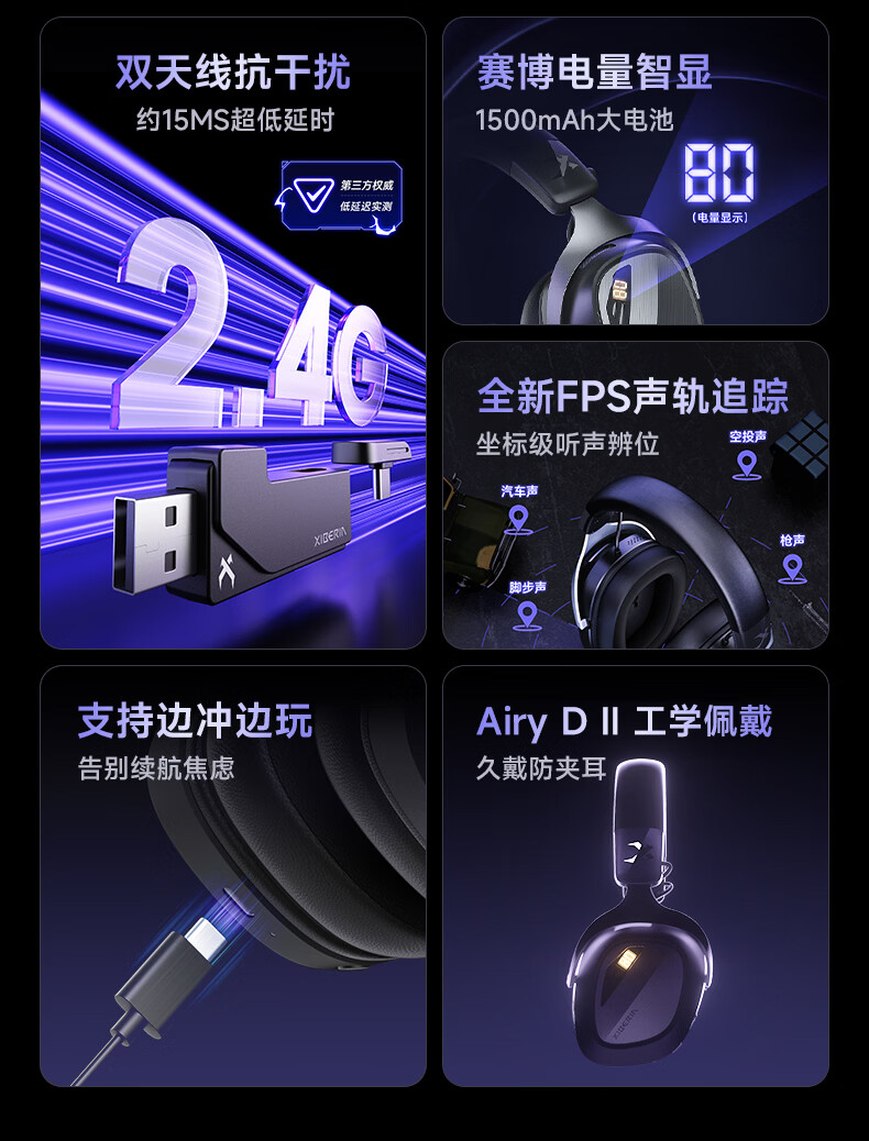 西伯利亚(XIBERIA)K06S四模智显游戏耳机蓝牙无线头戴式智慧双模同频混音支持边冲边玩电竞三角洲黑色【小叮当推荐】